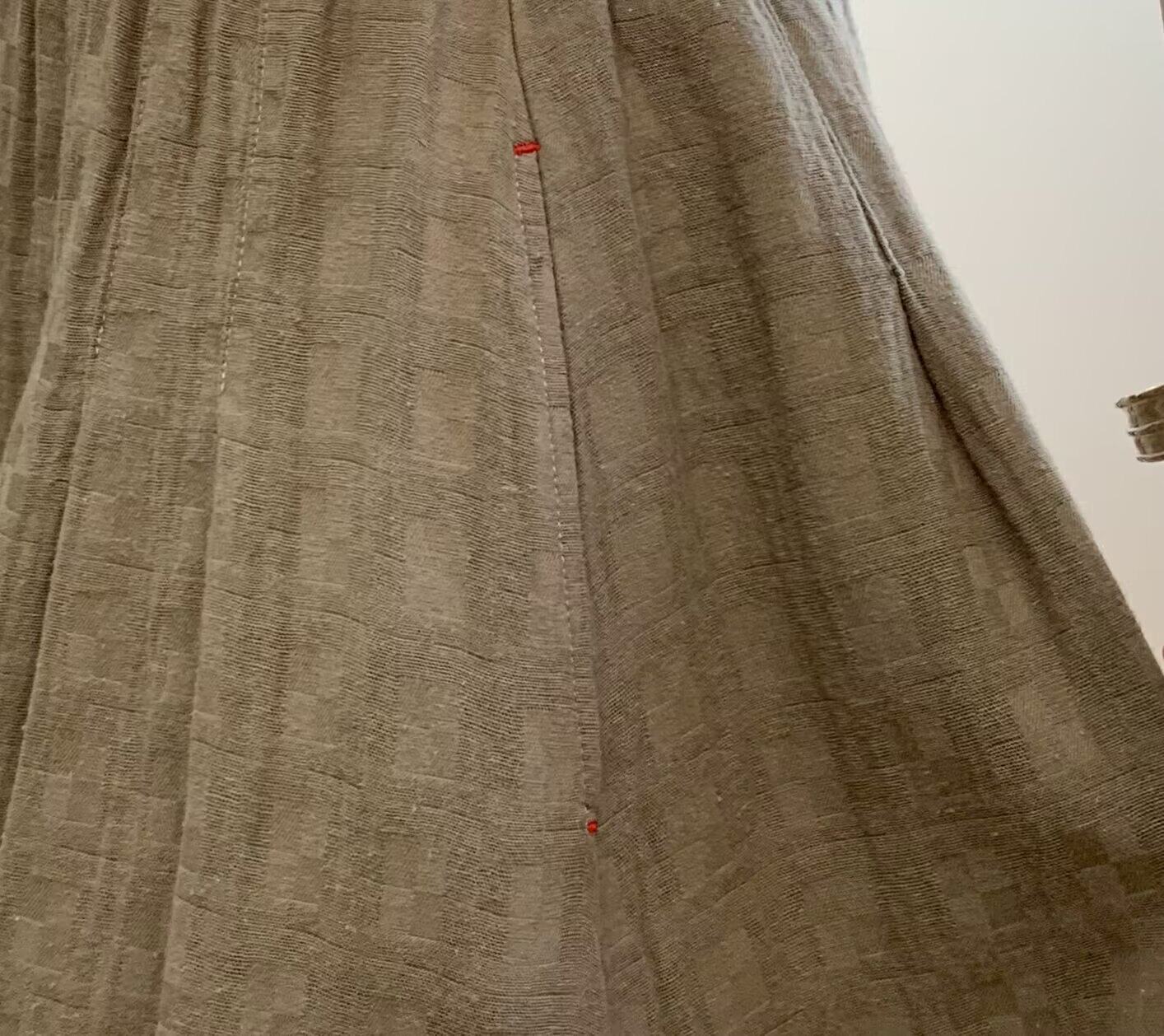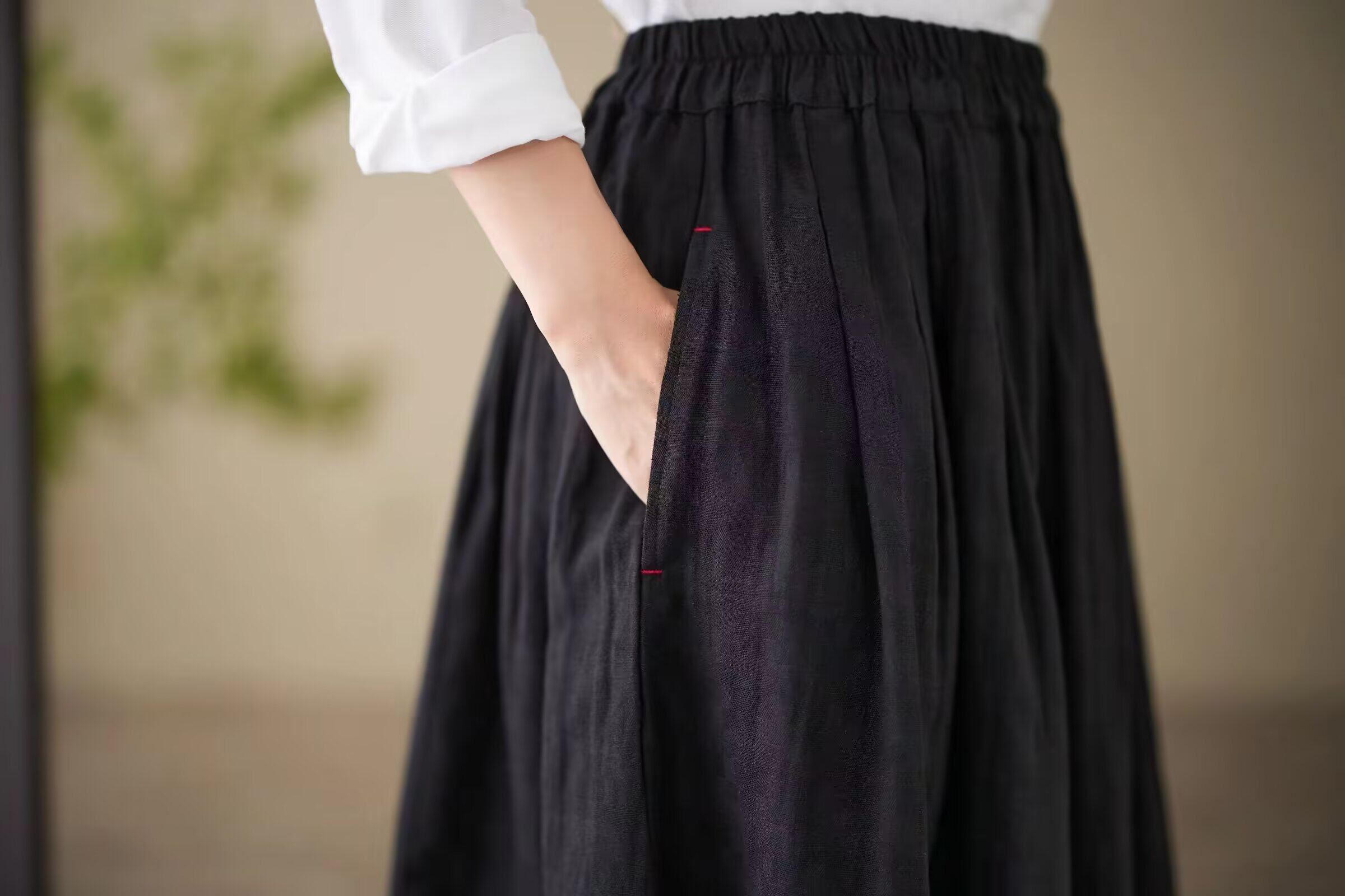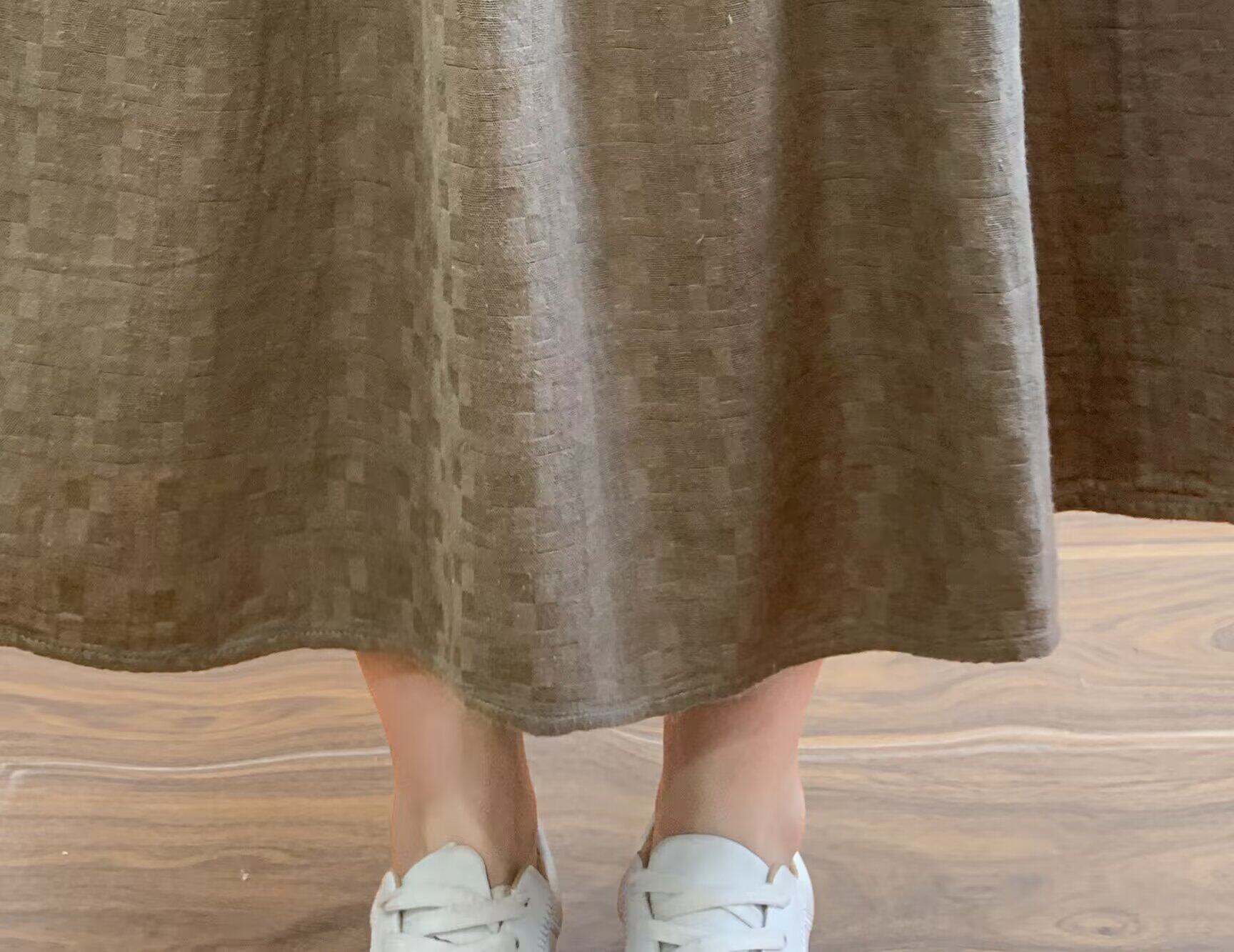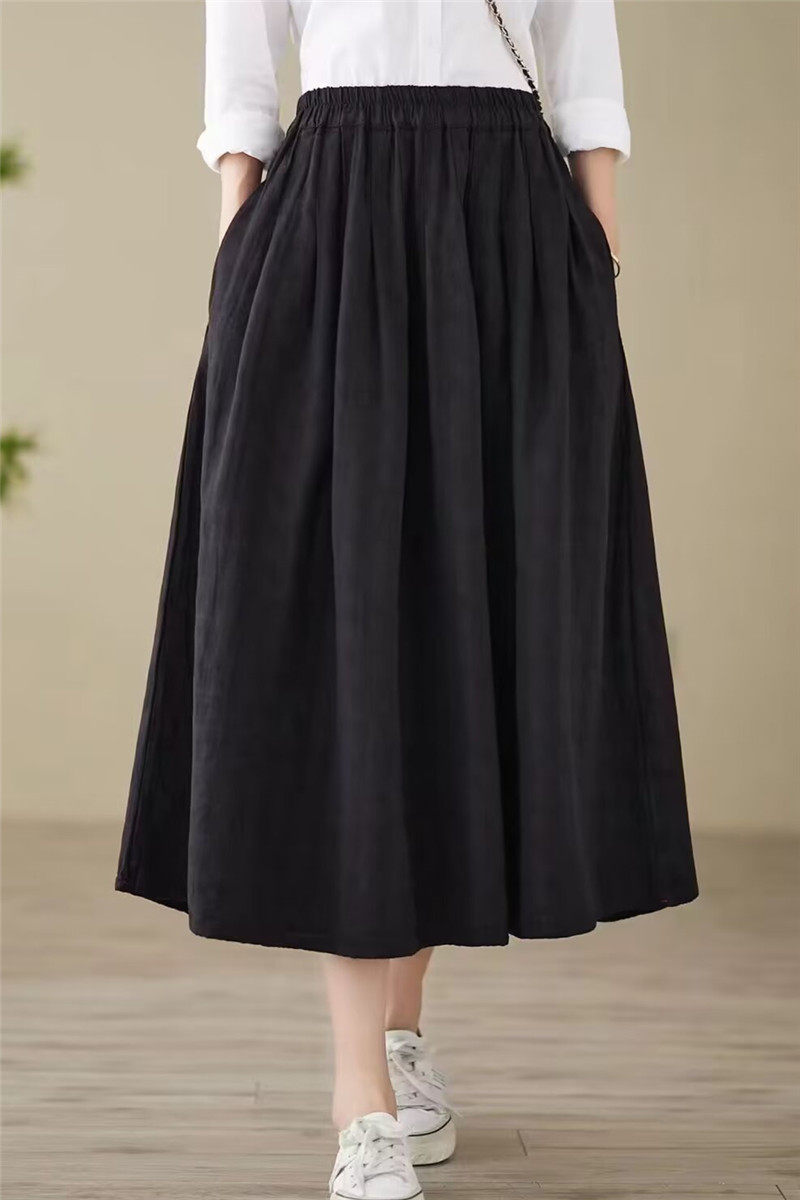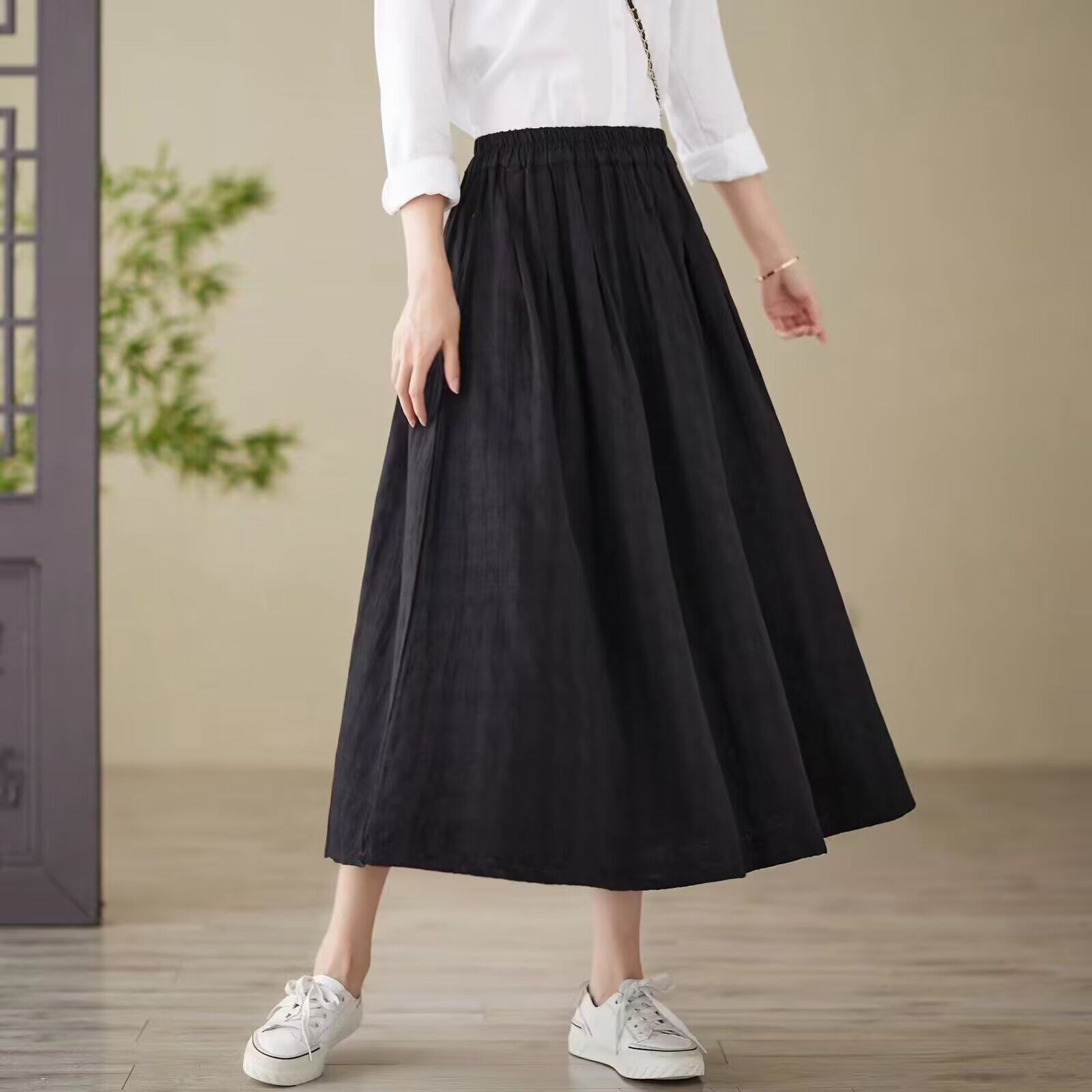 Vintage Jacquard Cotton Midi Skirt, Loose, Artistic, Versatile, Mid-Length, Slimming, Drapey A-Line Skirt for Women with Pockets