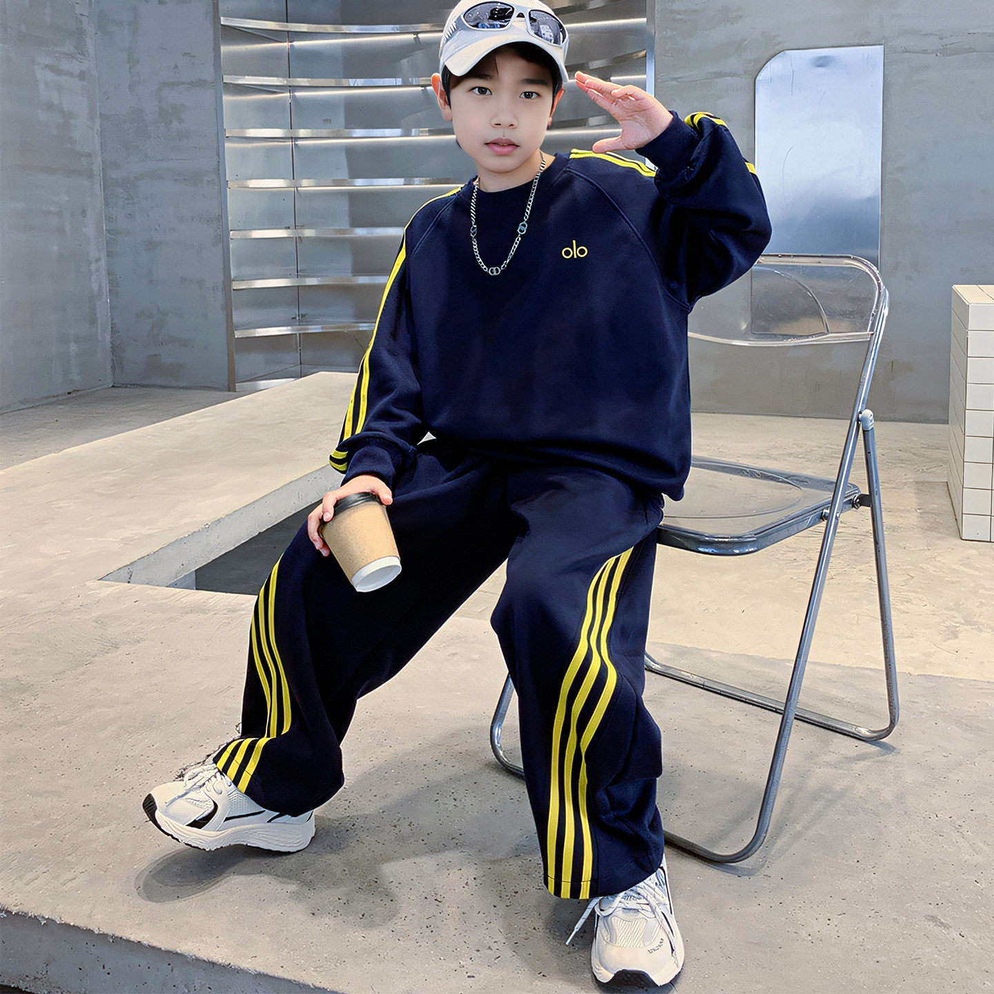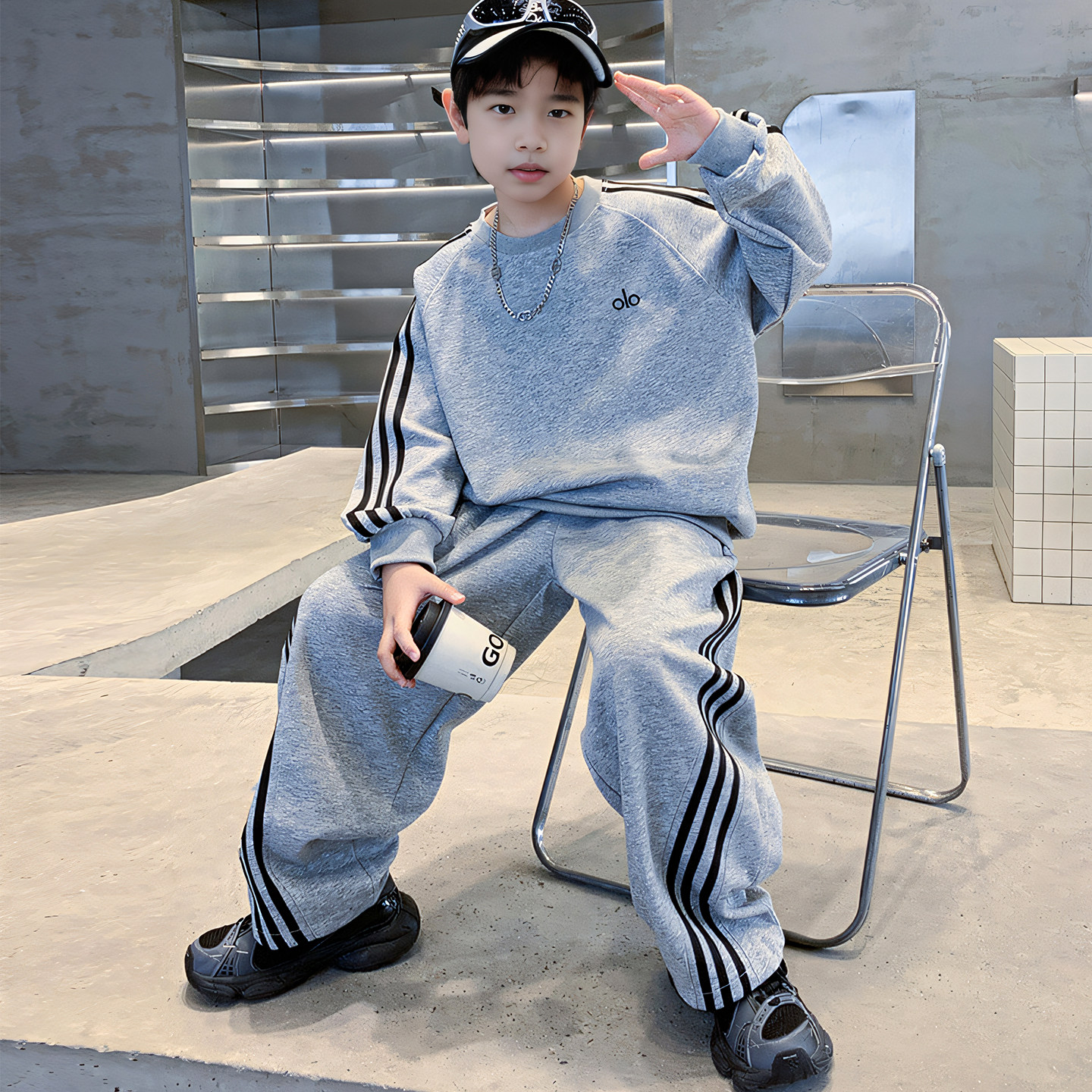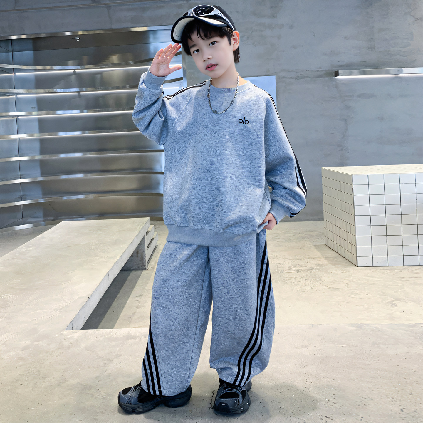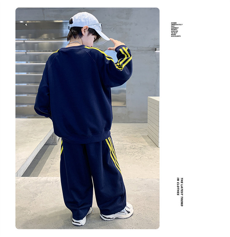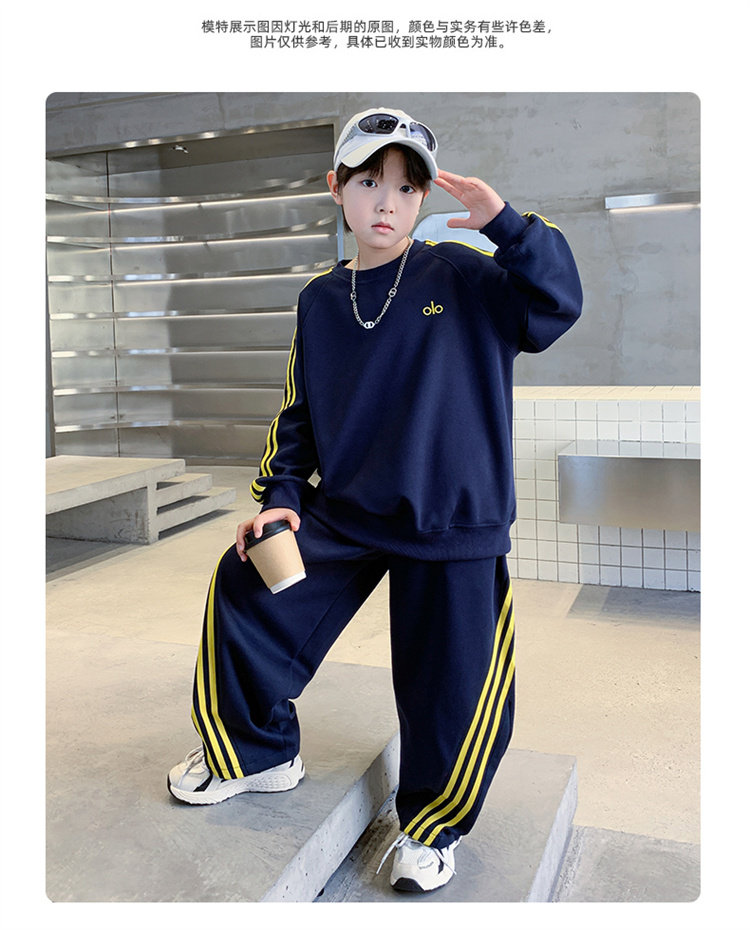 2025 New Boys' Outfit Spring and Autumn Style for Older Boys, Cool and Stylish Autumn Sweatshirt and Sweatpants Two-Piece Boys' Sportswear