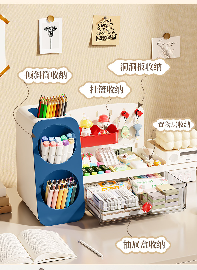 Desktop Storage Box, Household Drawer-Type Pegboard, Student Stationery Desk Organizer, Pen Holder, Storage Rack, Large Capacity