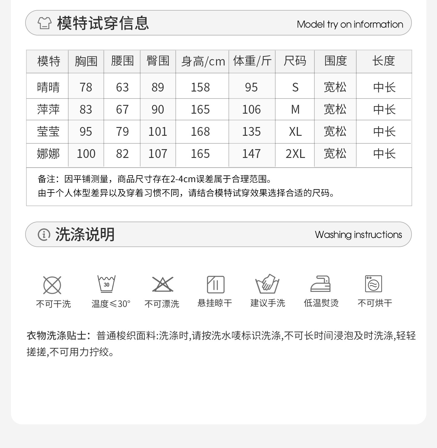 China (cm) 160-165/84-86 165-170 / 88-90 167-172 / 92-96 168-173 / 98-102 170-176 / 106-110