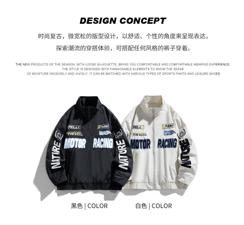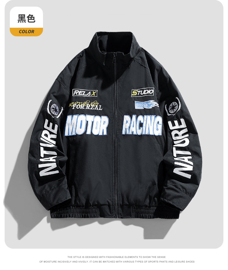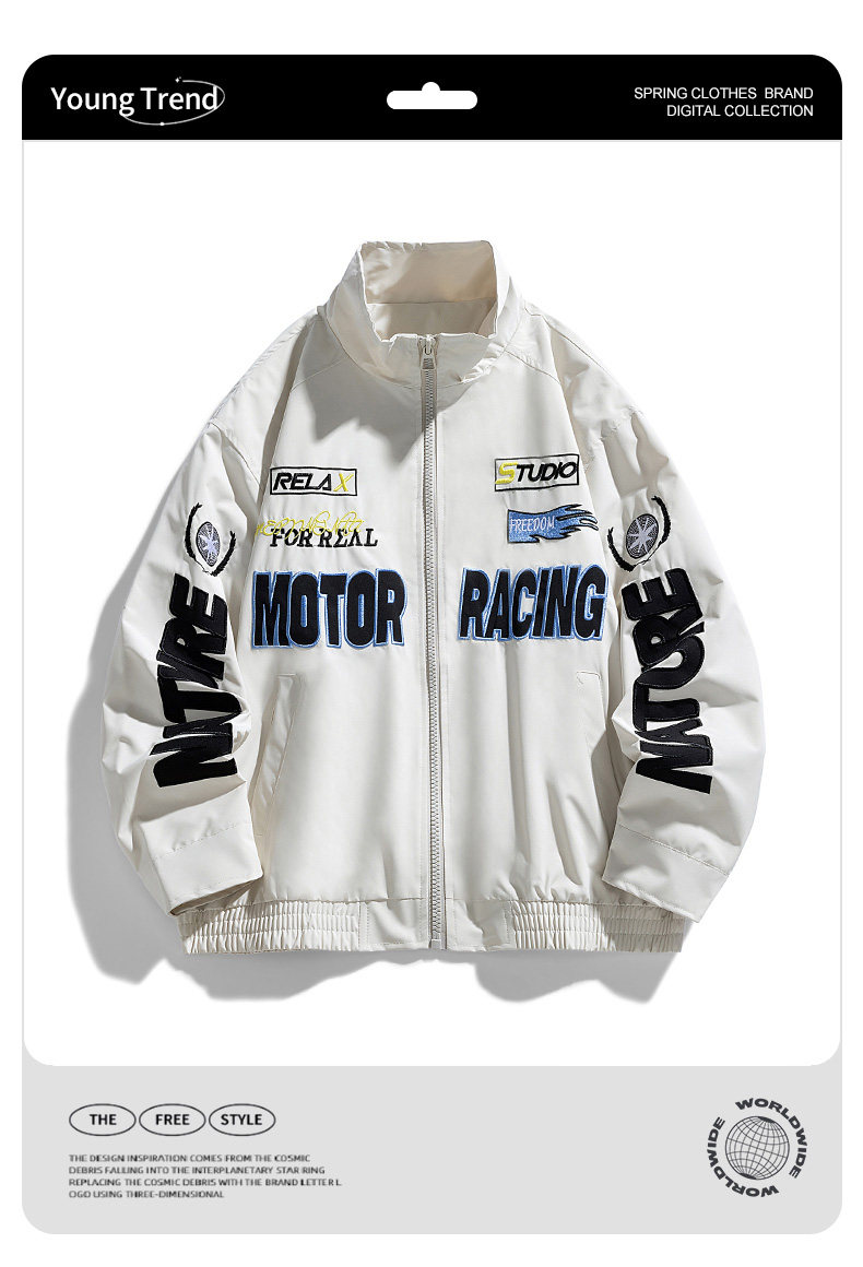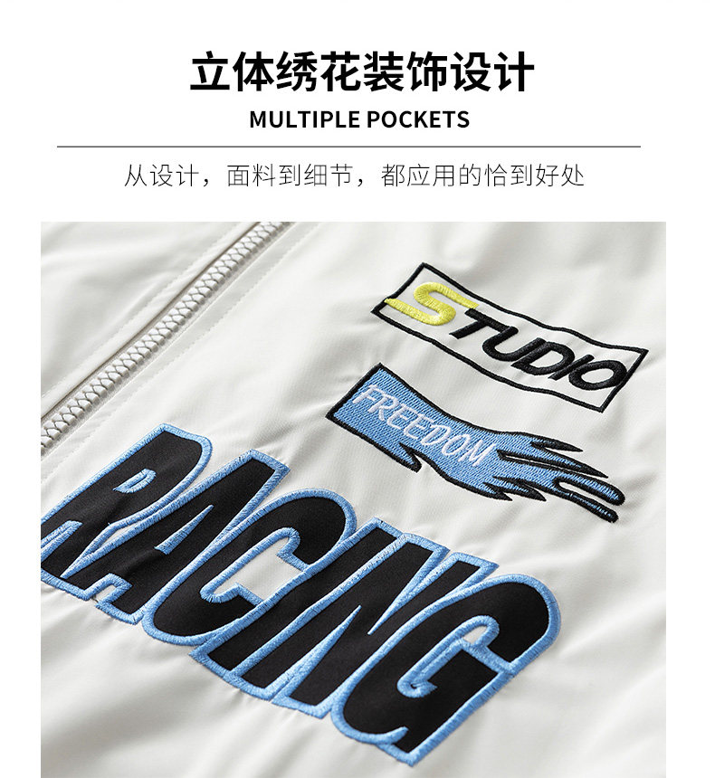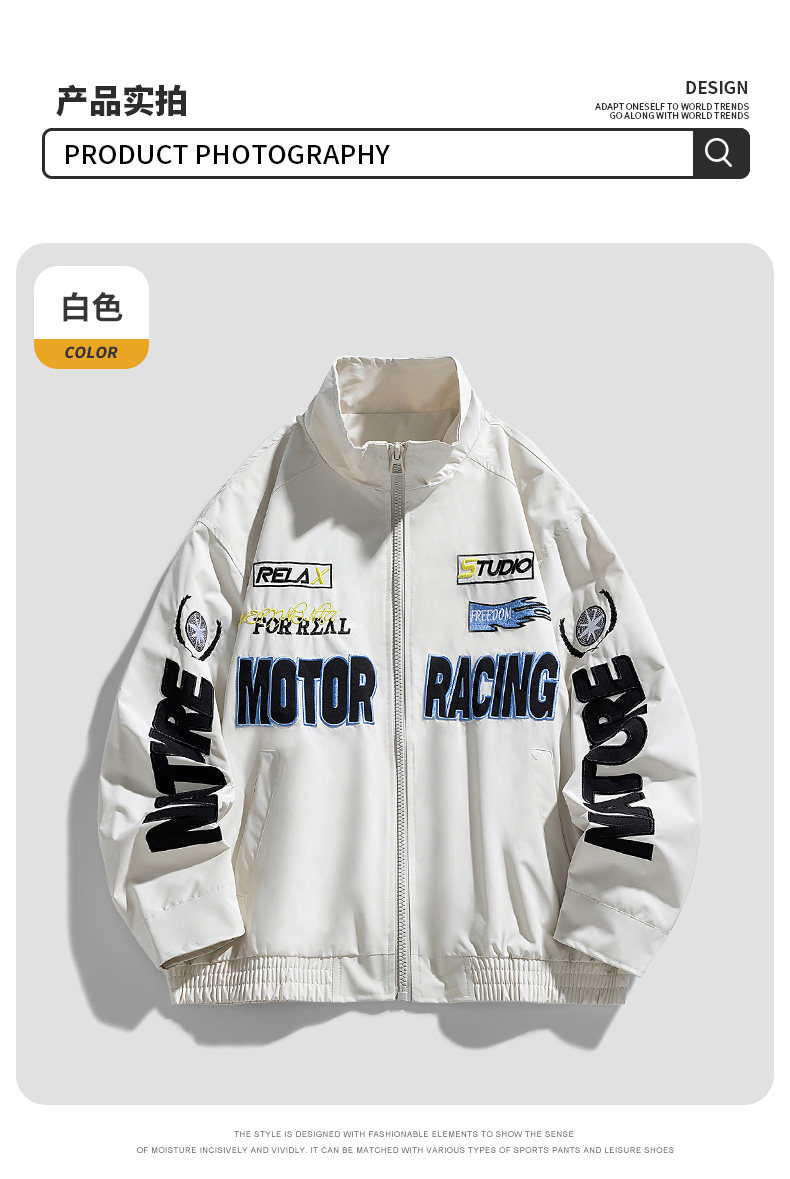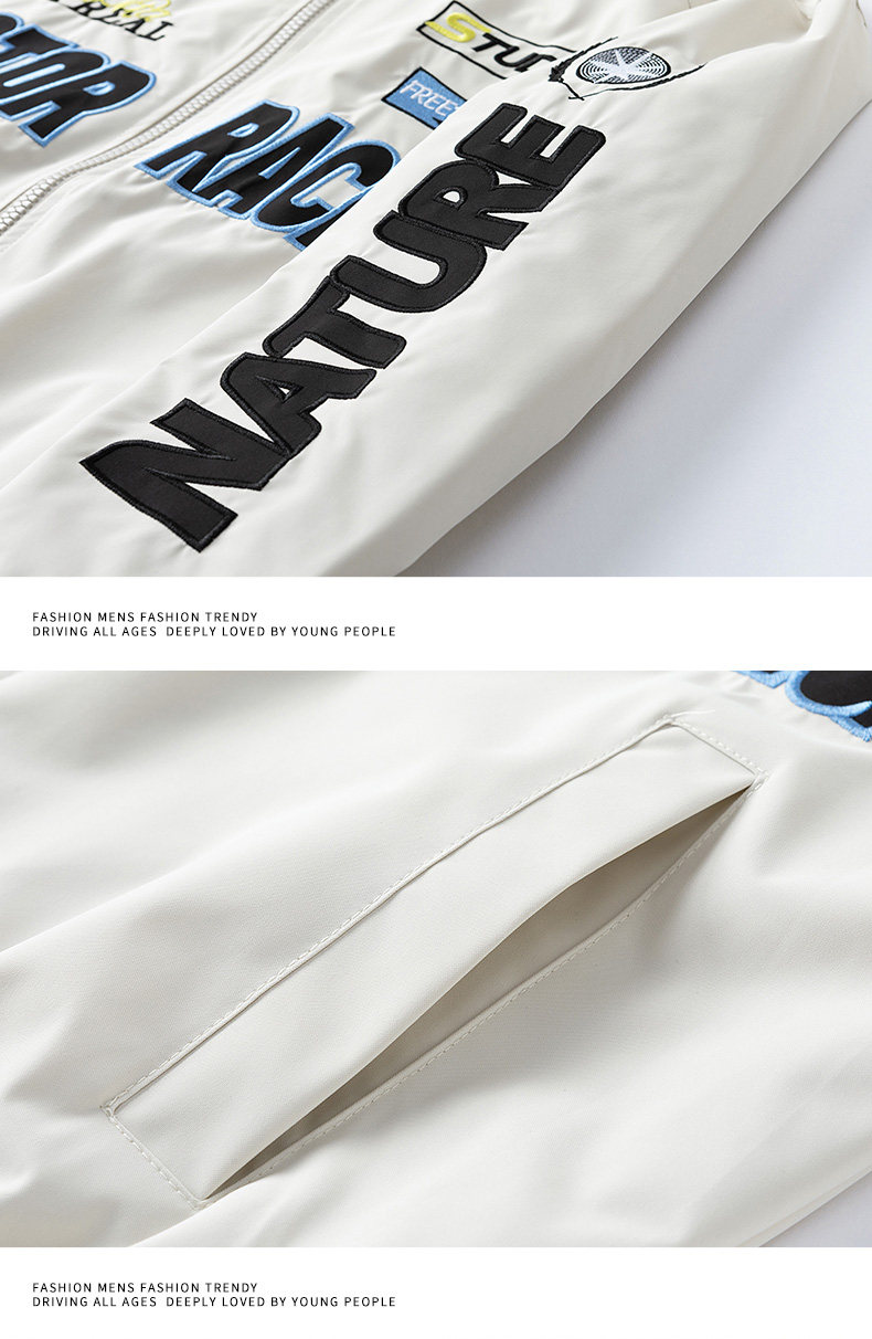 Wassup Dozen American-Style Patchwork Jacket for Men, Autumn Trendy Brand Biker Jacket, Embroidered Top, Workwear Jacket