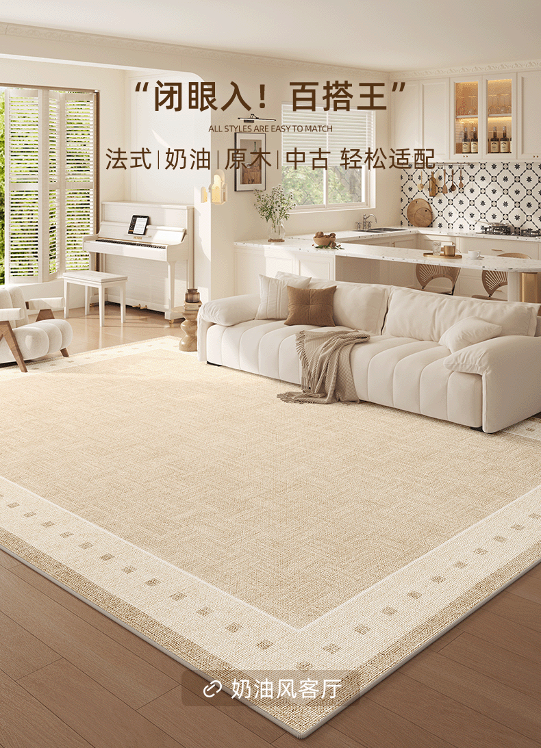 Carpet for Living Room 2026 New French Cream Style Washable and Wipeable Room Mat Vintage Home Bedroom Bedside Rug