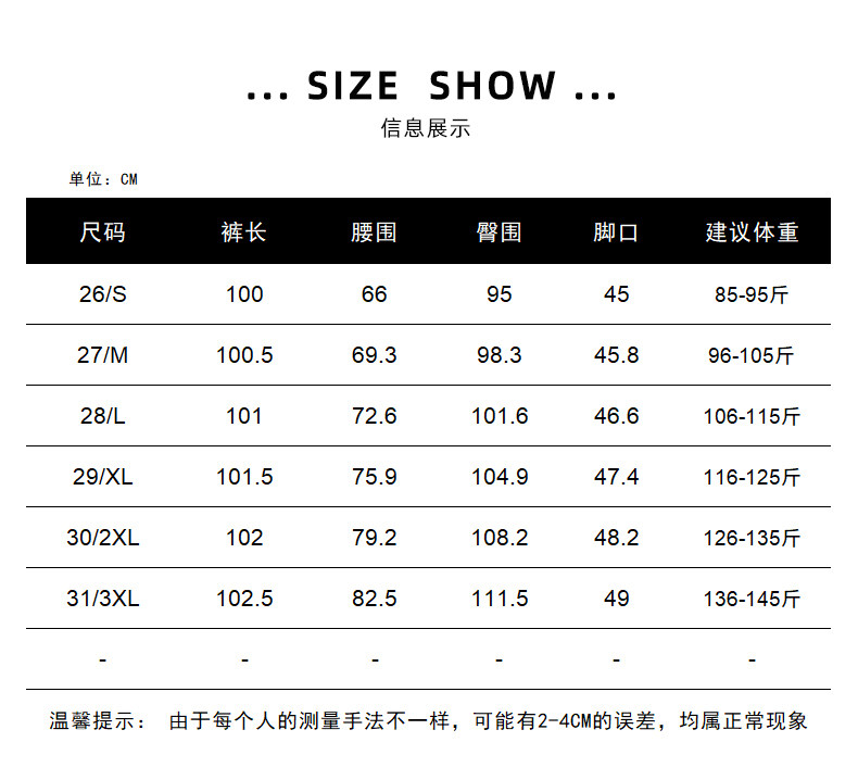 Size 26/S,27/M,28/L,29/XL,30/2XL,31/3XL