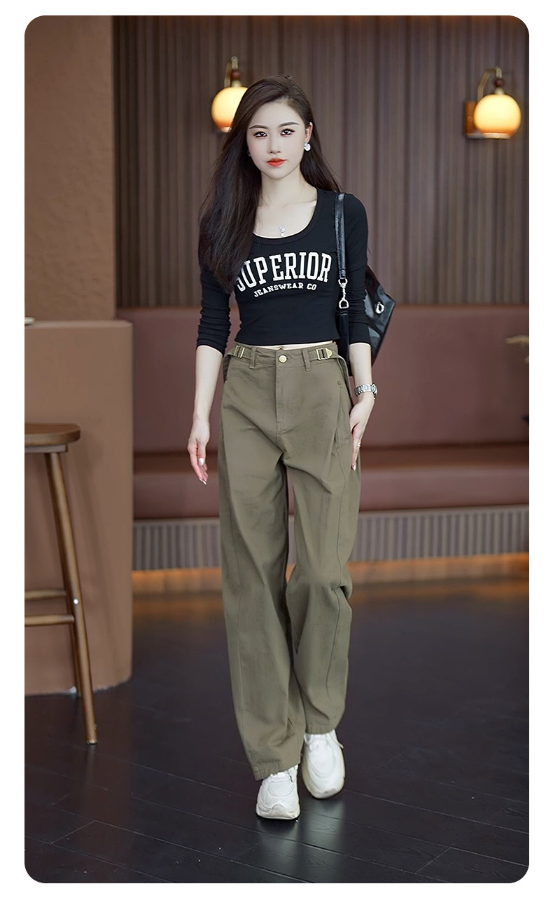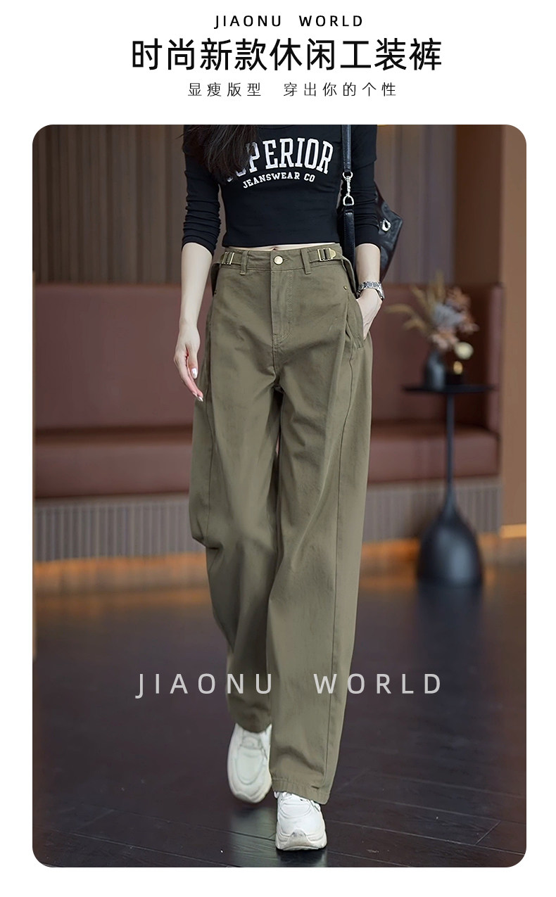 Casual Cargo Pants for Women 2025 Spring and Autumn New High-Waisted Slimming Casual Pants Loose Fashion Age-Reducing Straight-Leg Trousers