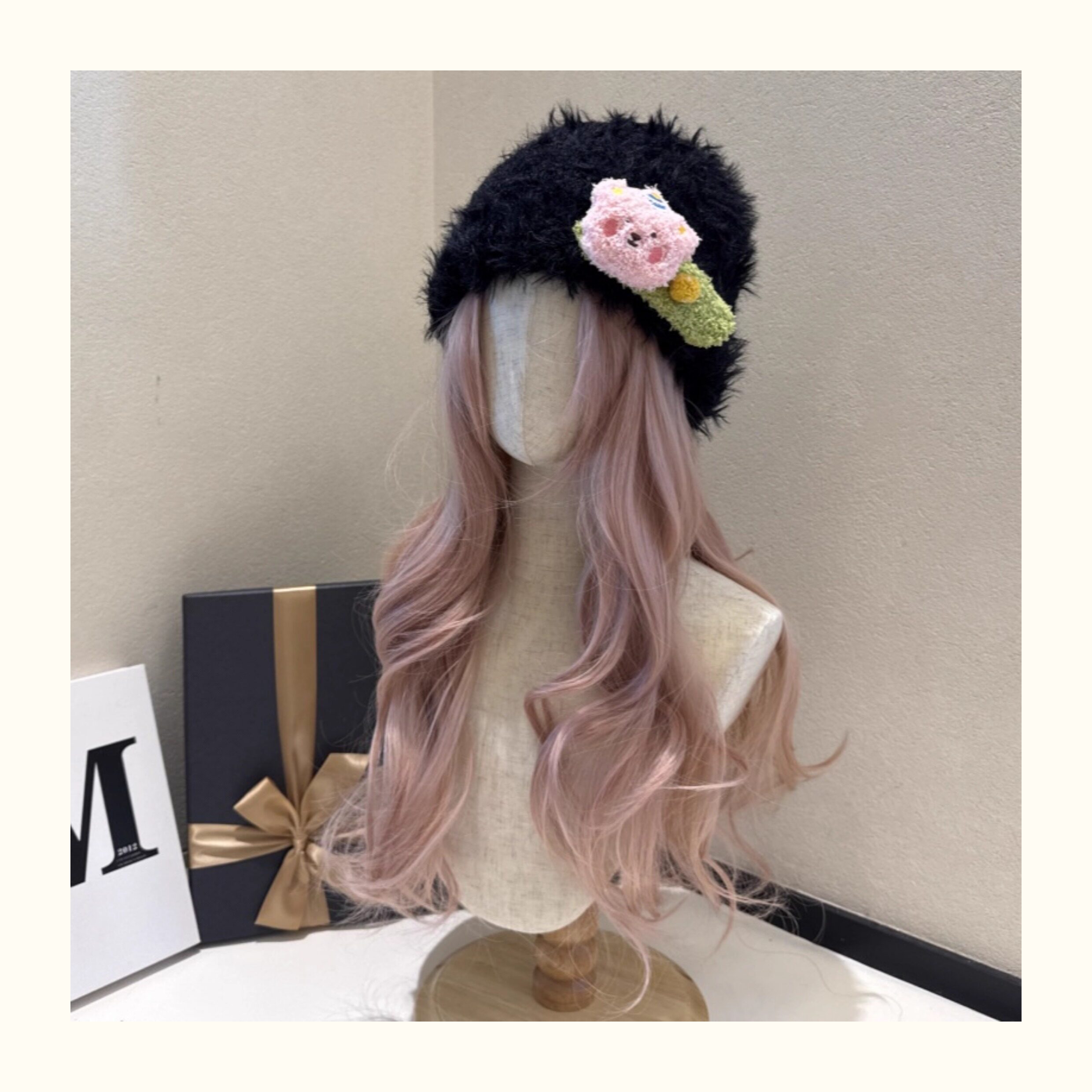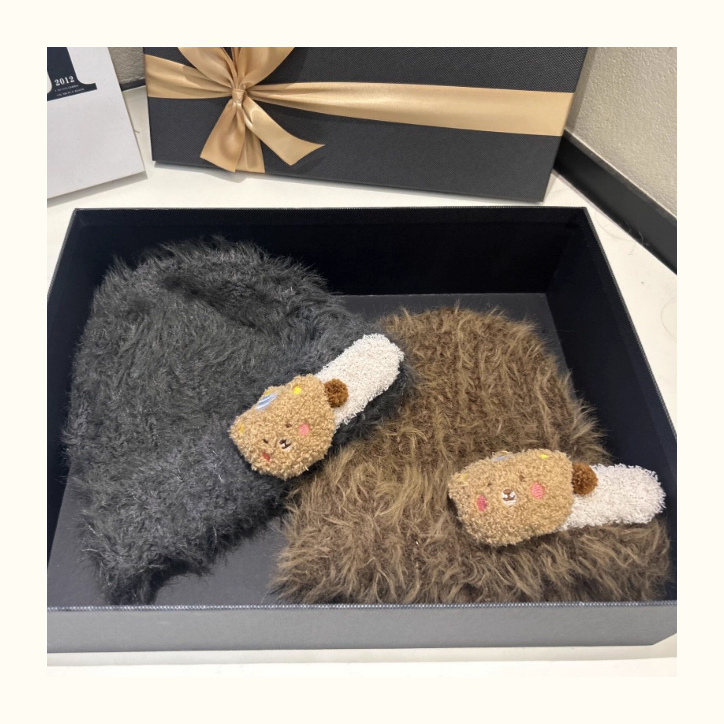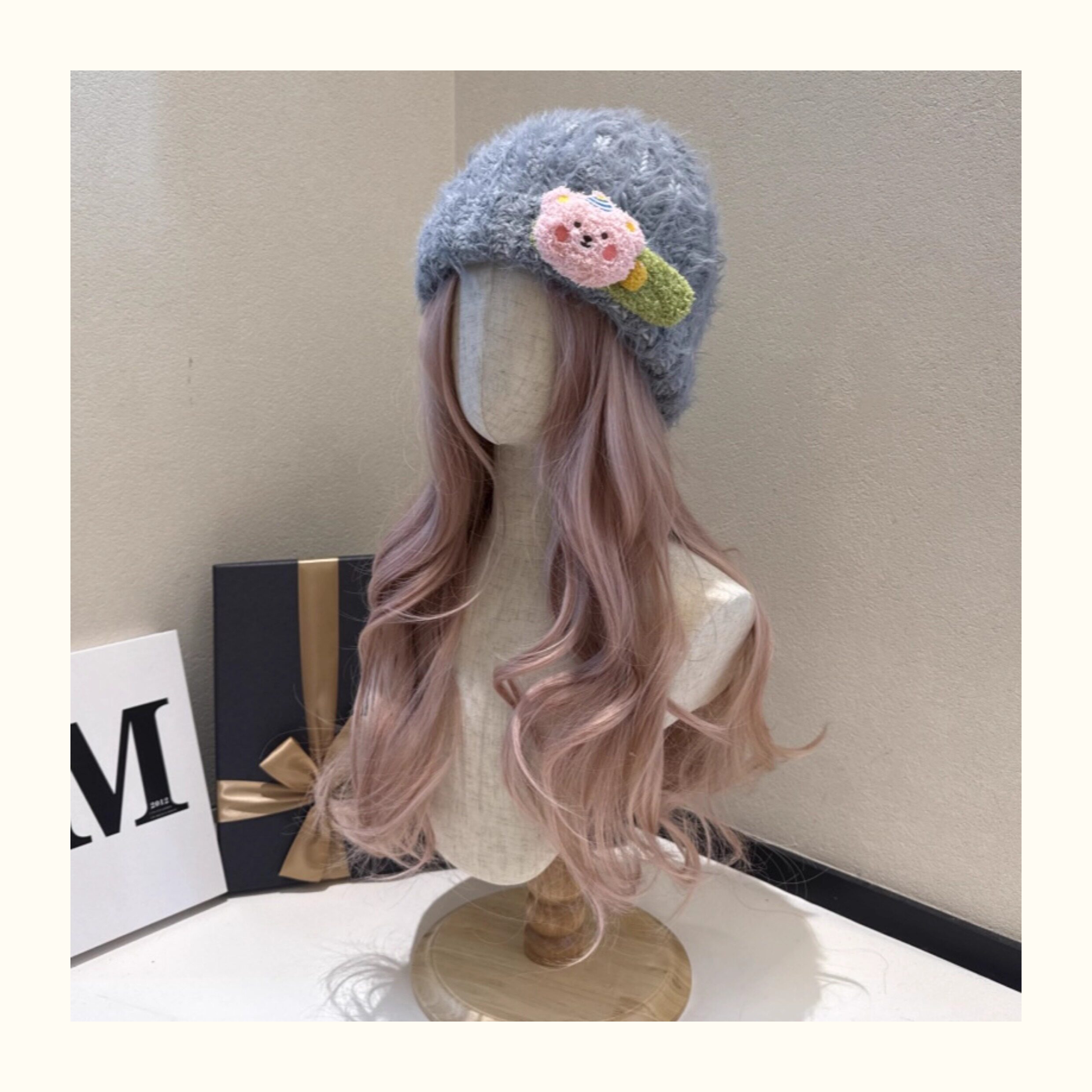 Cute Cartoon Plush Knitted Hat for Women, Thickened for Autumn and Winter, Warm and Cold-Proof, Ear-Protecting, Head-Covering Woolen Hat for Students