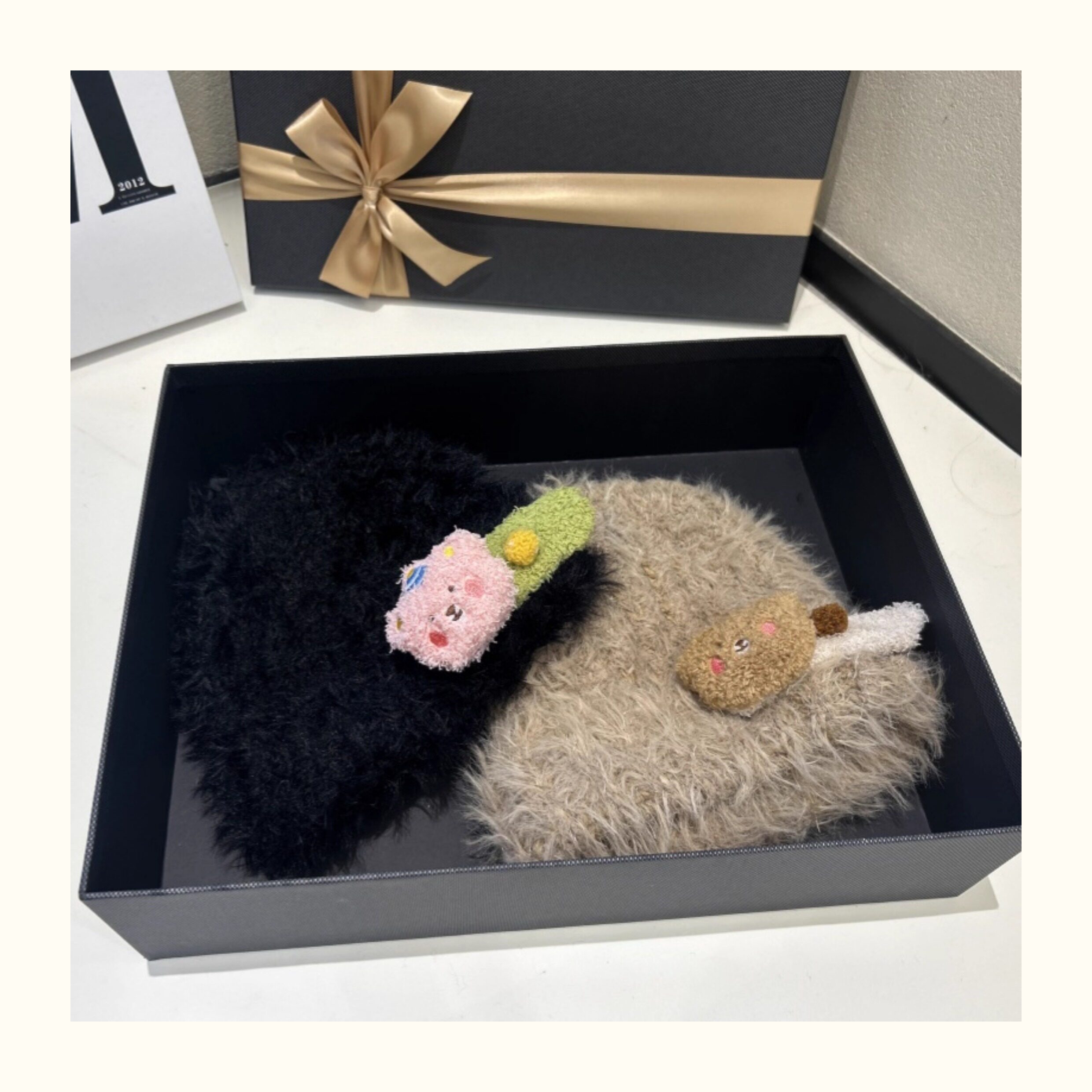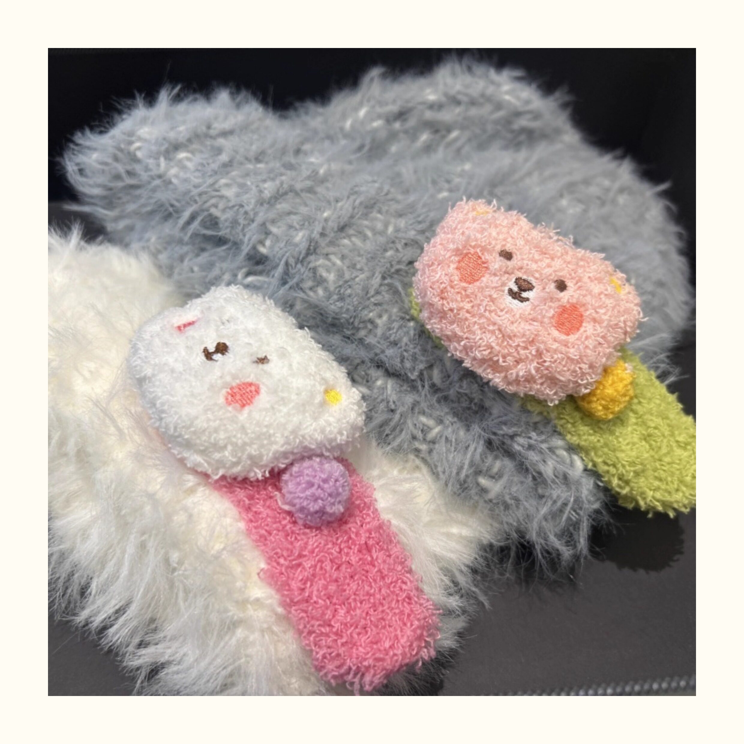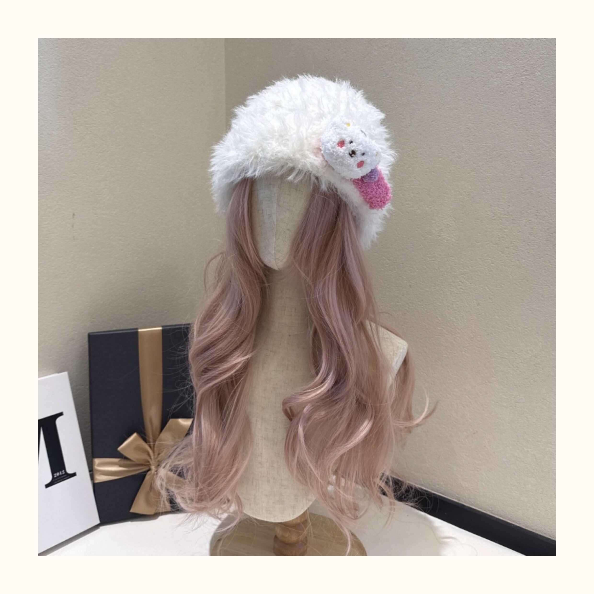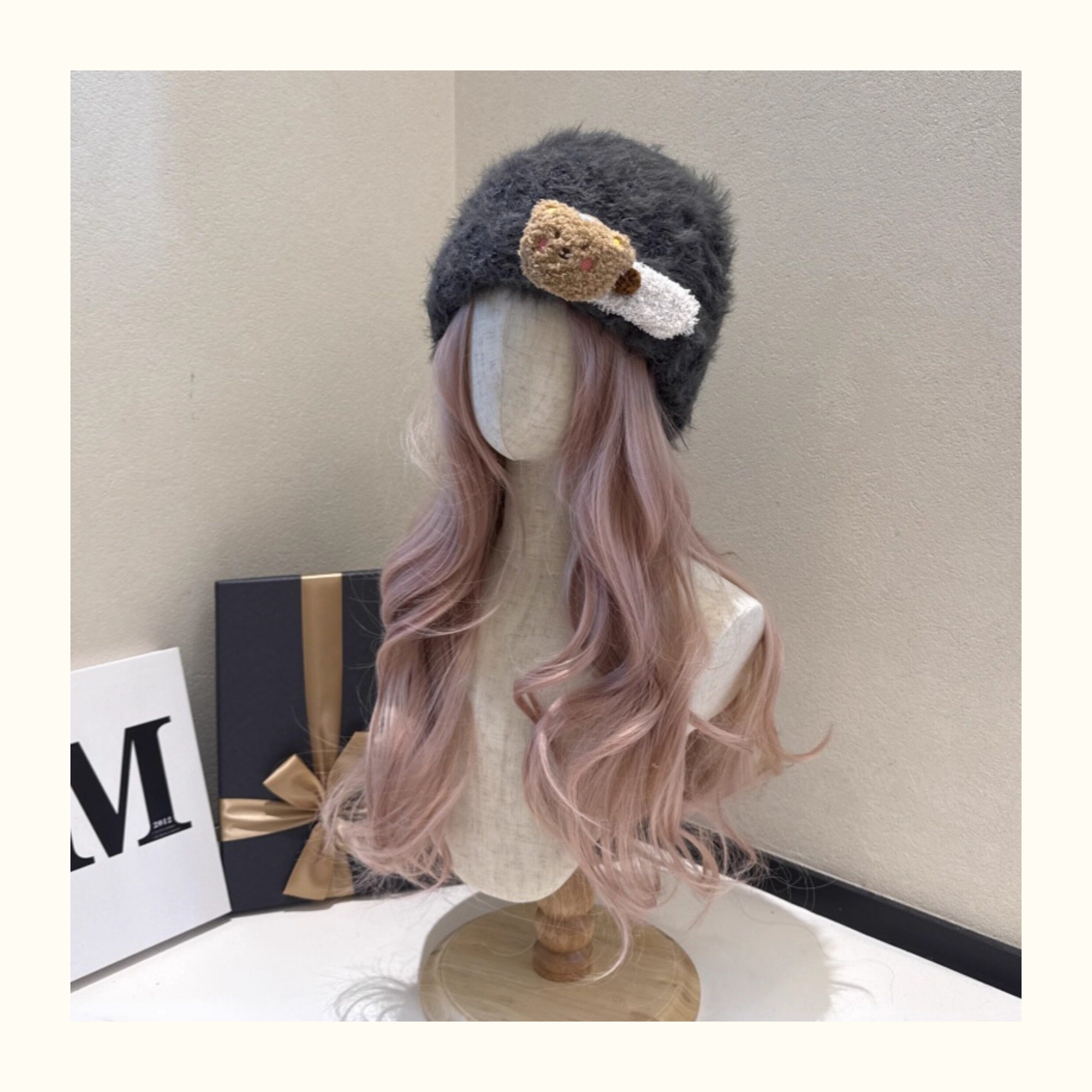 Cute Cartoon Plush Knitted Hat for Women, Thickened for Autumn and Winter, Warm and Cold-Proof, Ear-Protecting, Head-Covering Woolen Hat for Students