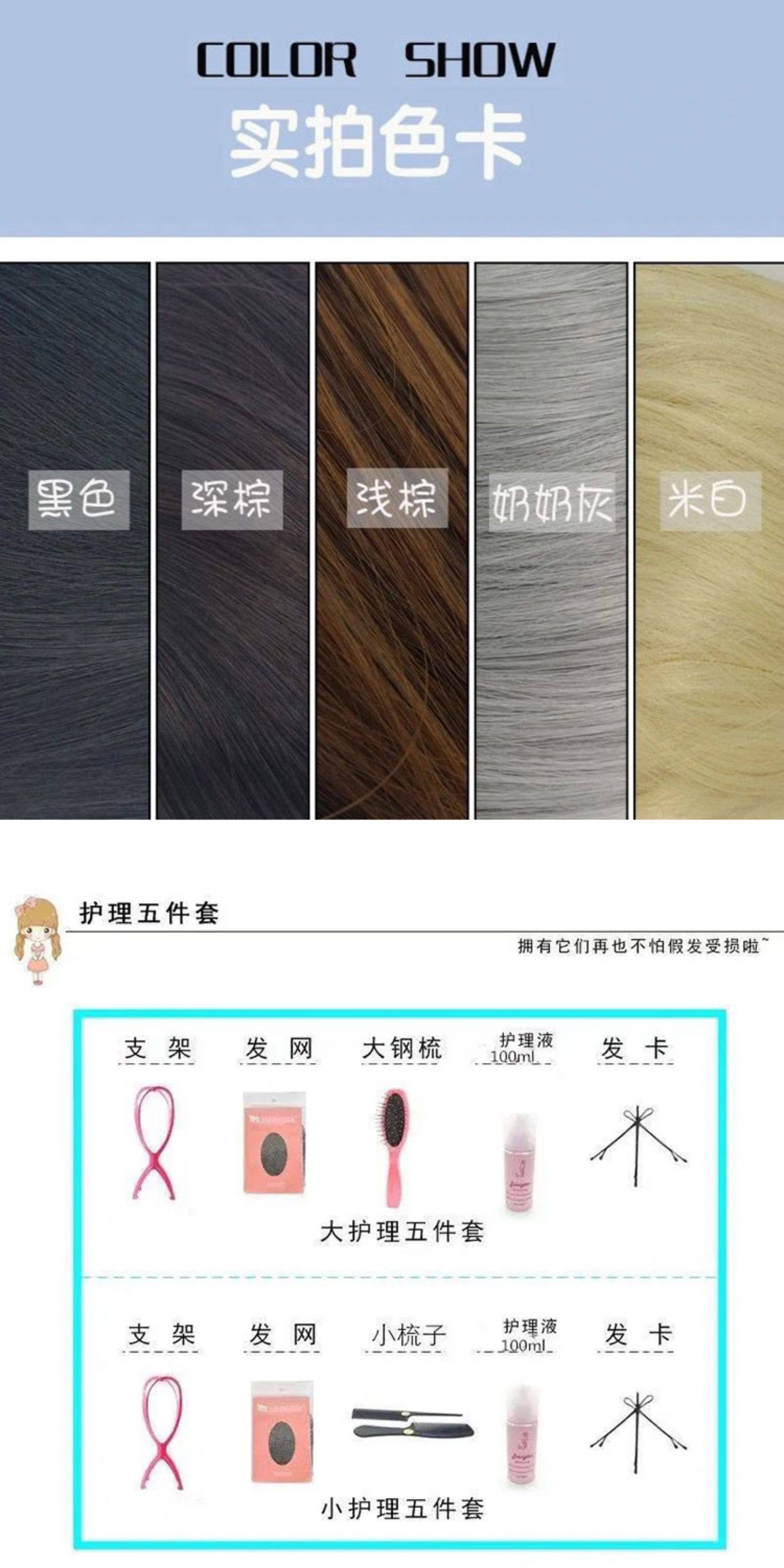 Color Classification Natural Black + Hair Net,Dark Brown + Hair Net,Light Brown + Hair Net,Natural Black + Care Solution + Large Steel Comb,Light Brown + Care Solution + Large Steel Comb,Dark Brown + Care Solution + Large Steel Comb,Natural Black + Care Five-Piece Set,Light Brown + Five-Piece Care Set,Dark Brown + Five-Piece Care Set,Natural Black + Mushroom Five-Piece Set,Light Brown + Mushroom Five-Piece Set,Dark Brown + Mushroom Five-Piece Set