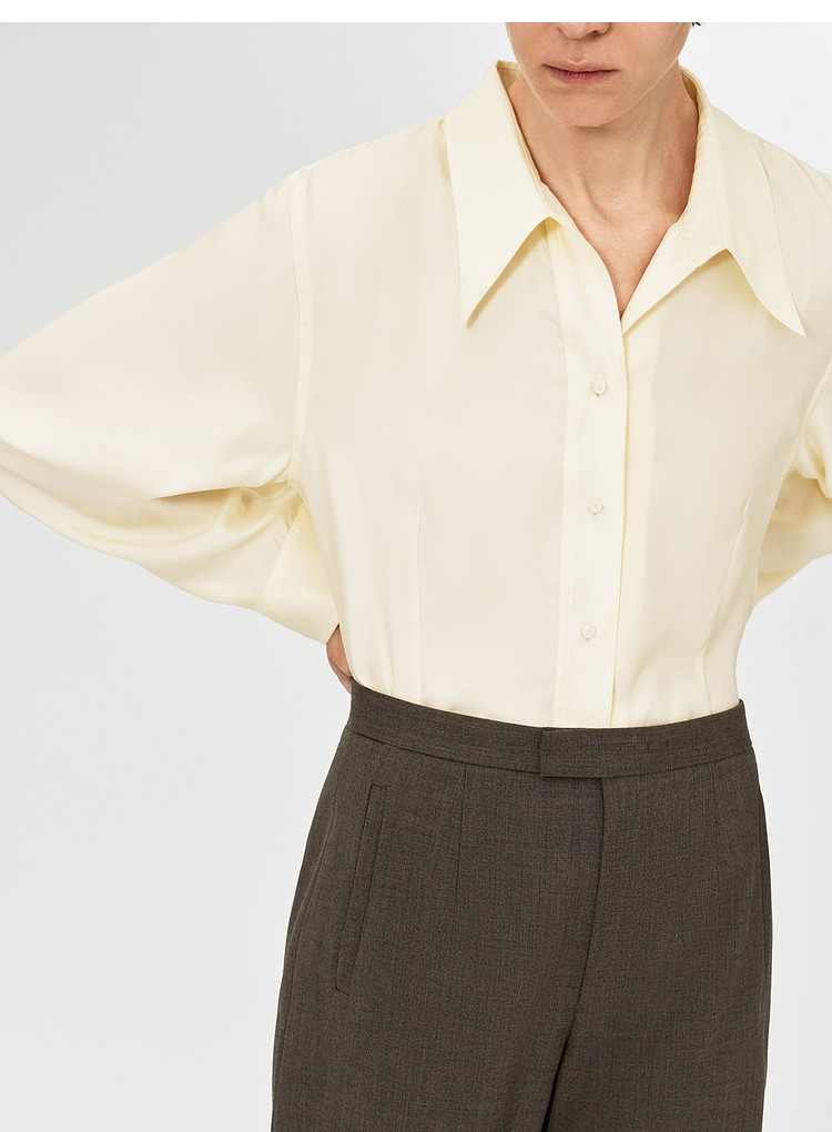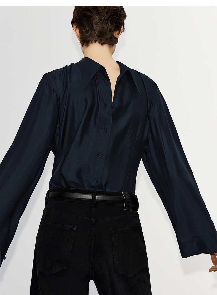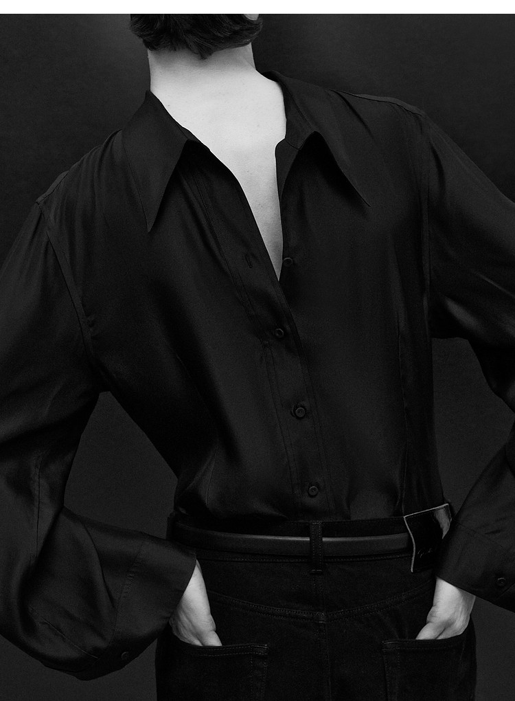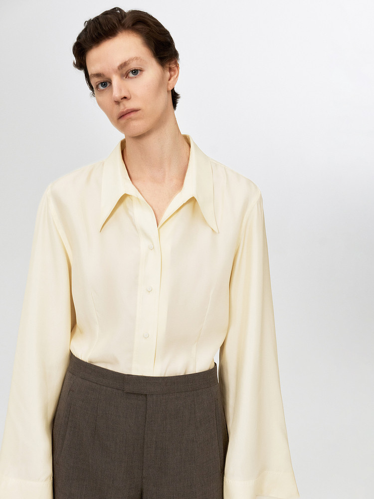 [Same Style as the Show] Edition Winter New Elite Wardrobe Mulberry Silk Bell Sleeve Shirt Ebe4Sht003