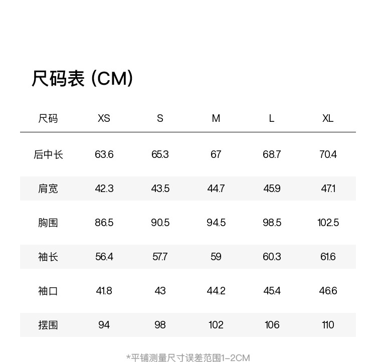 Size XS/155,S/160,M/165,L/170,XL/175