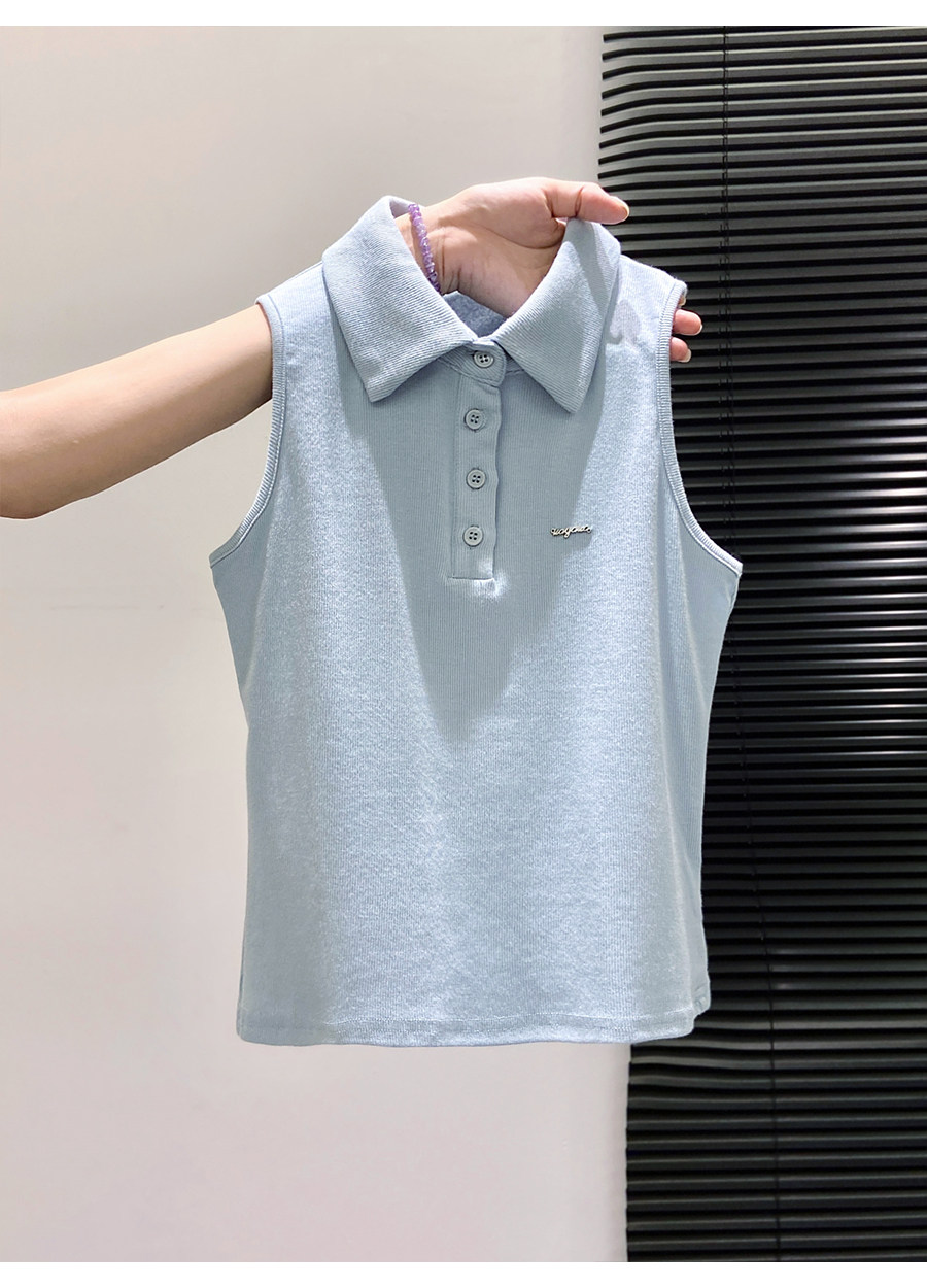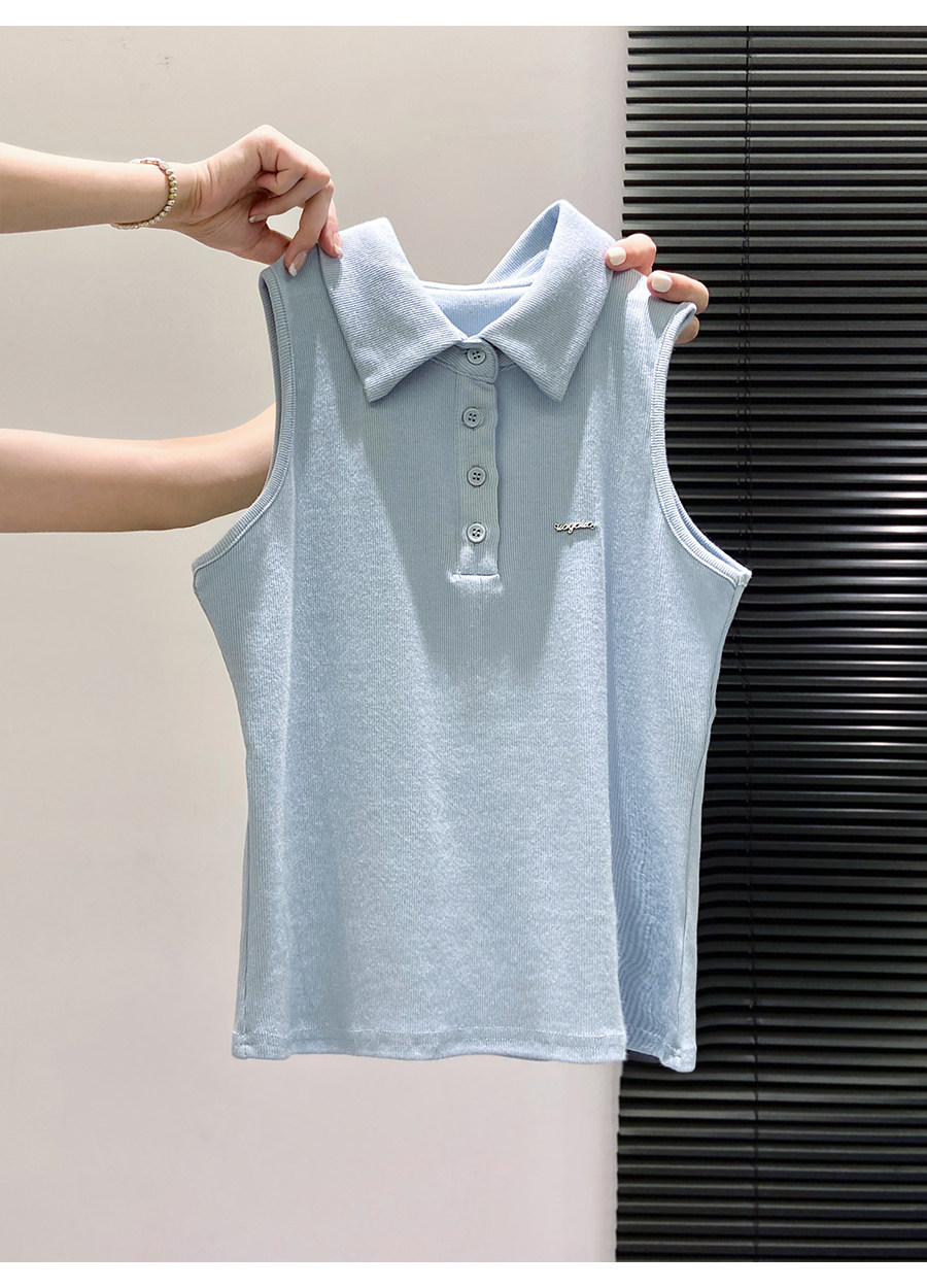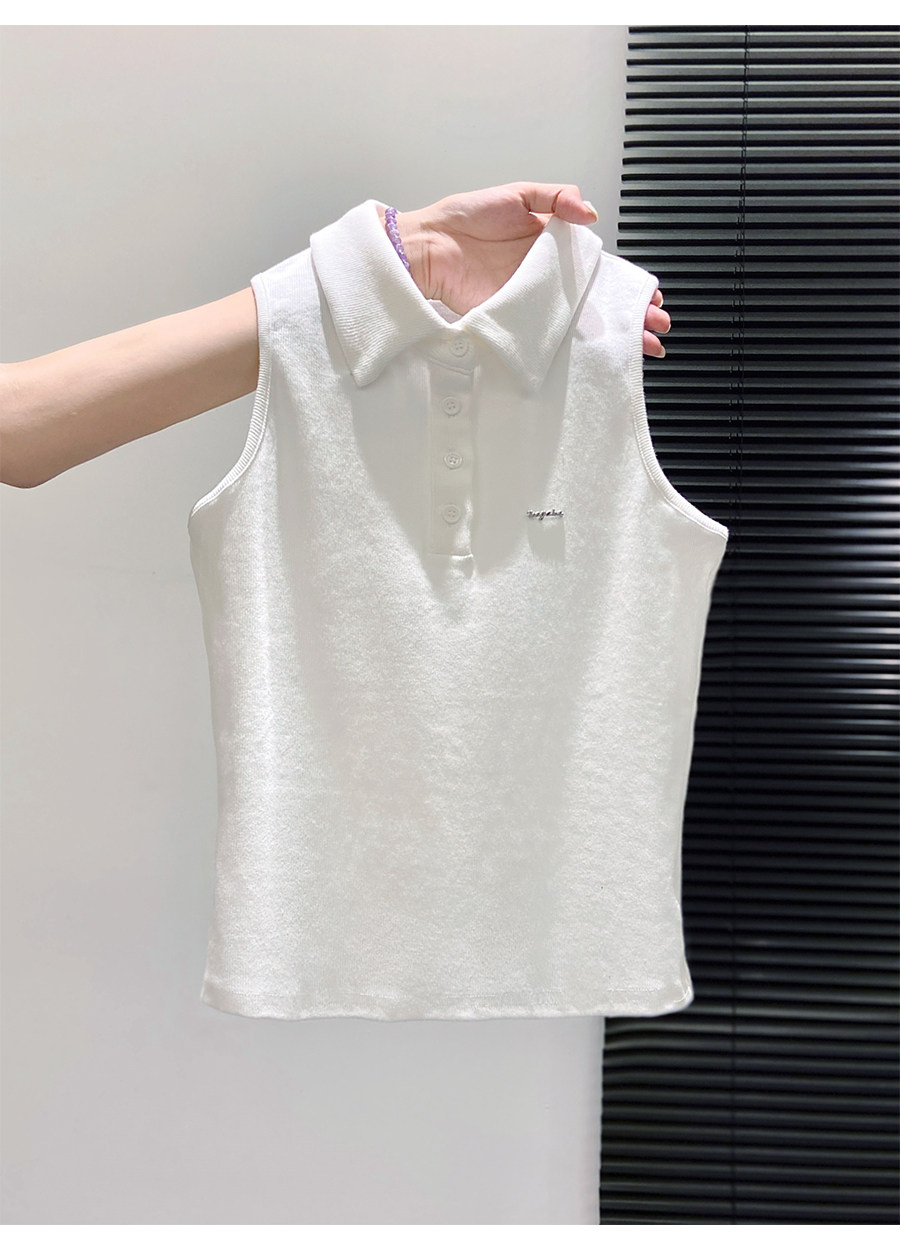 American Retro Polo Collar Sleeveless T-Shirt for Women, Summer Slim-Fit Halter Top That Covers the Side Breasts, Outerwear, Sexy Tank Top