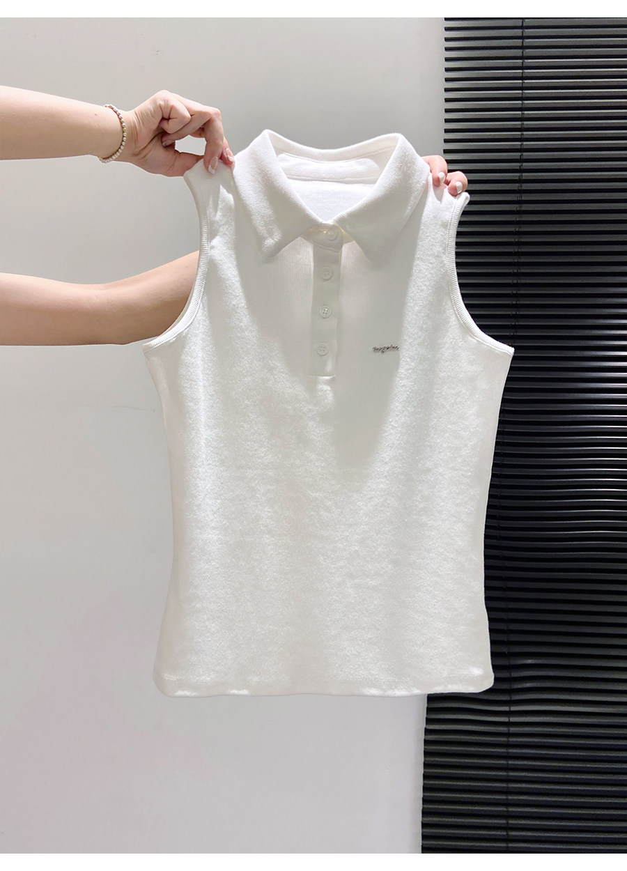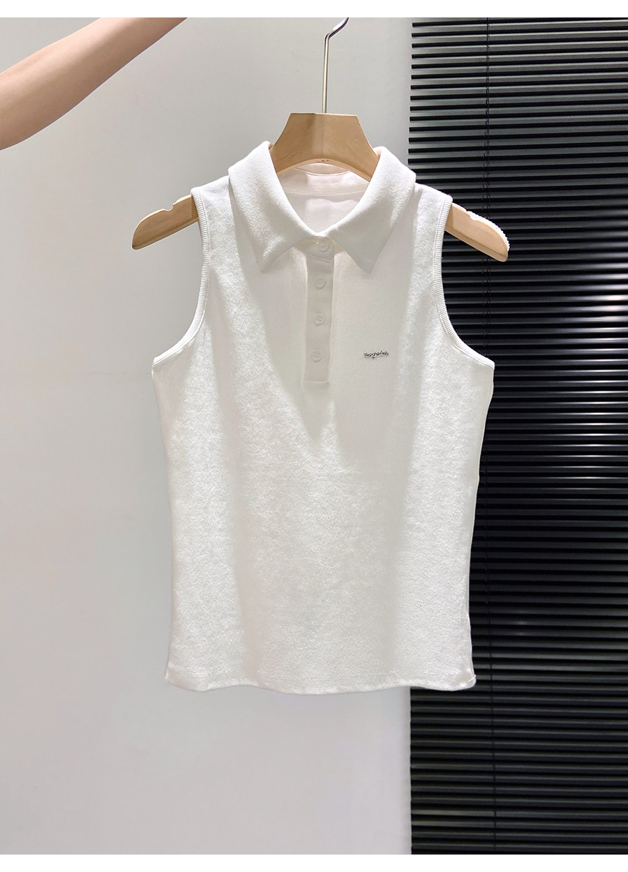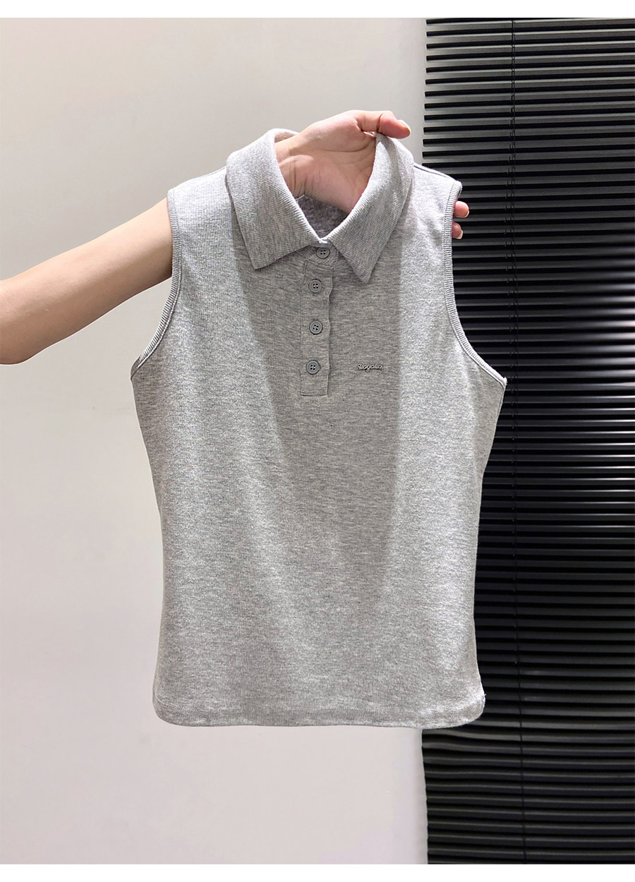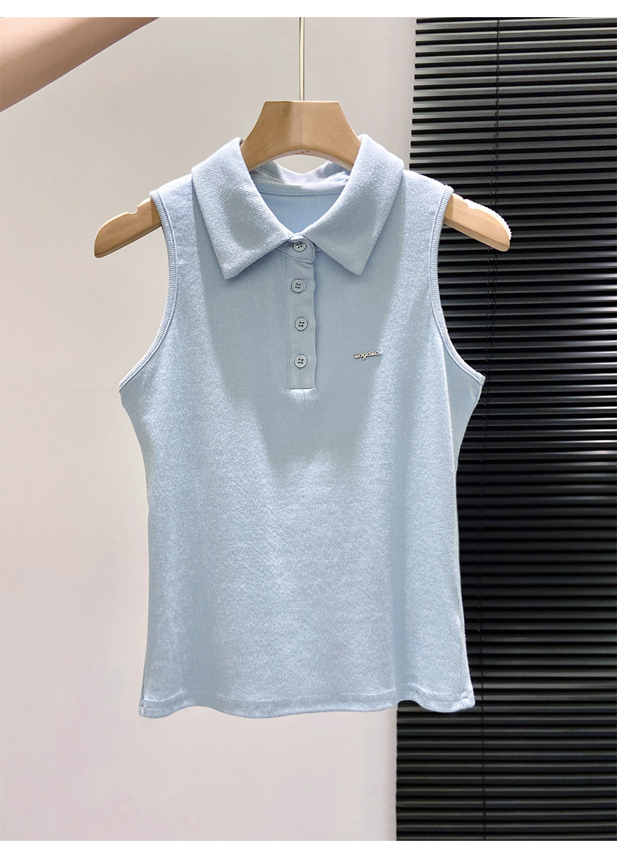 American Retro Polo Collar Sleeveless T-Shirt for Women, Summer Slim-Fit Halter Top That Covers the Side Breasts, Outerwear, Sexy Tank Top