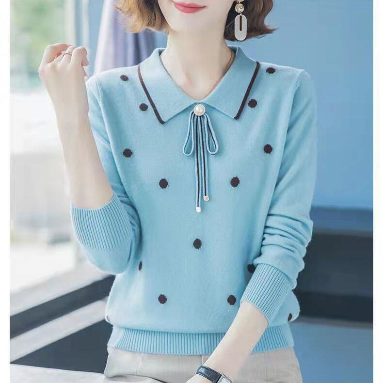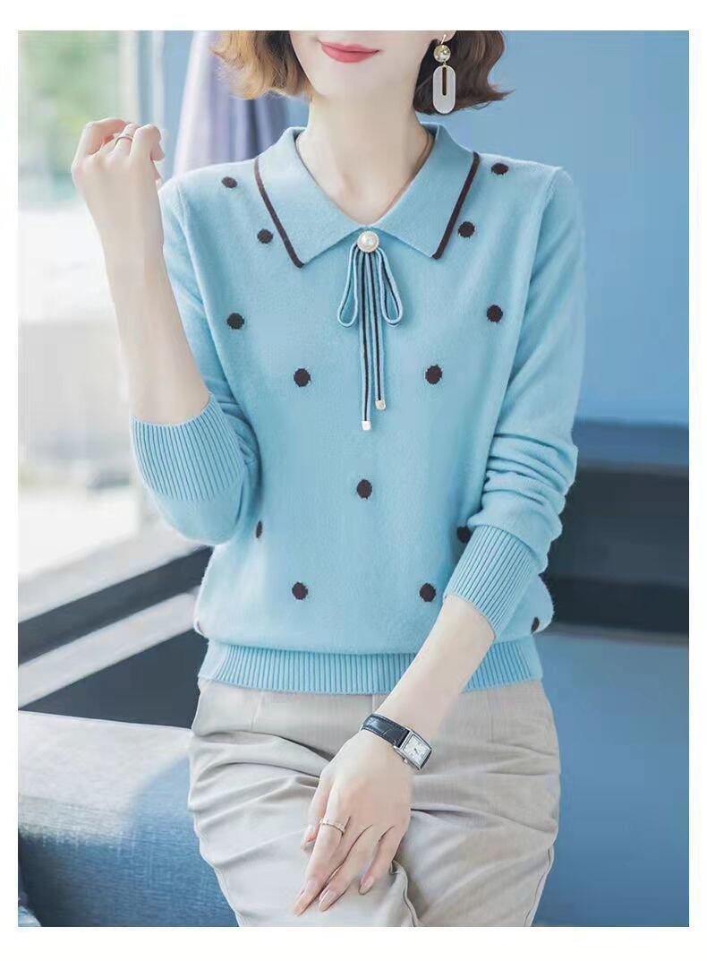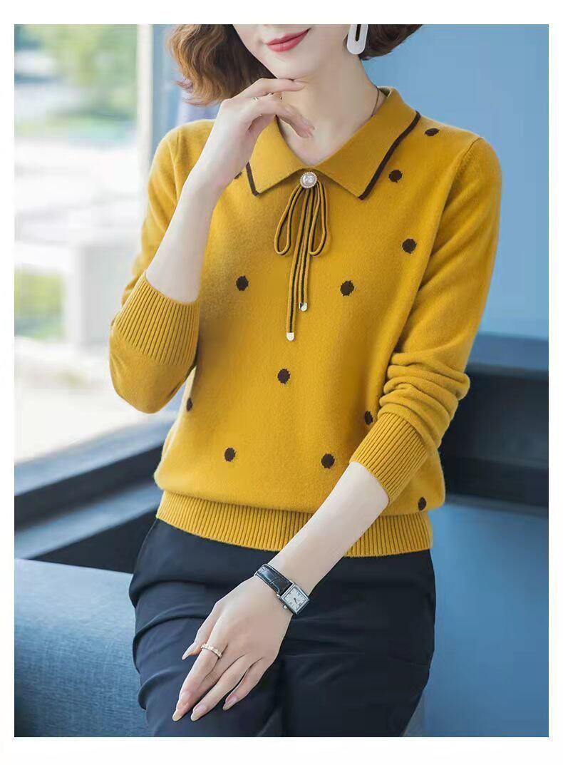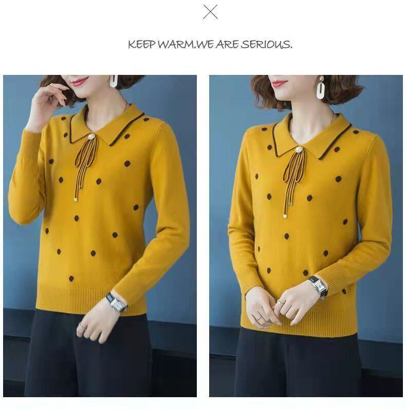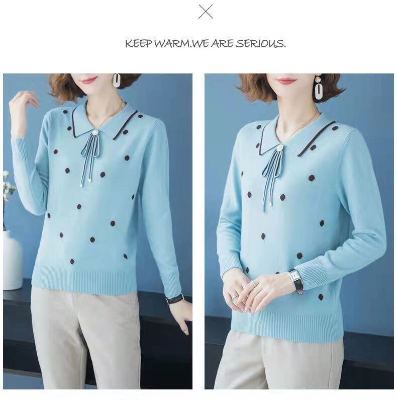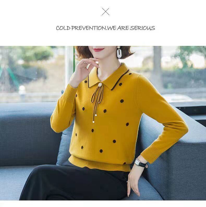 2025 Spring and Autumn New Style Middle-Aged Outerwear Loose Lapel Fashionable Sweater Knitwear Versatile Base Shirt