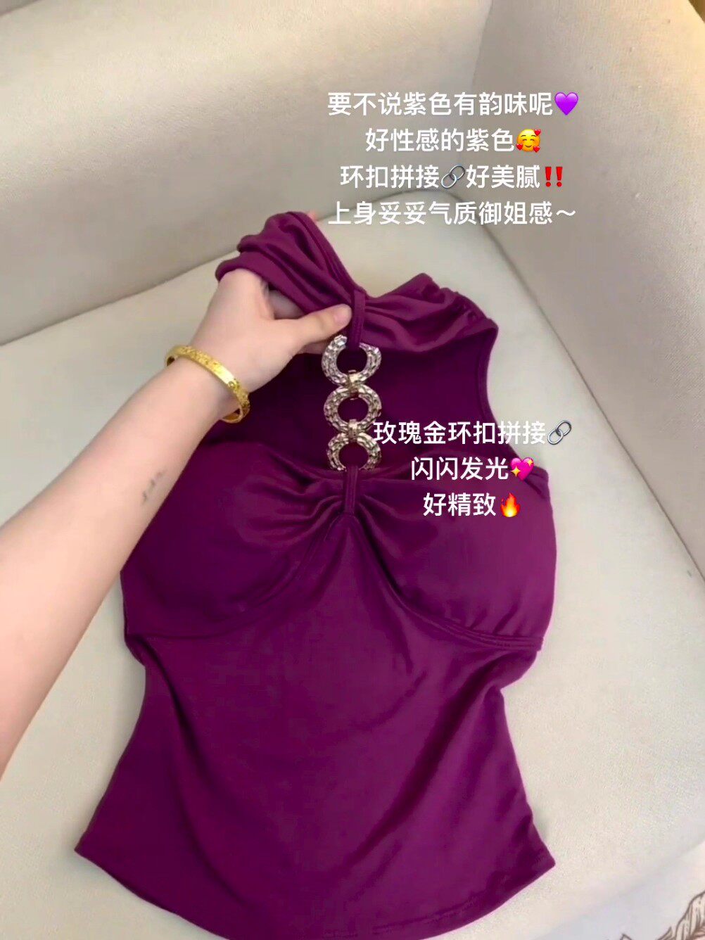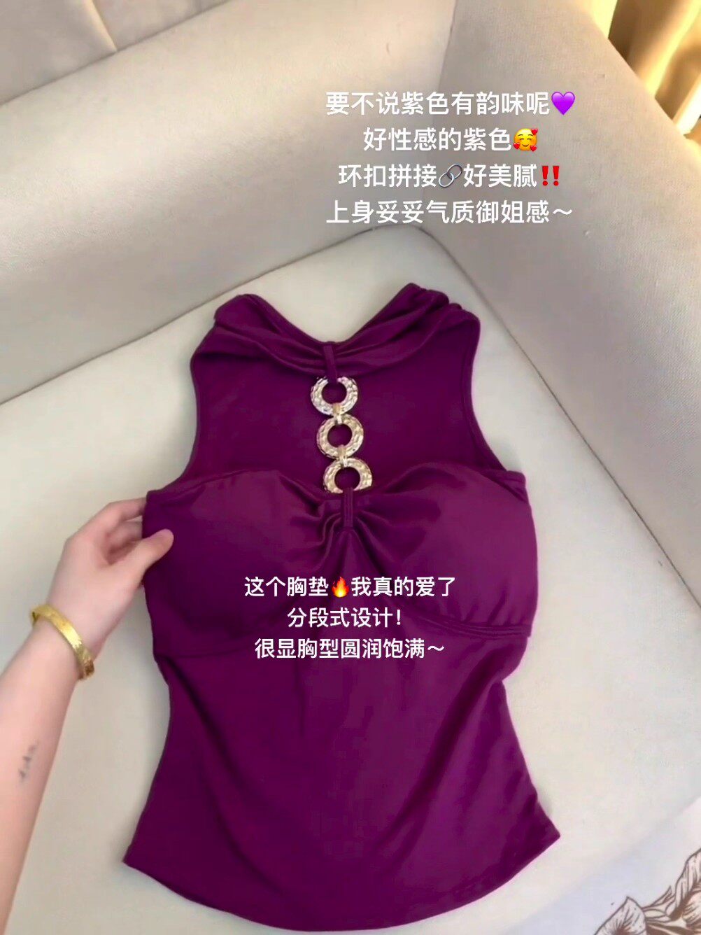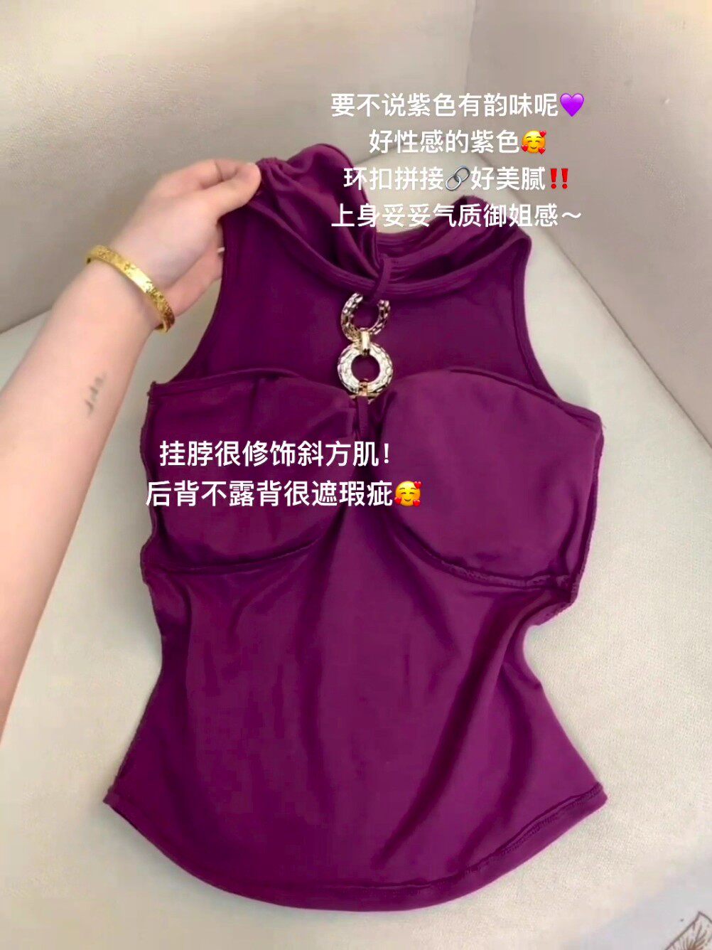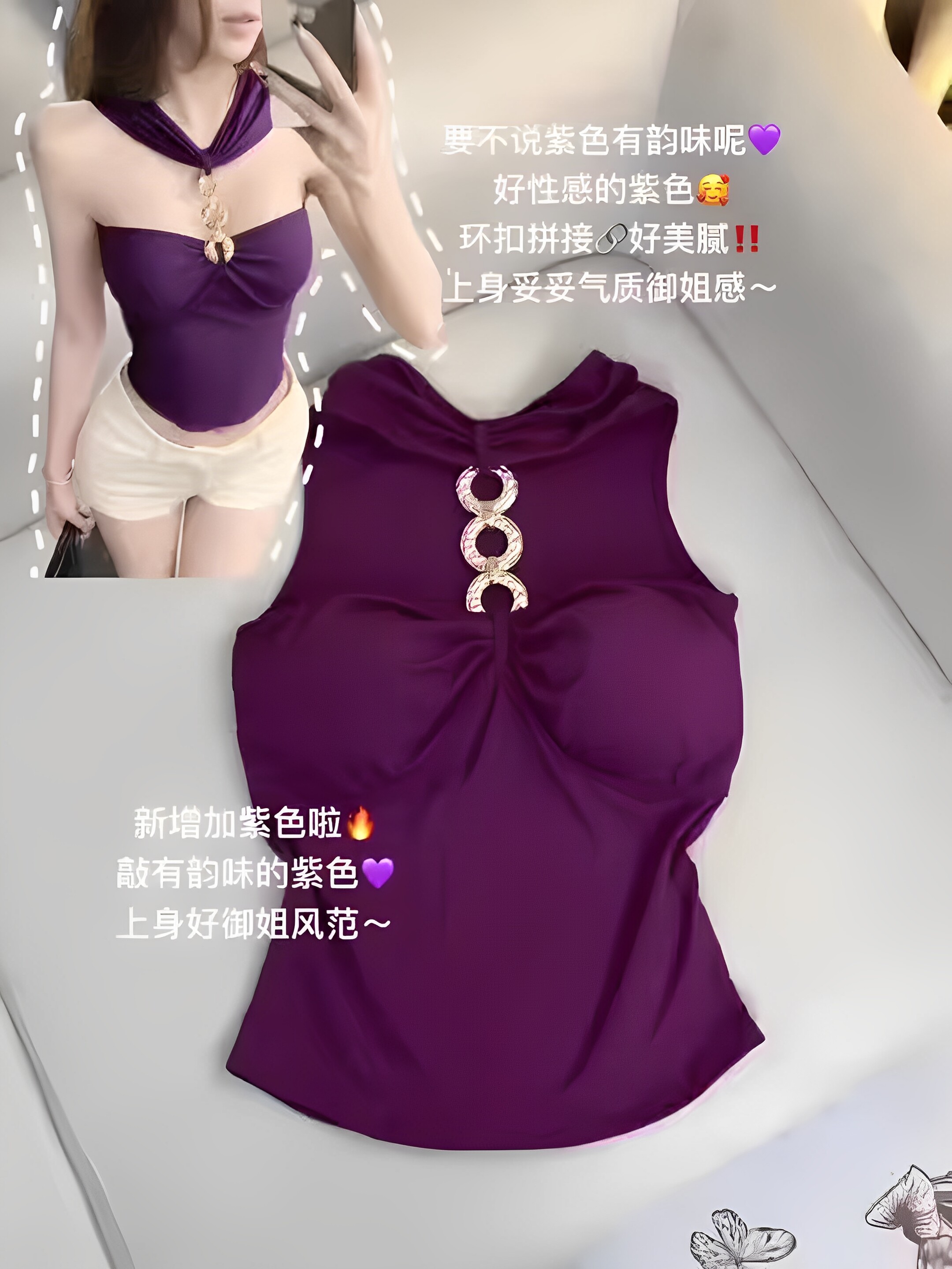 Pure Desire Diamond Chain Halter Neck Camisole Women's Summer Outerwear Niche Sexy All-in-One with Breast Pads and Bottoming Top