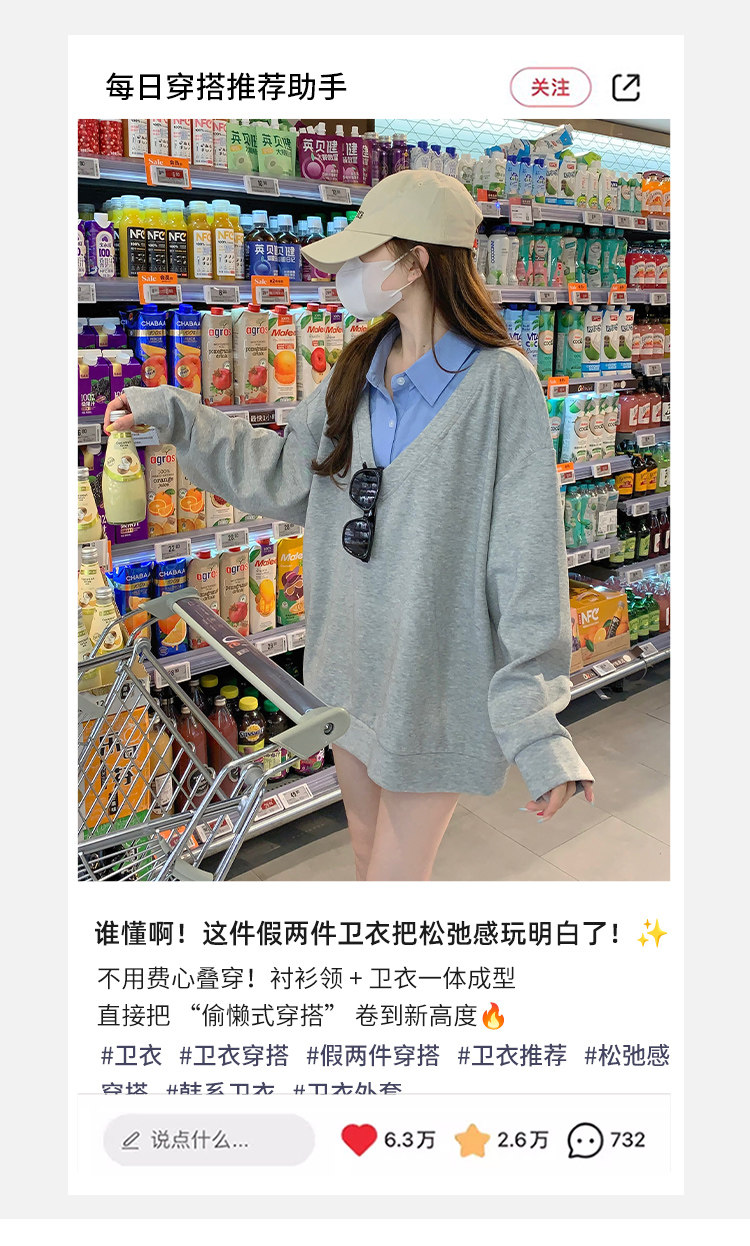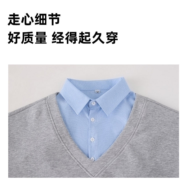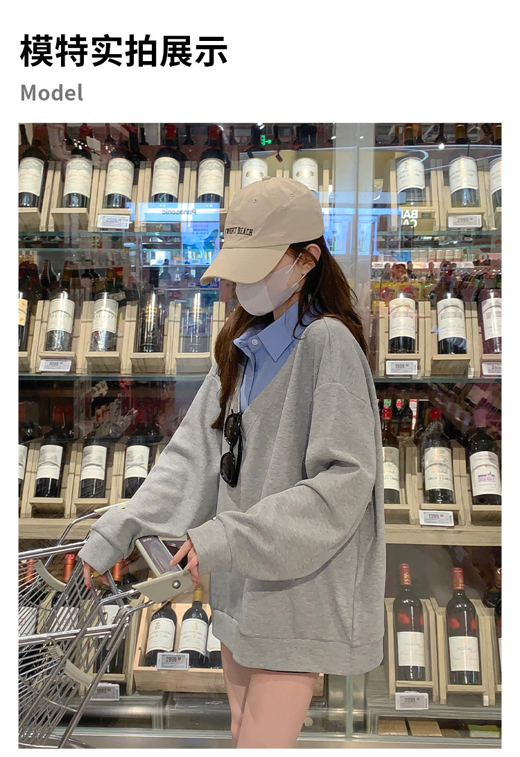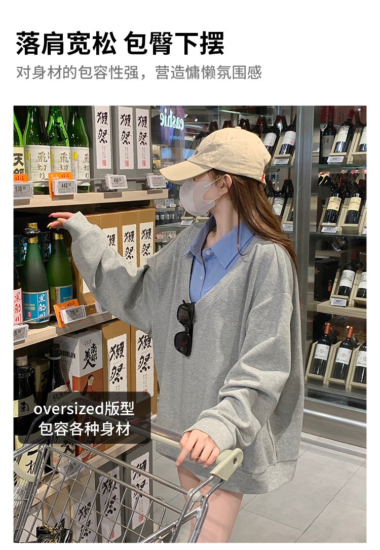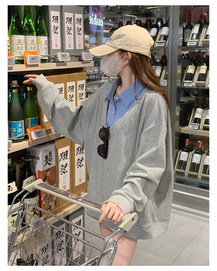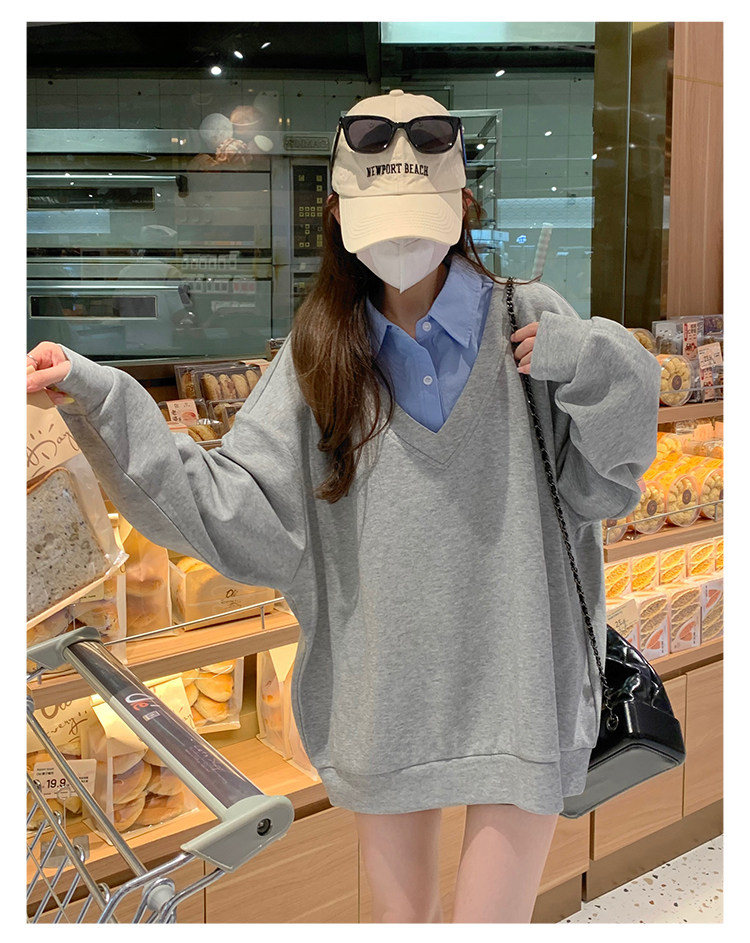 Fake two-piece polo collar sweatshirt for women thin 2026 new long-sleeved Korean gray loose top popular autumn wear
