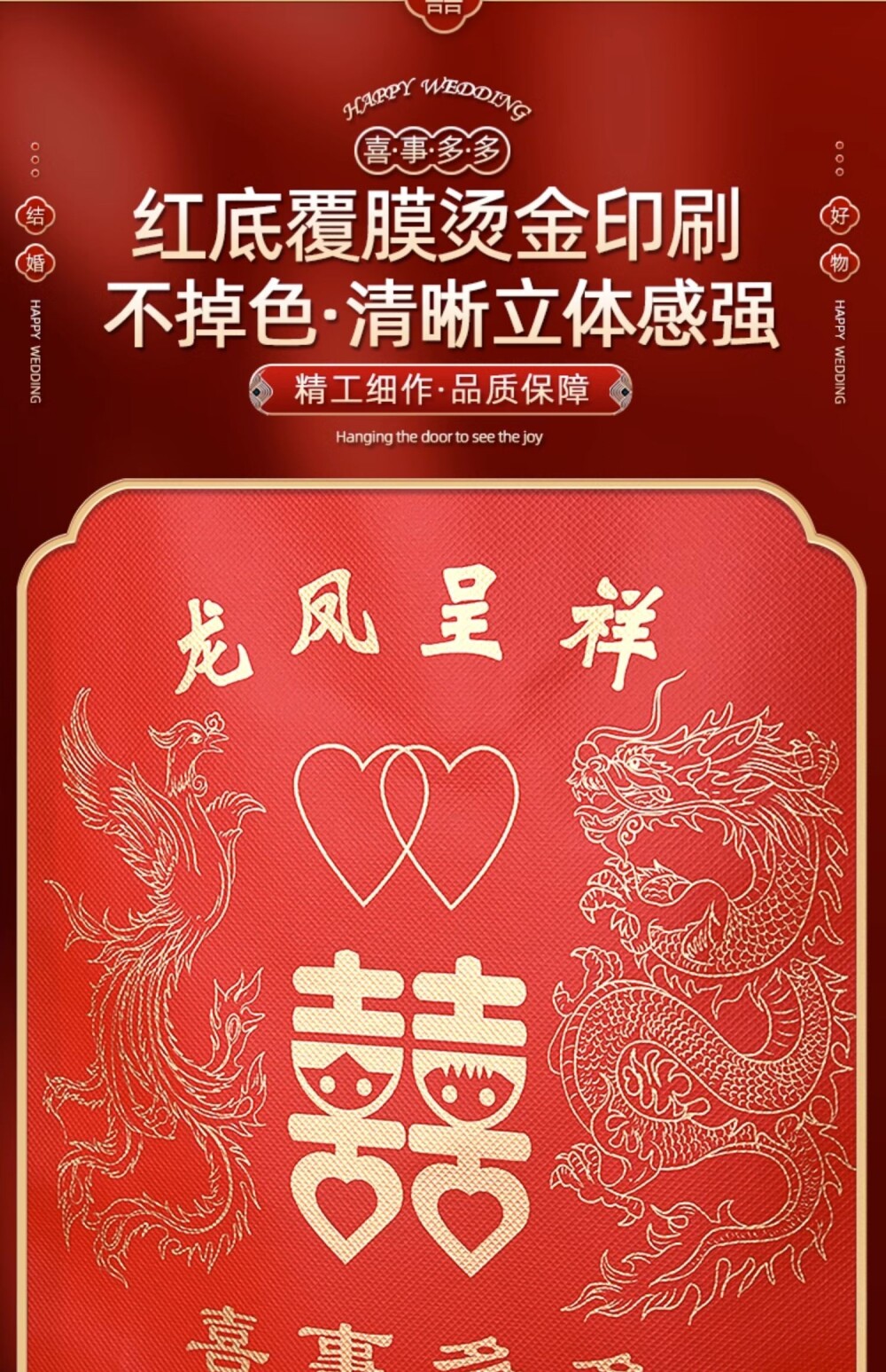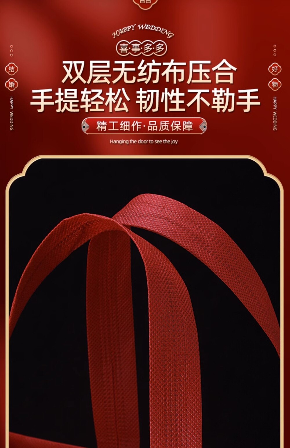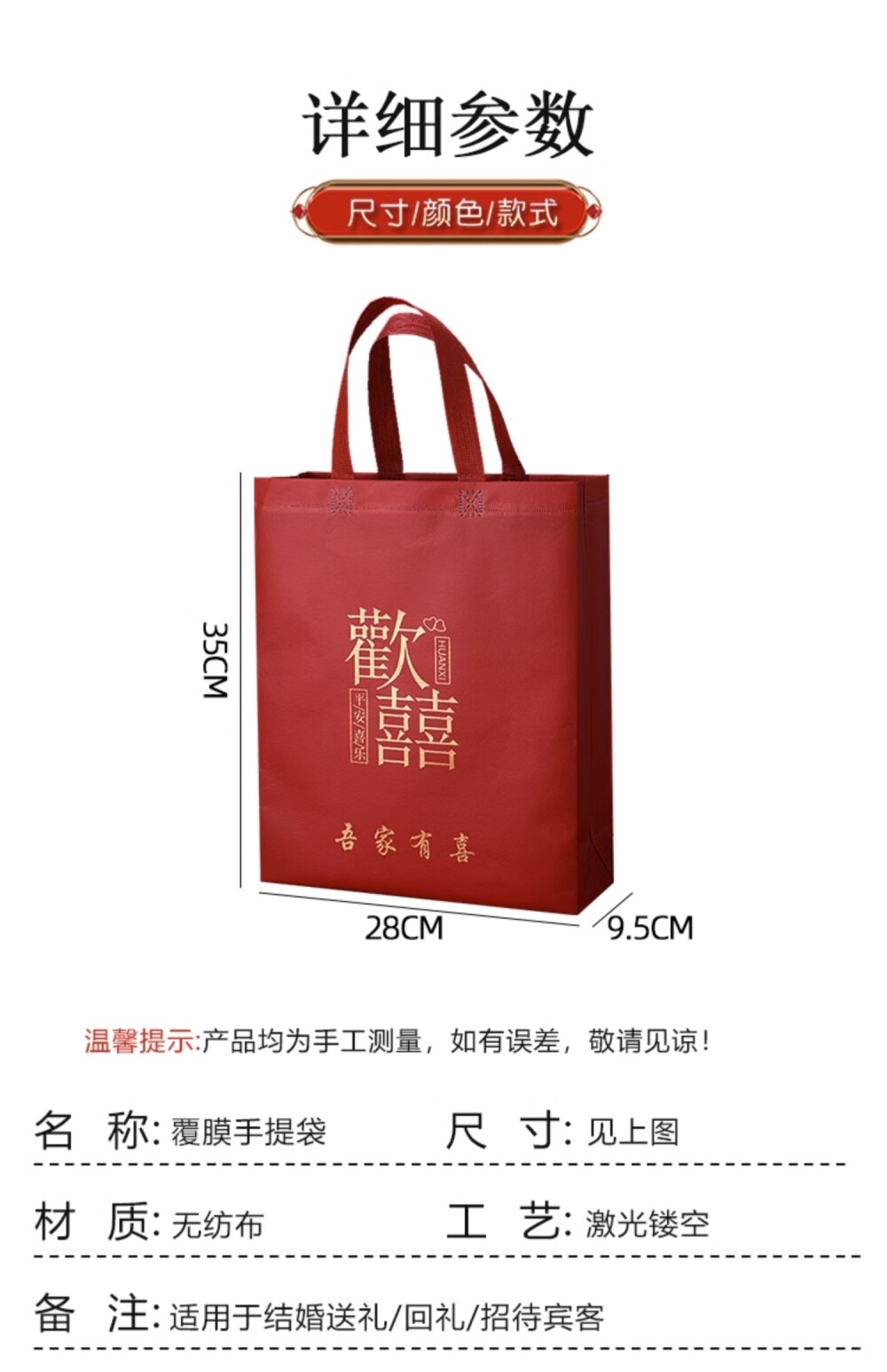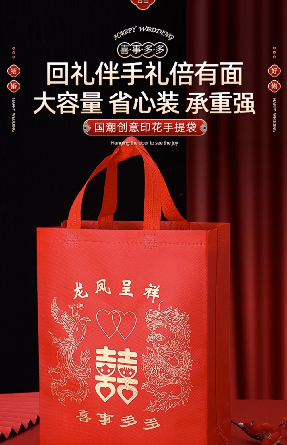 Non-Woven Fabric Laminated Tote Bag, High-End Red Gift Bag with the Character for Happiness, Thickened for Wedding Celebrations, Suitable for Packaging Cigarettes, Alcohol, and Return Gifts