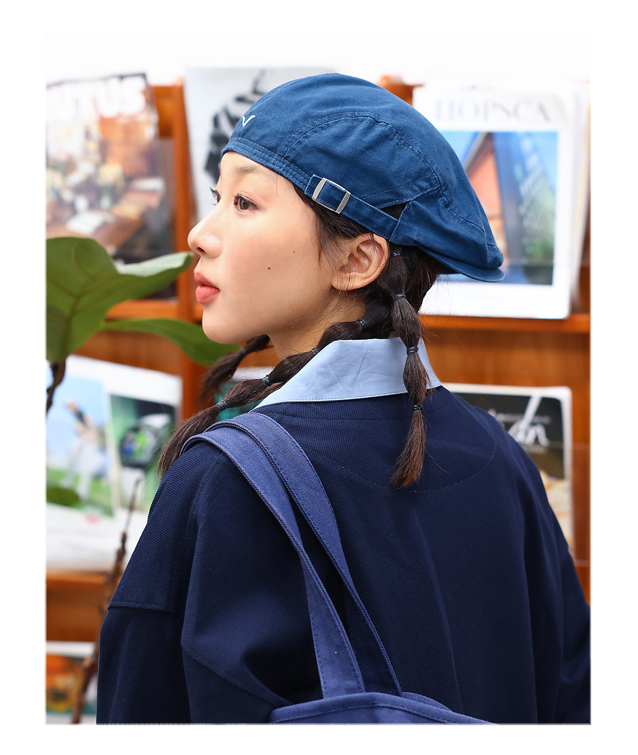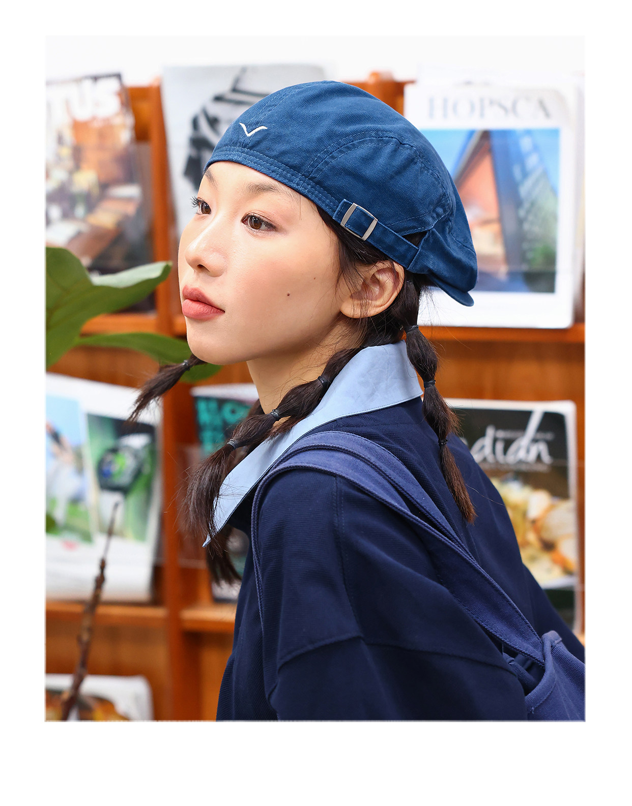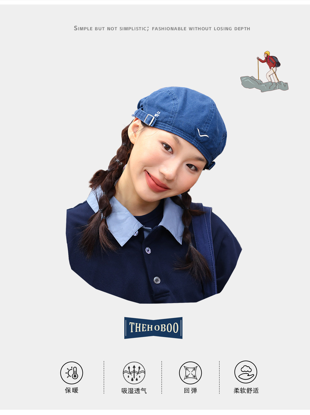 THE HOBOO original embroidered reverse beret women's autumn and winter forward hat showing face small hat men's newsboy hat