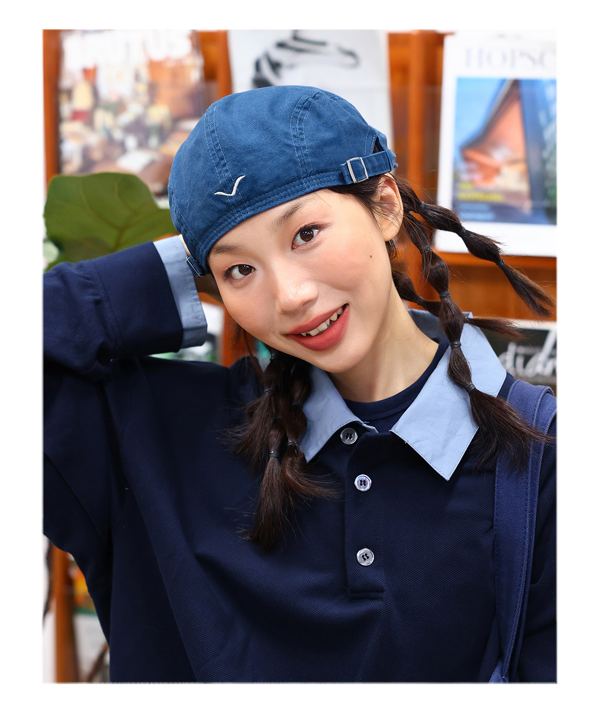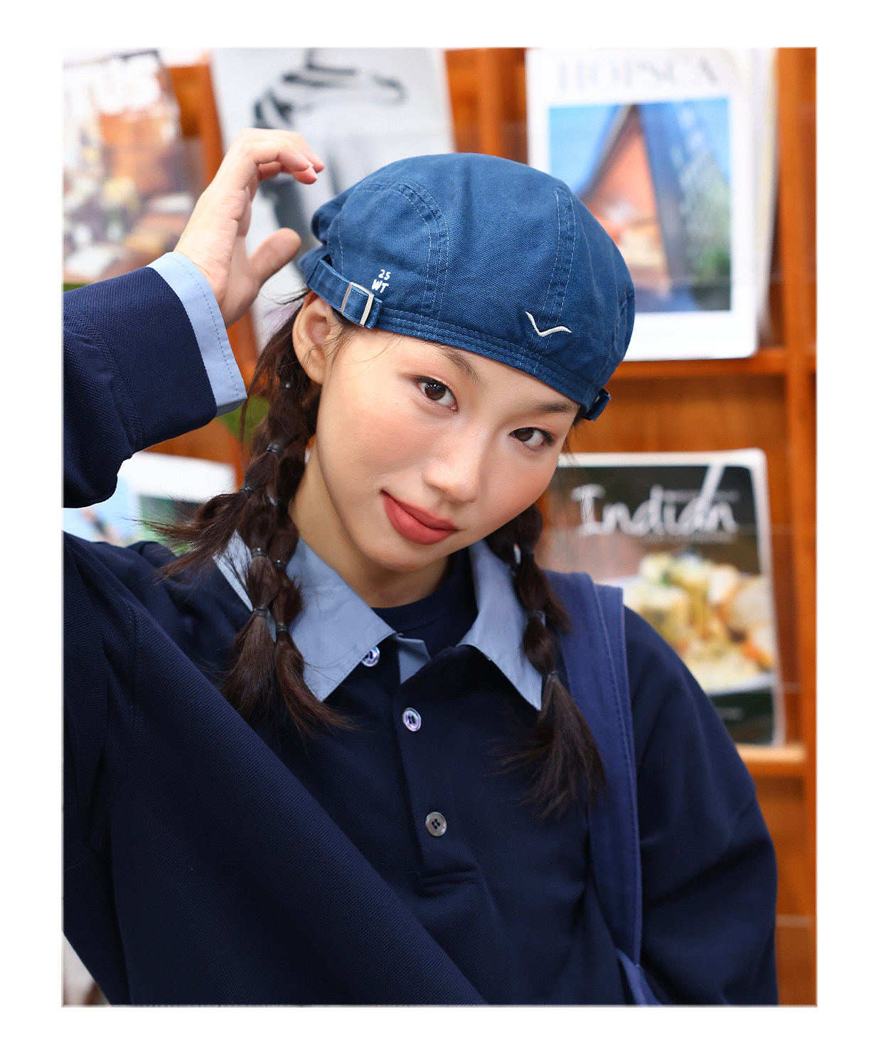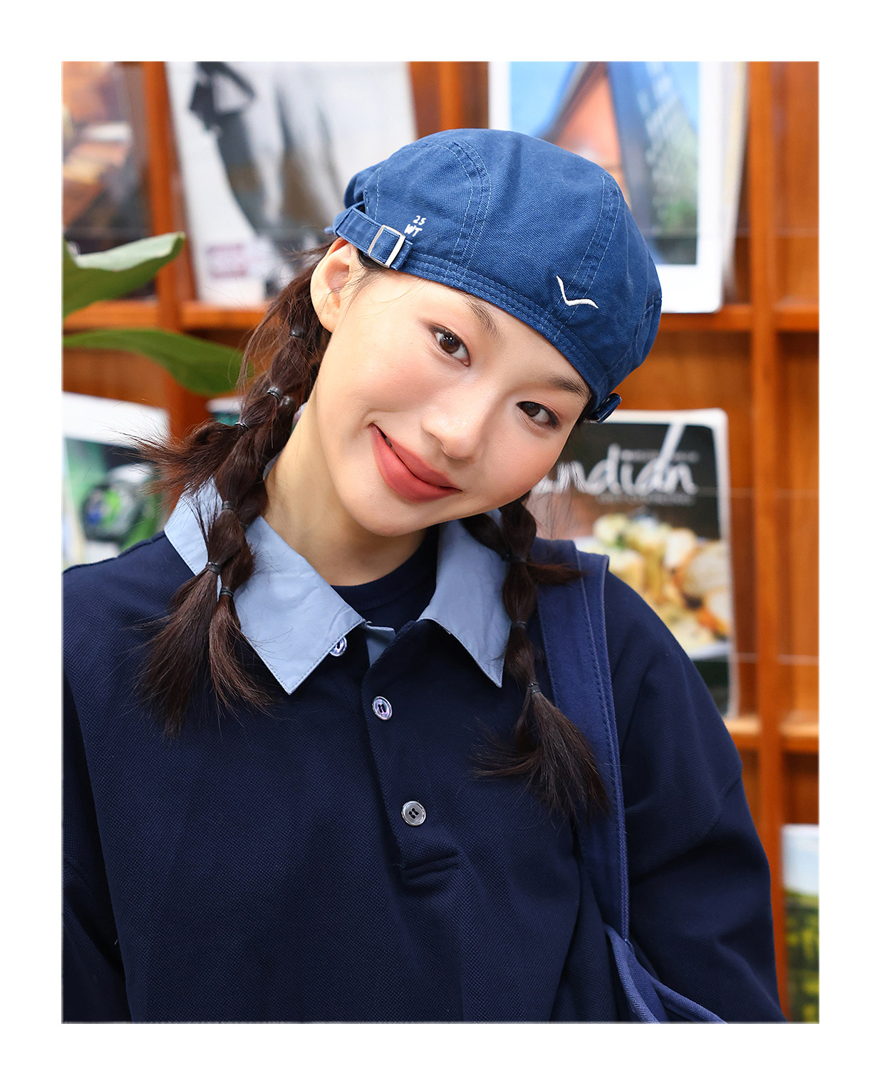 THE HOBOO original embroidered reverse beret women's autumn and winter forward hat showing face small hat men's newsboy hat