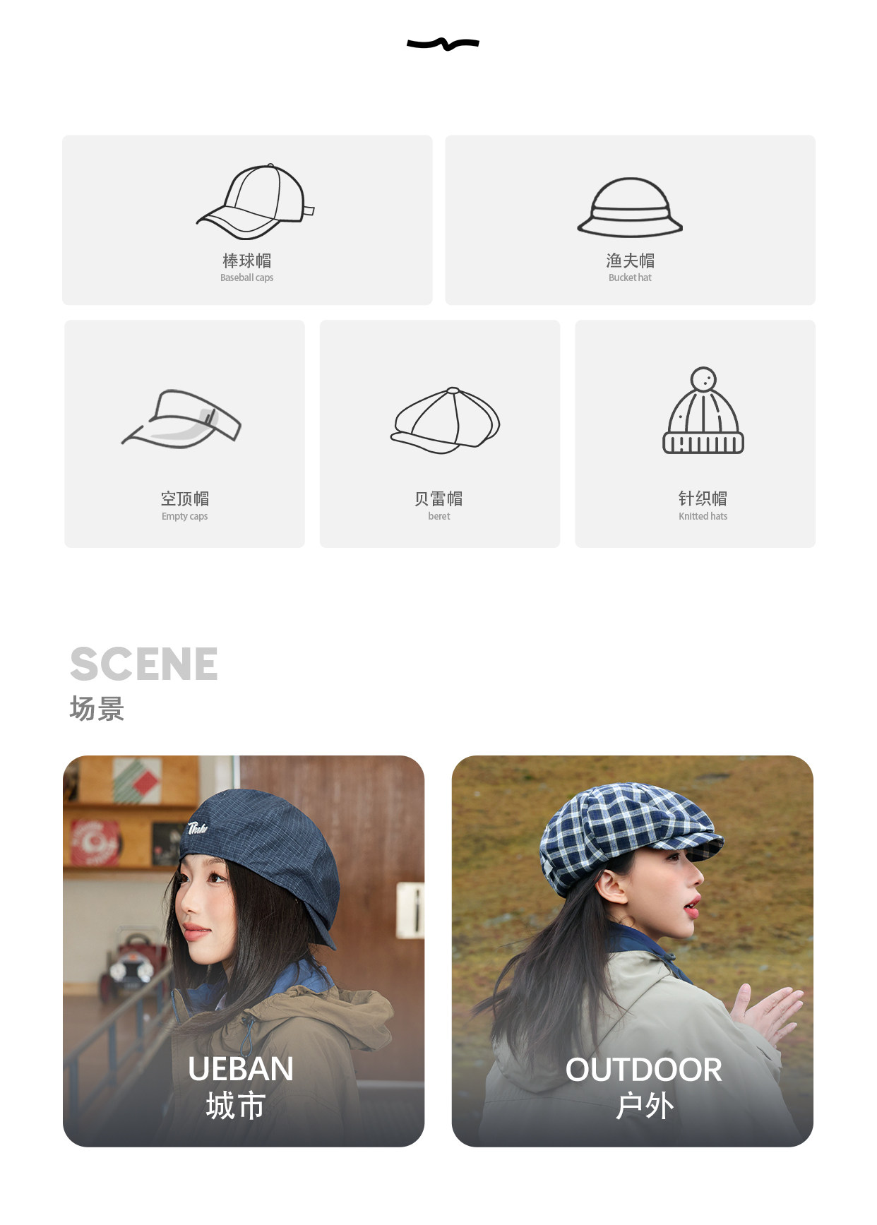 Hat brim style Curved eaves