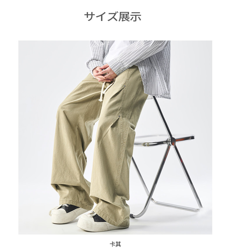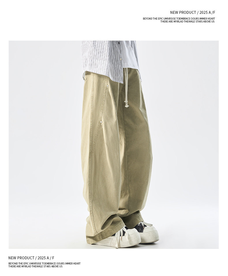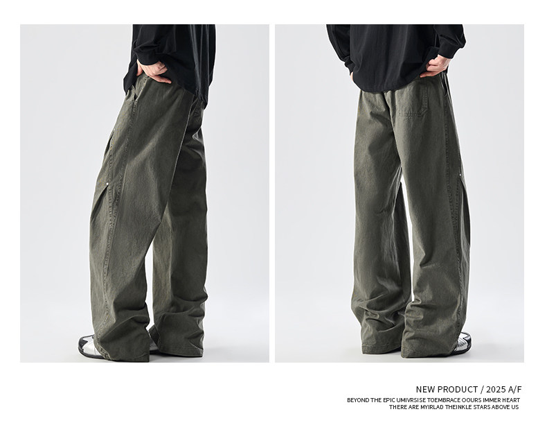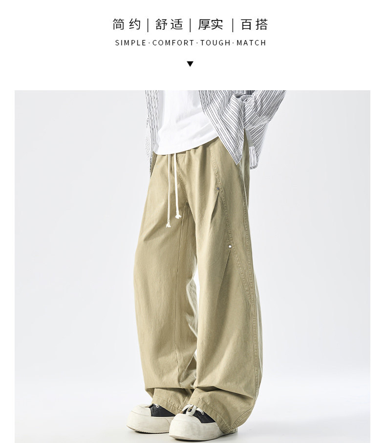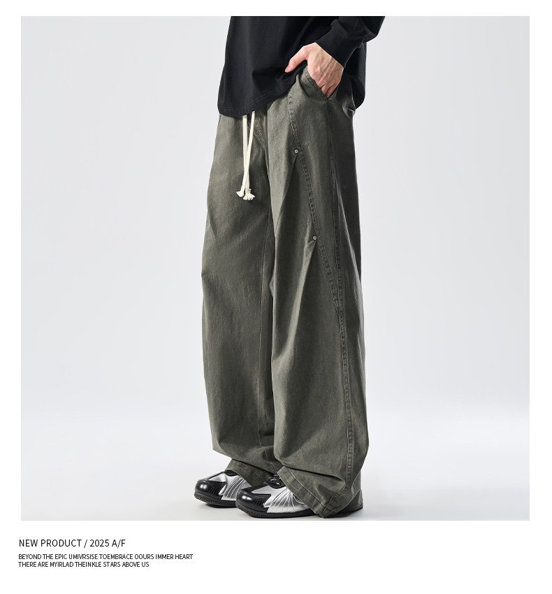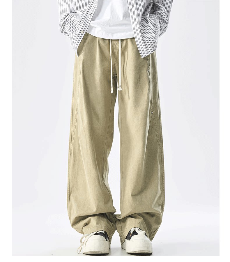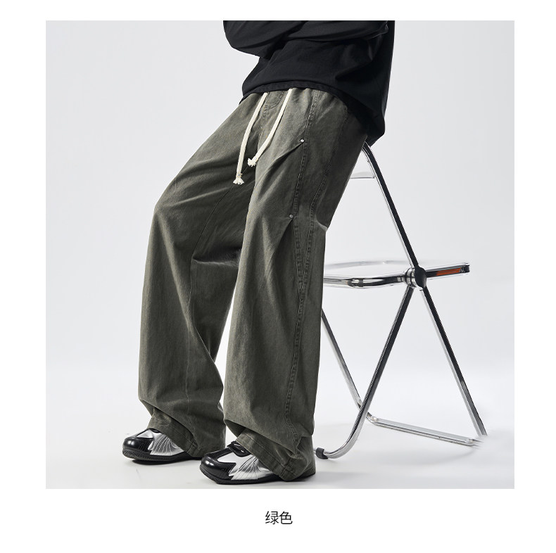 Men's Pure Cotton High Street Cargo Pants, Autumn Style, American Retro Trendy Brand, Loose Wide-Leg Straight Casual Pants