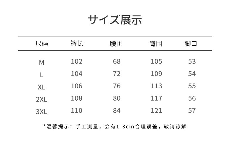 Outseam (cm) 99 cm 101.5 cm 104 cm 106.5 cm 109 cm