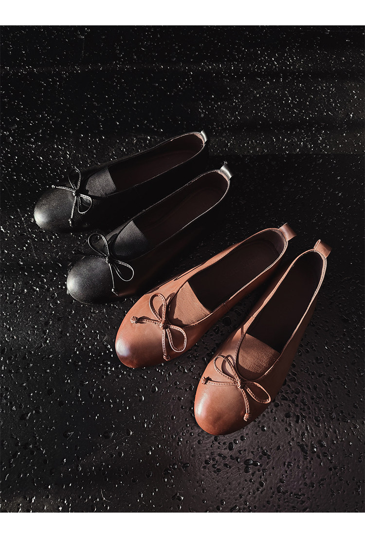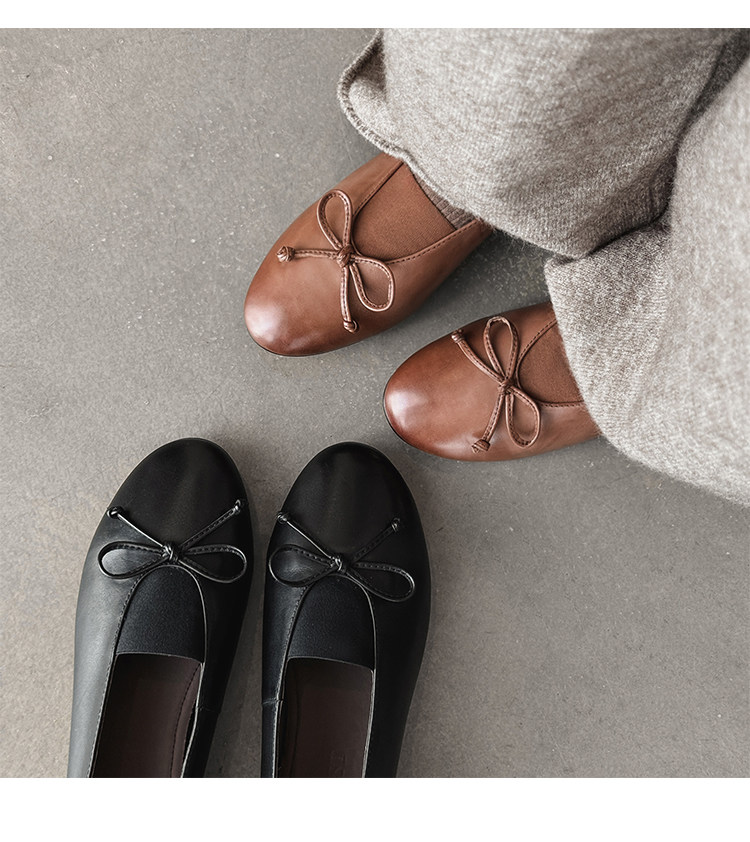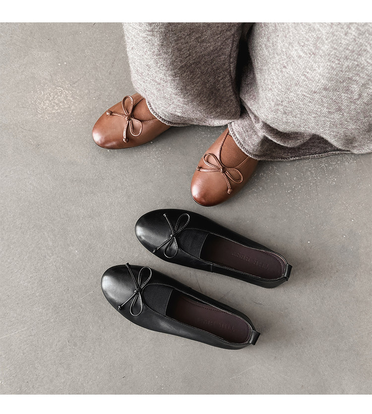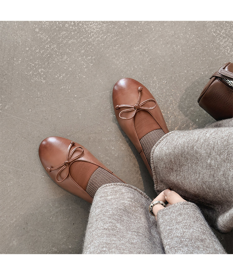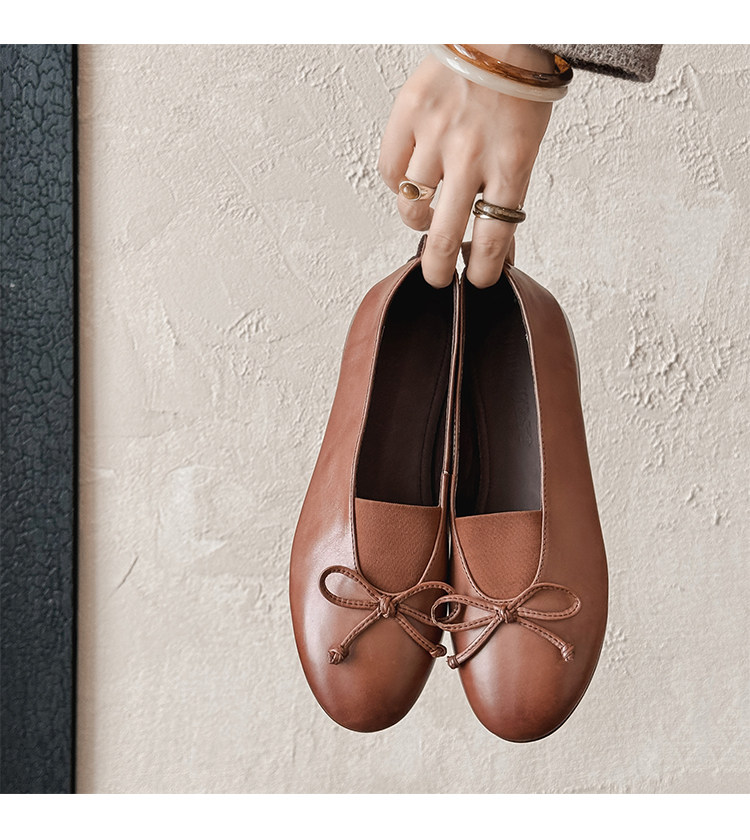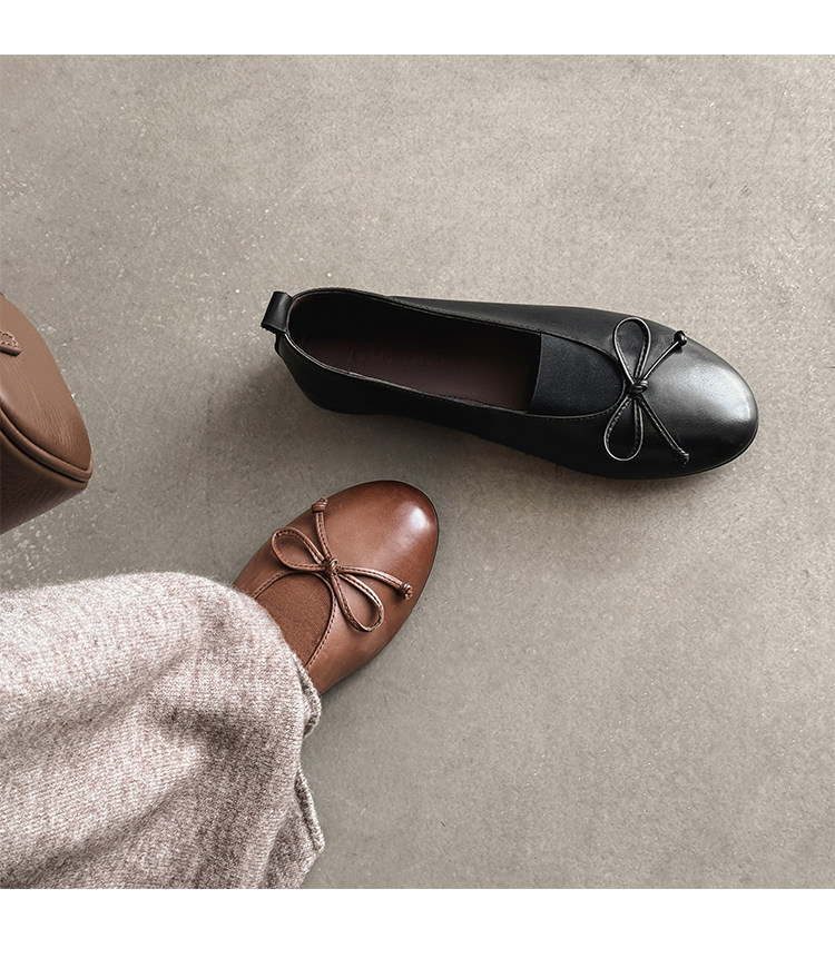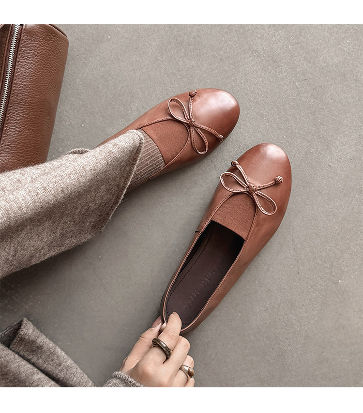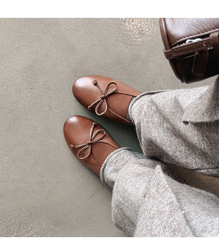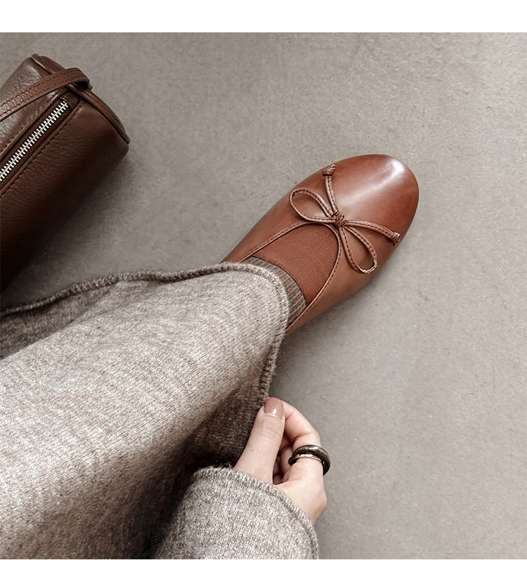 Italy's Corso Venezia~Vintage Genuine Leather Round-Toe Bow-Knot Ballet Flat Mary Jane Soft-Soled Shoes