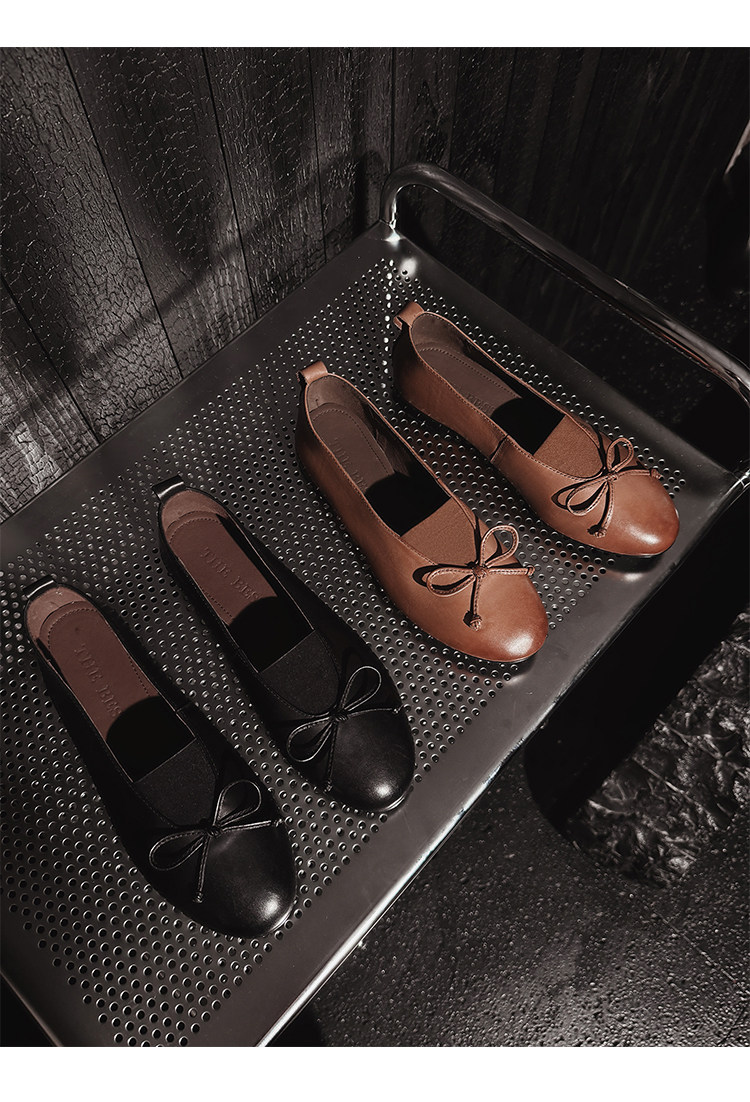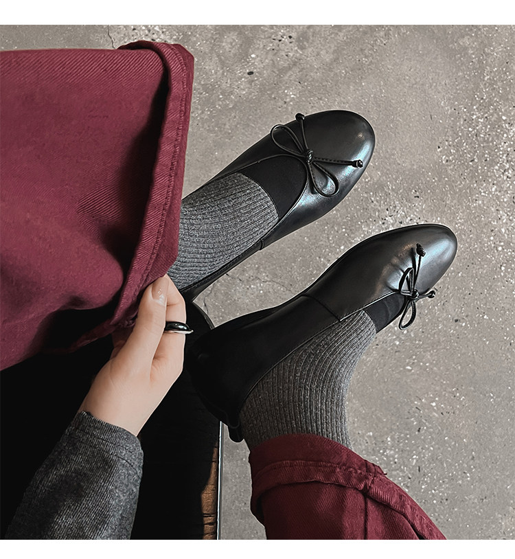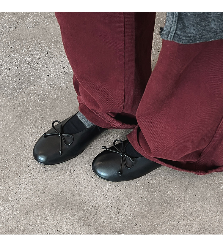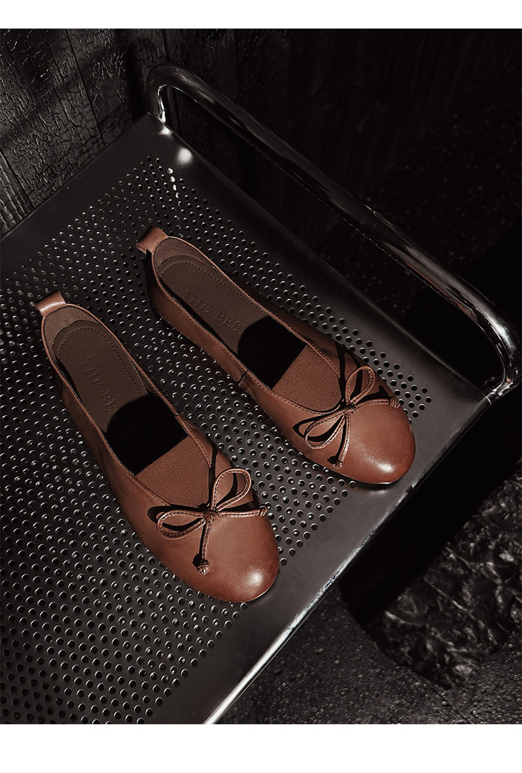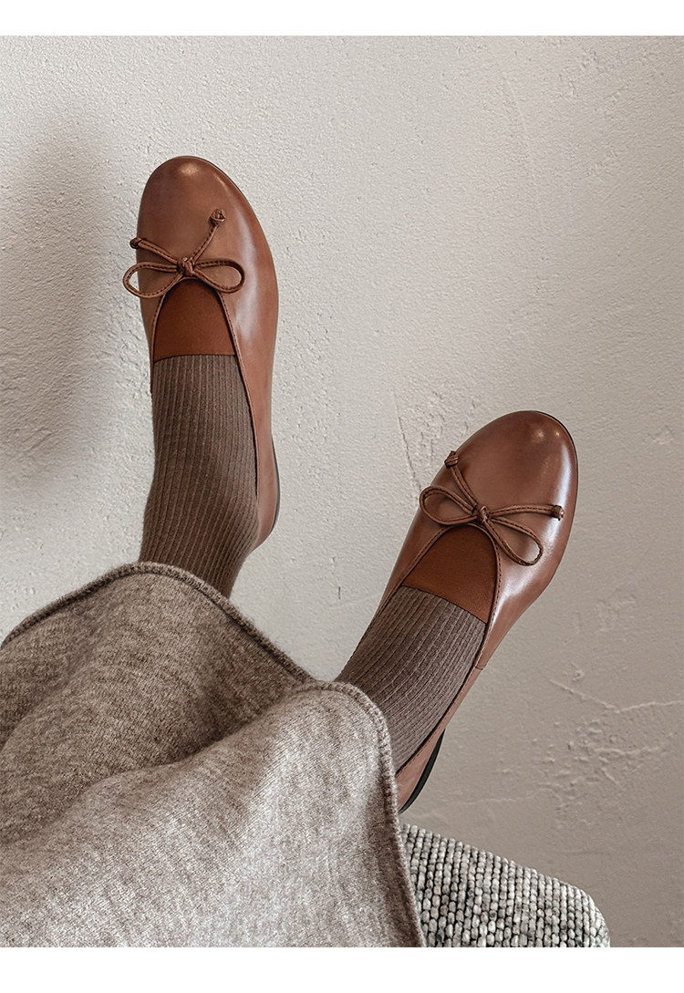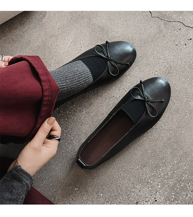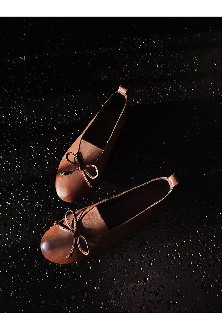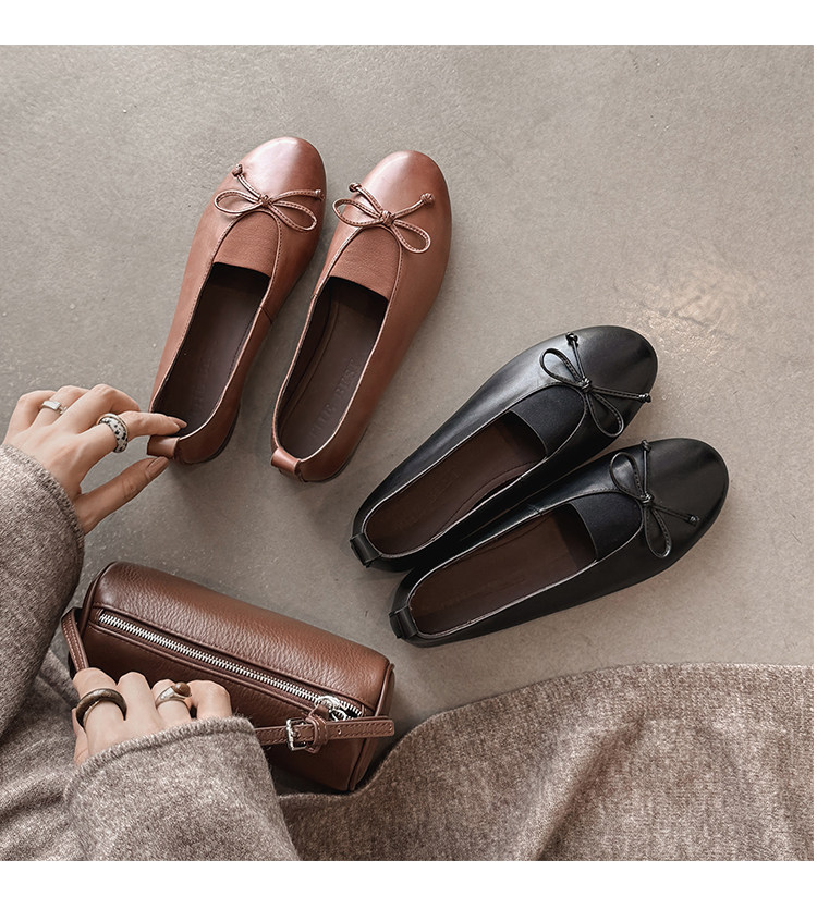 Italy's Corso Venezia~Vintage Genuine Leather Round-Toe Bow-Knot Ballet Flat Mary Jane Soft-Soled Shoes