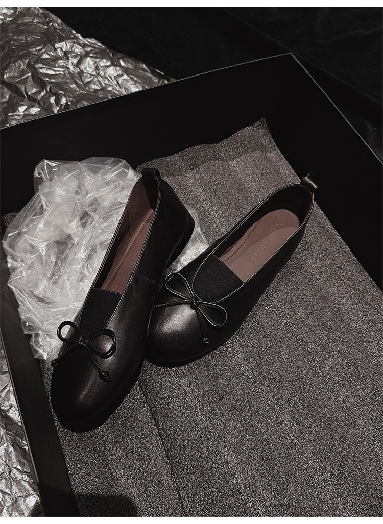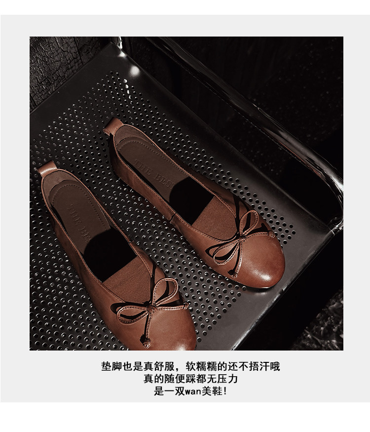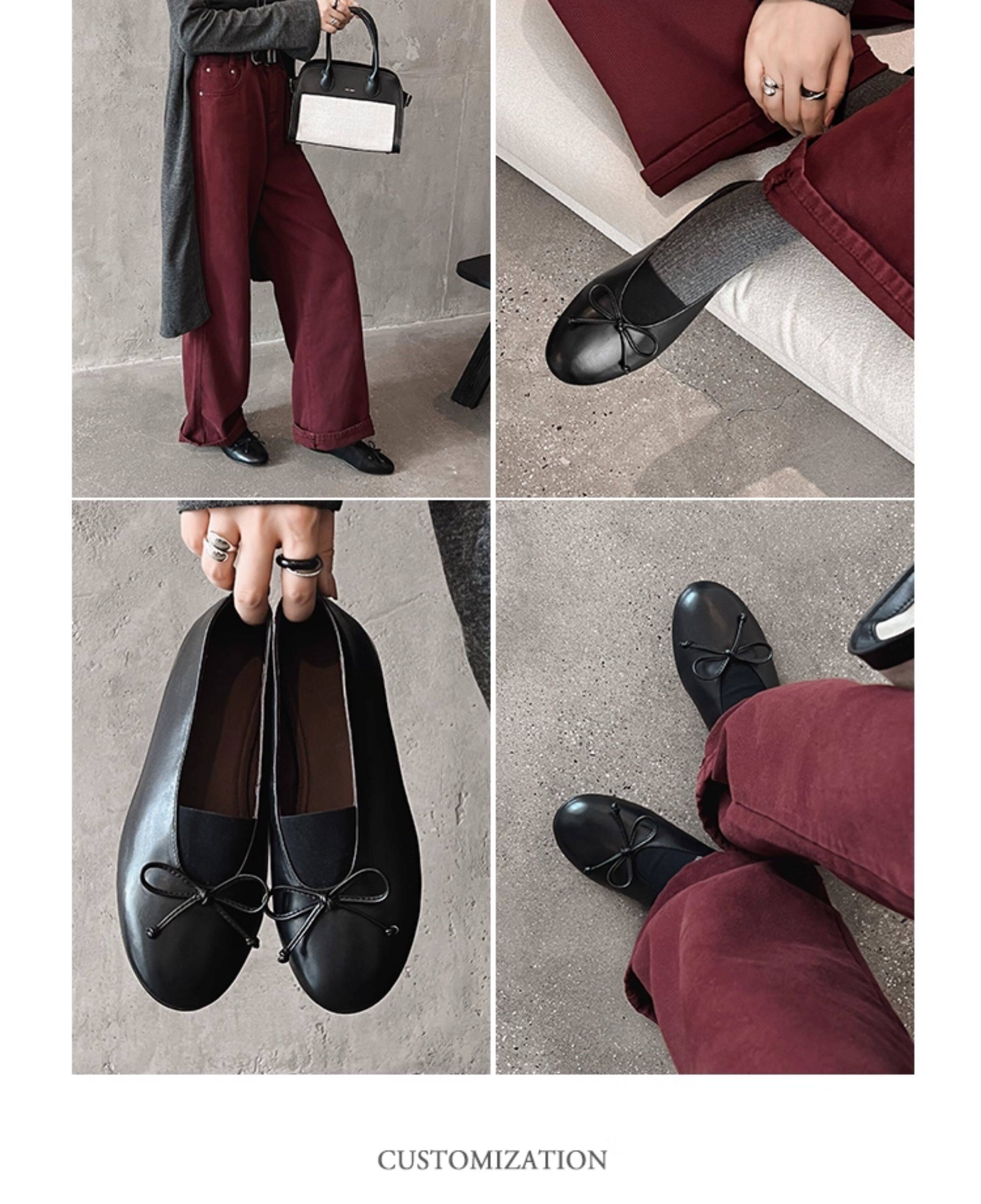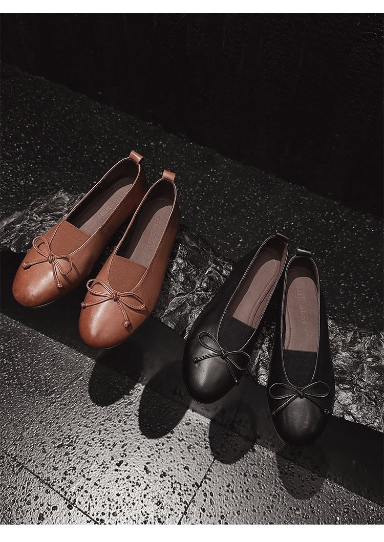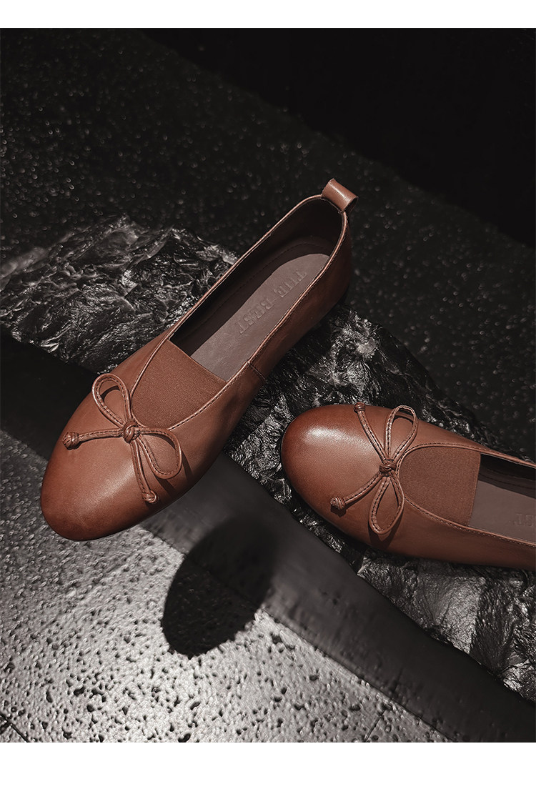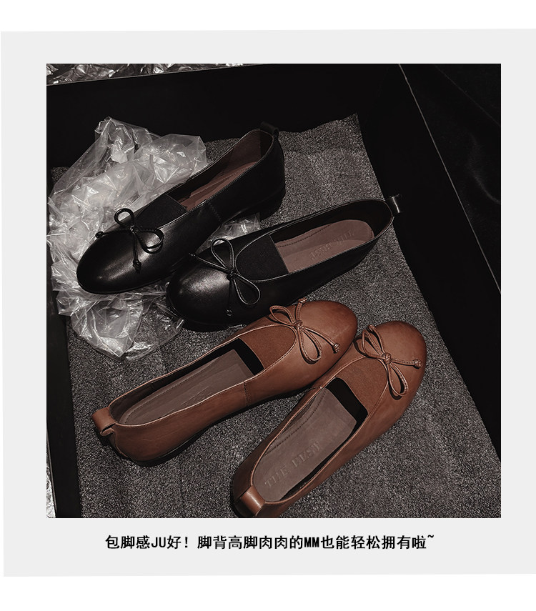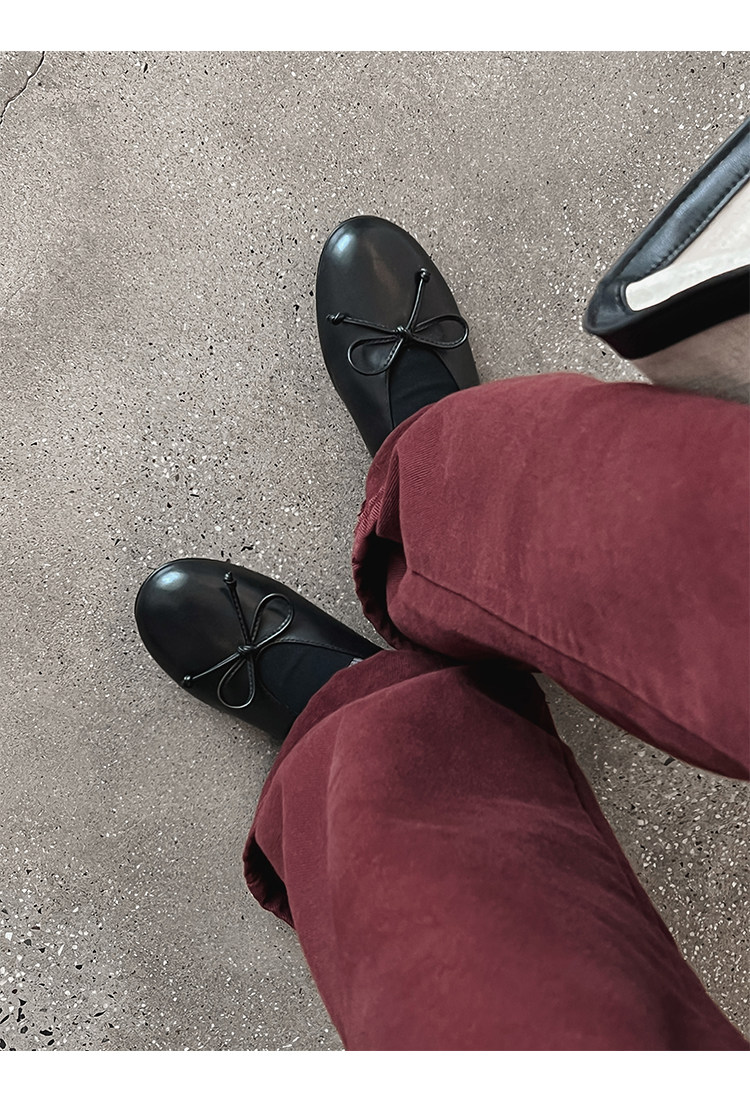 Italy's Corso Venezia~Vintage Genuine Leather Round-Toe Bow-Knot Ballet Flat Mary Jane Soft-Soled Shoes