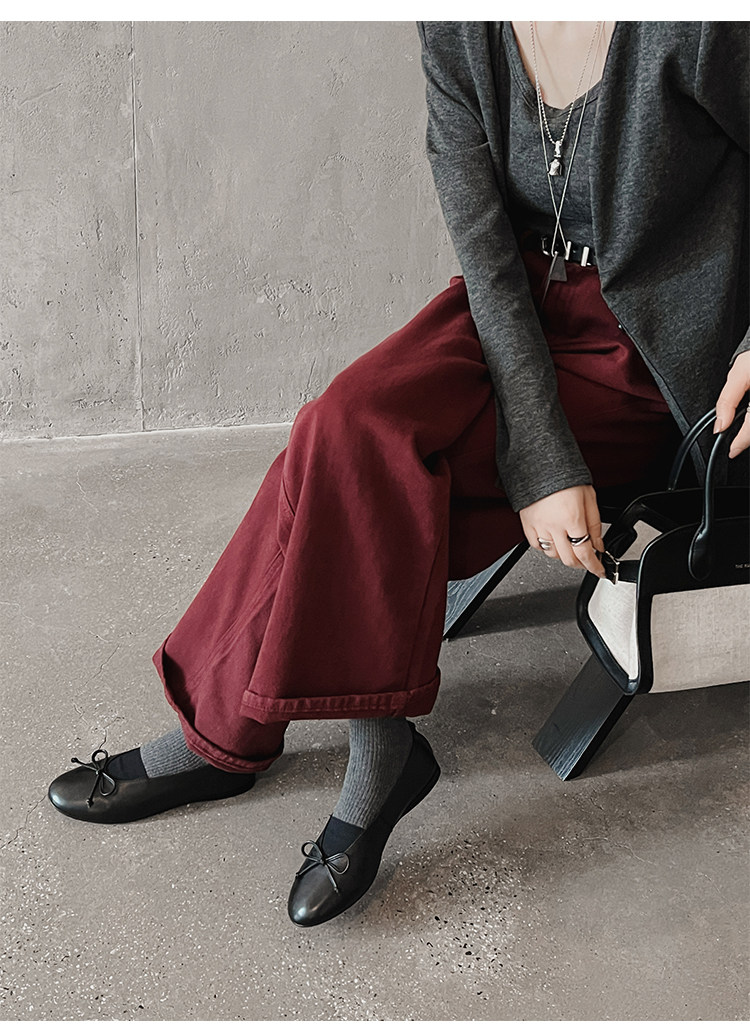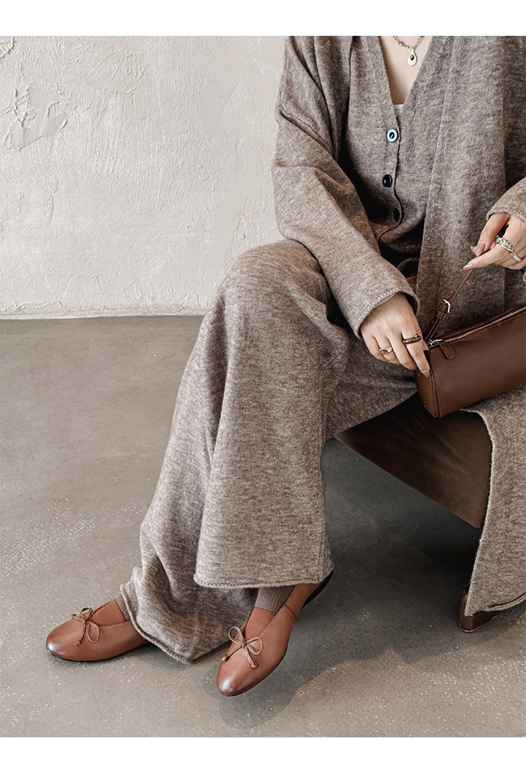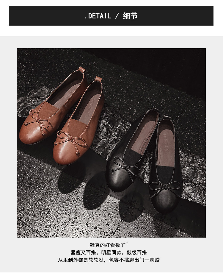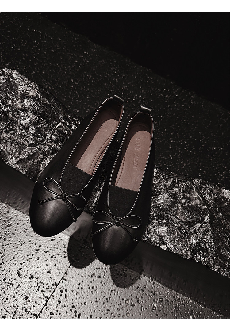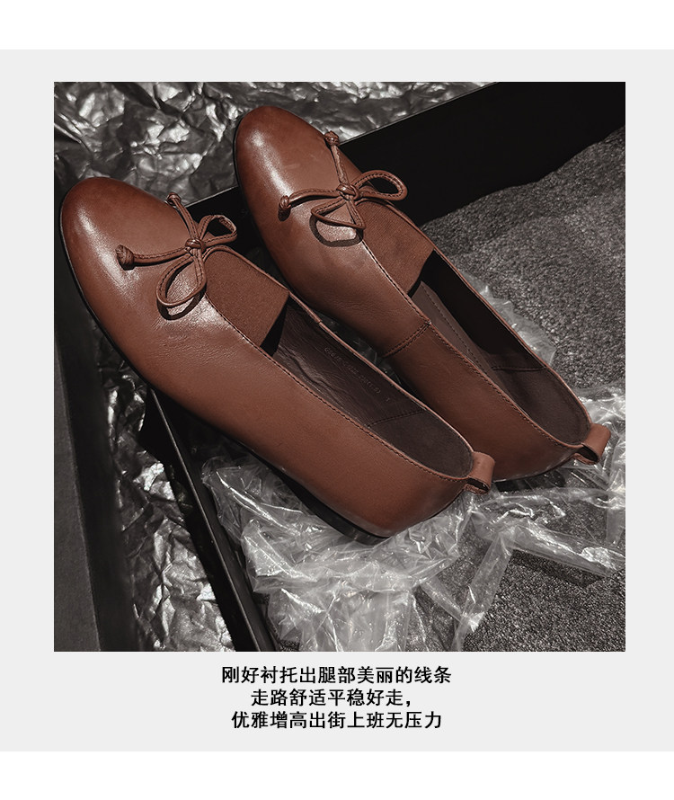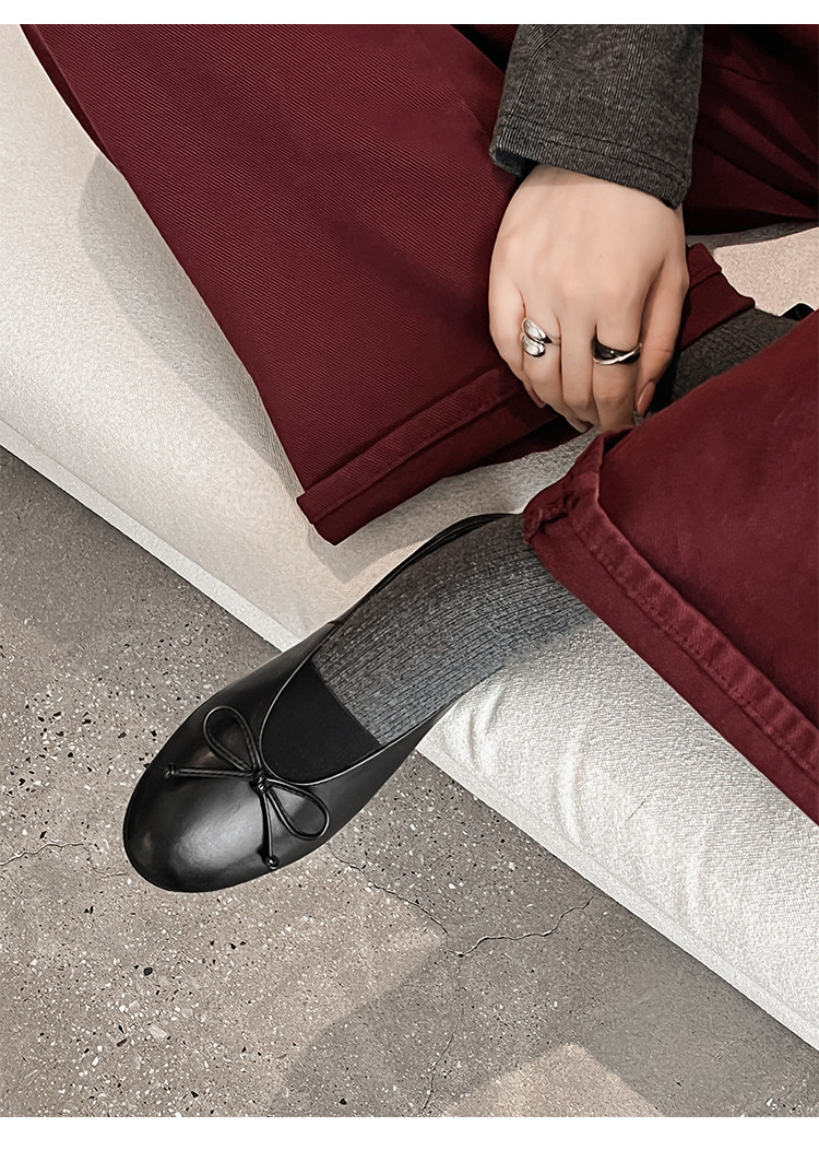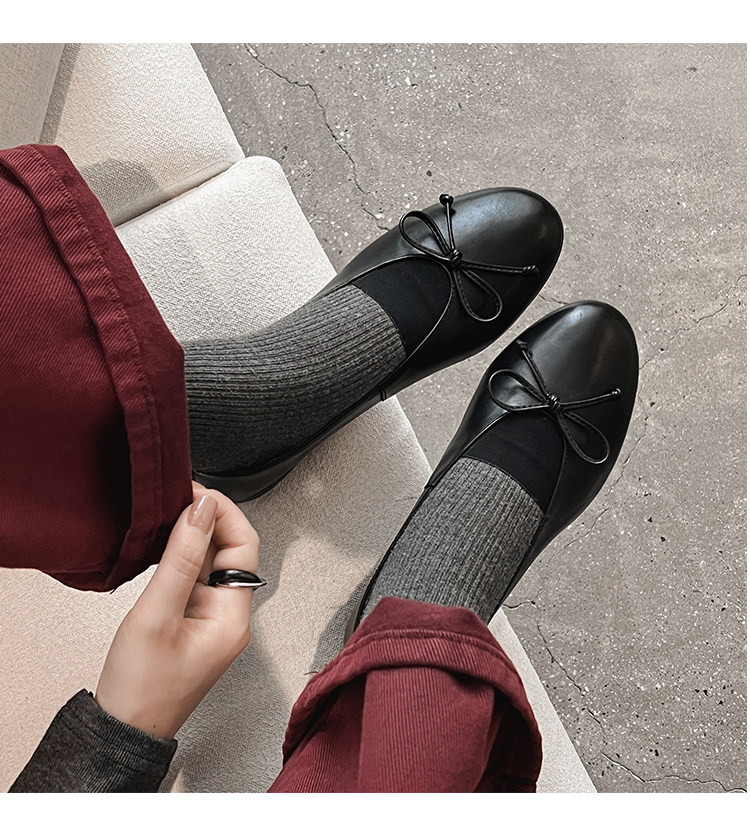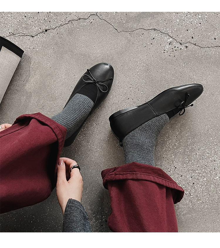 Italy's Corso Venezia~Vintage Genuine Leather Round-Toe Bow-Knot Ballet Flat Mary Jane Soft-Soled Shoes
