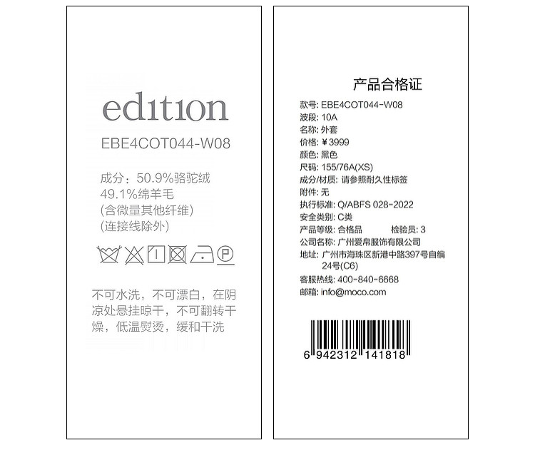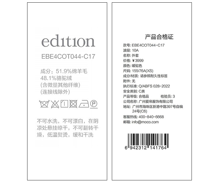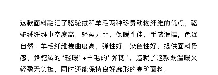 Material Composition Camel Hair 51.9% Sheep Wool 48.1%