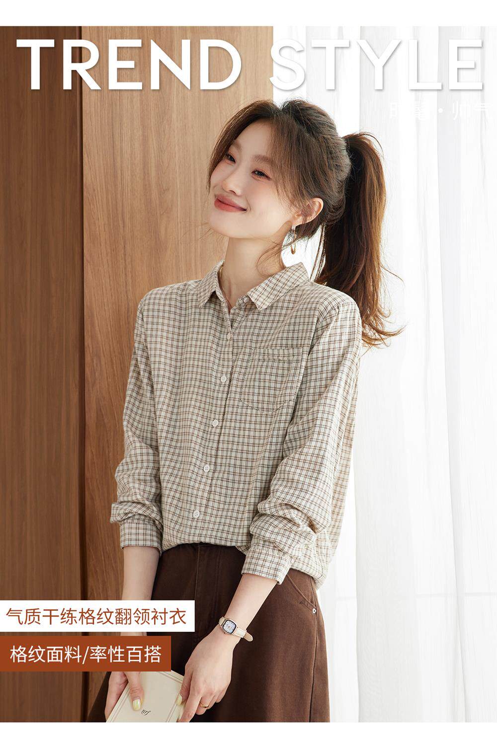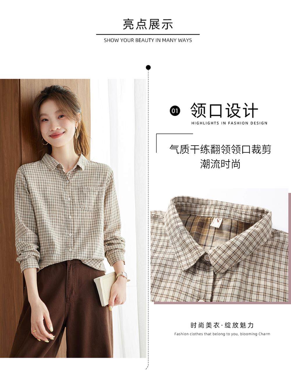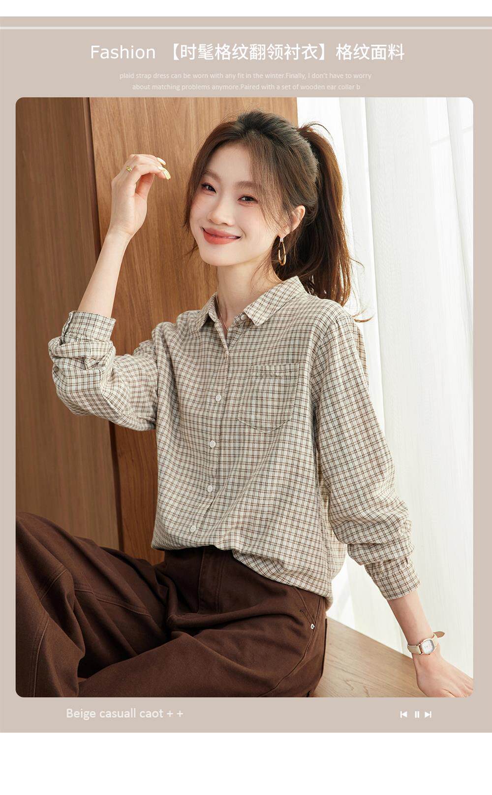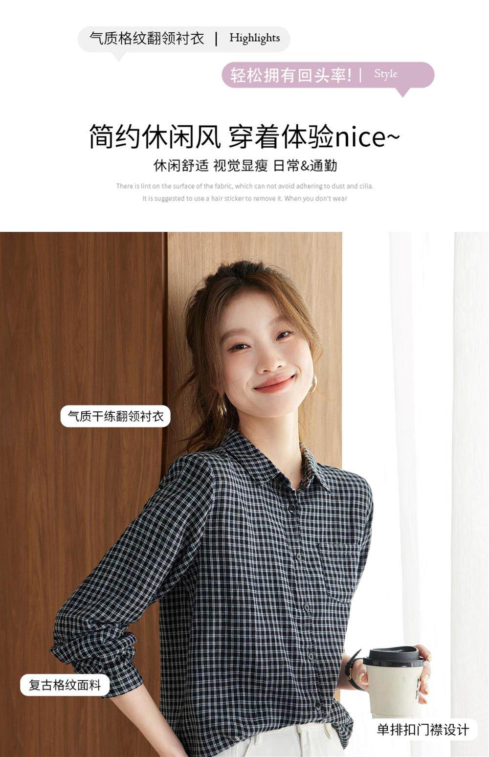 2025 Spring and Autumn New Style Pure Cotton Shirt Women's Plaid Loose Long Sleeve Professional Commuting Shirt Turn-Down Collar Casual Top
