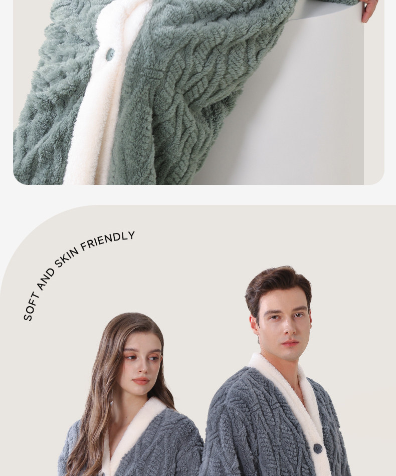Color Classification Gray Female: Comfortable Bathrobe,Green Woman: Velvet Bathrobe,Orange Women: Velvet Bathrobe,Green Man: Velvet Bathrobe,Gray Man: Comfortable Bathrobe
