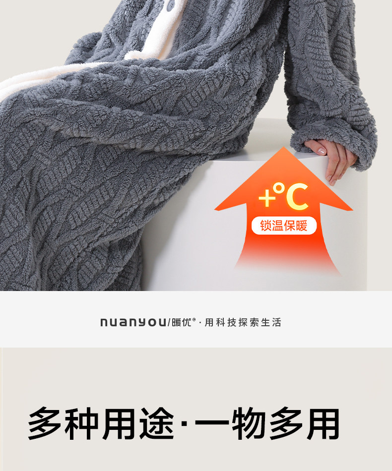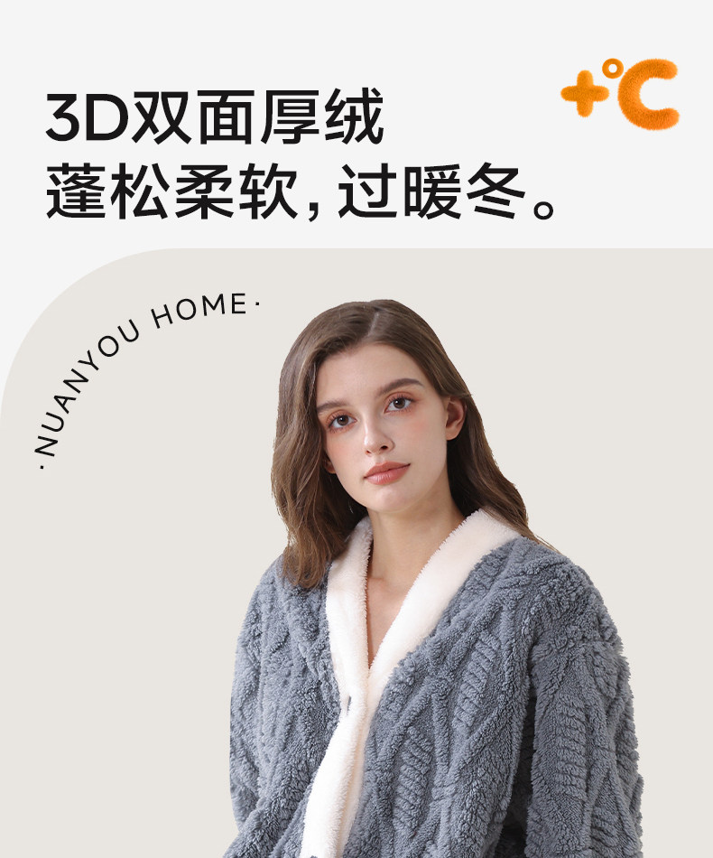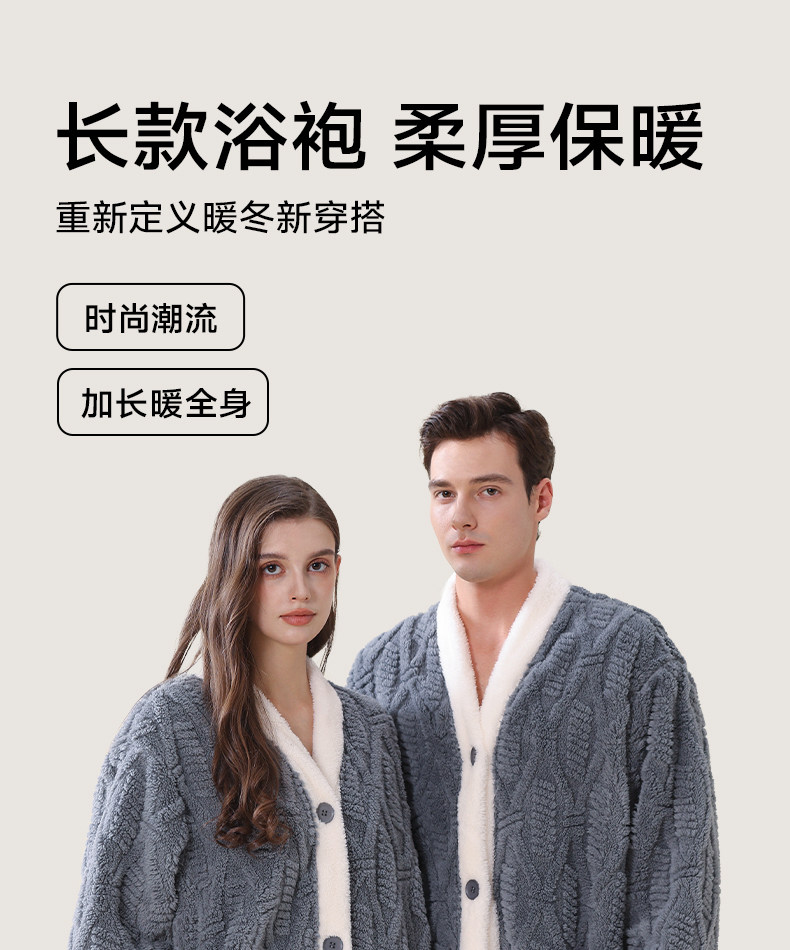 Nuanyou Bathrobe for Men and Women, Long Style for Autumn and Winter, Thick, Water-Absorbent, Quick-Drying, Non-Pure Cotton, Full Cotton, Adult Bathrobe, Sleep Robe 2026