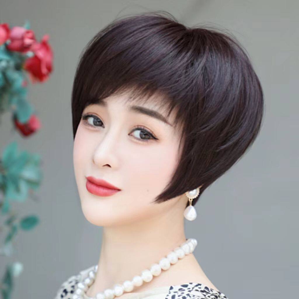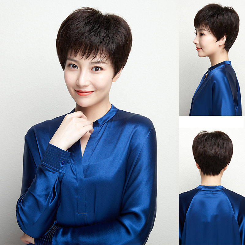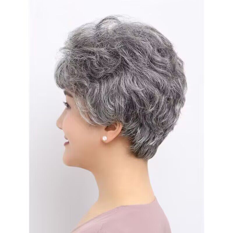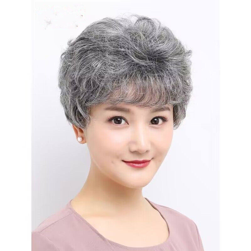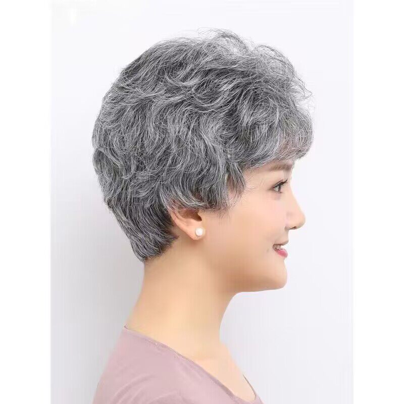 Middle-aged and elderly granny gray wig fluffy flower white old man full head set white old lady stage wig set for women