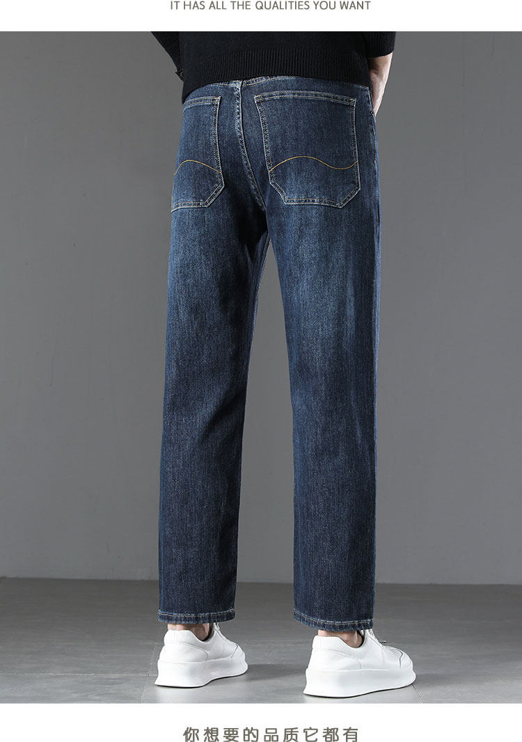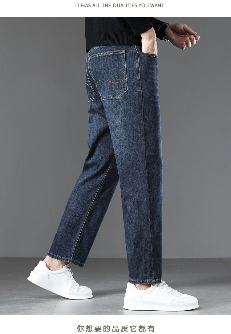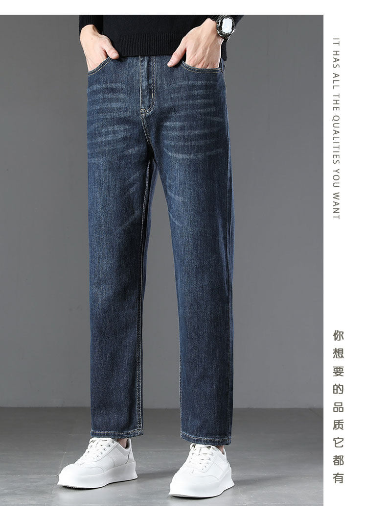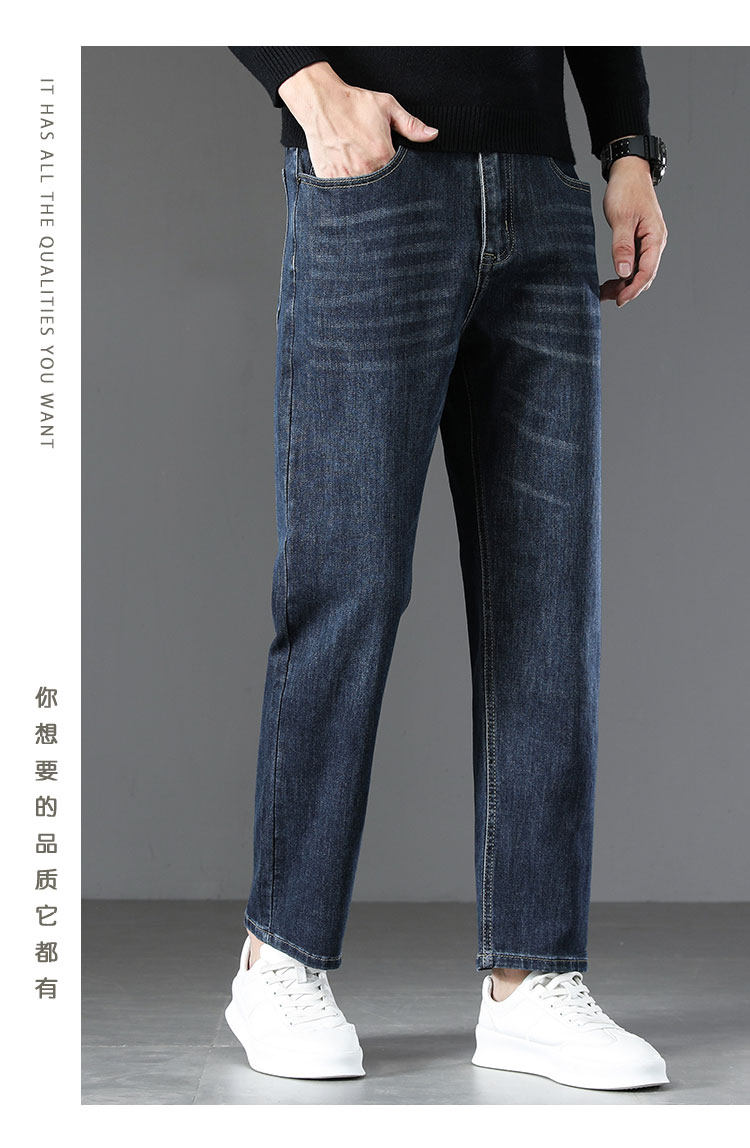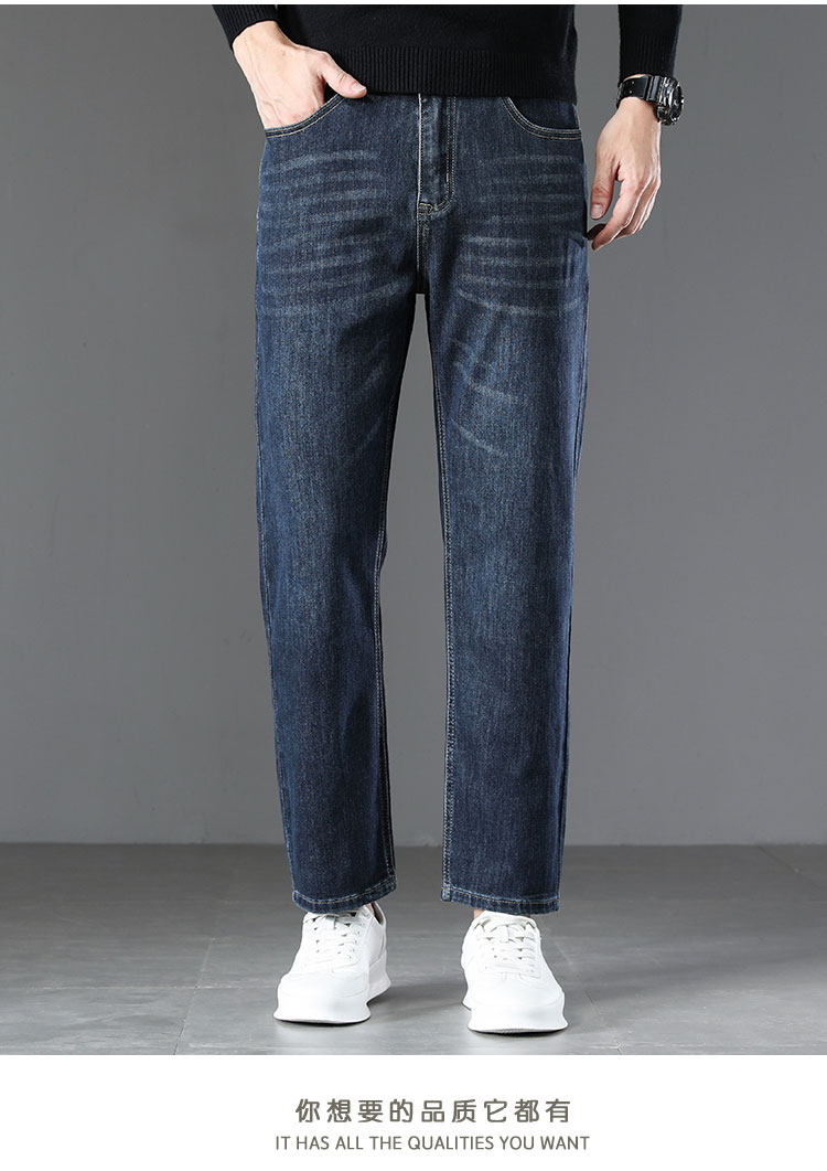 High-end retro velvet nine-point jeans for men 2025 new autumn and winter style loose straight wide-leg stretch pants