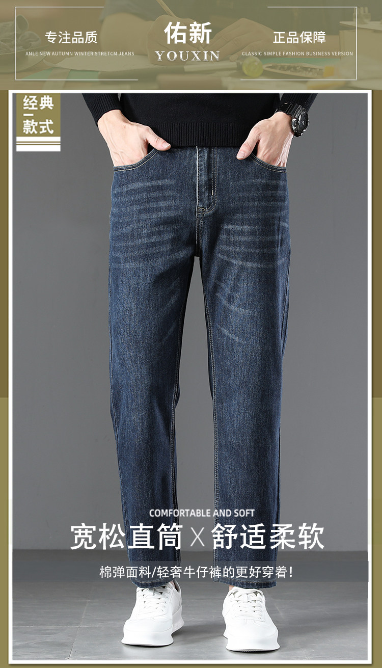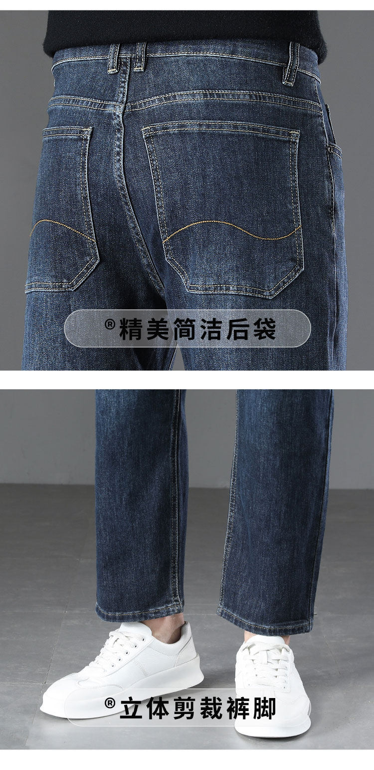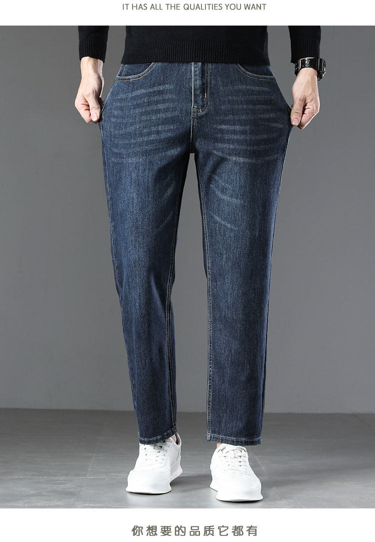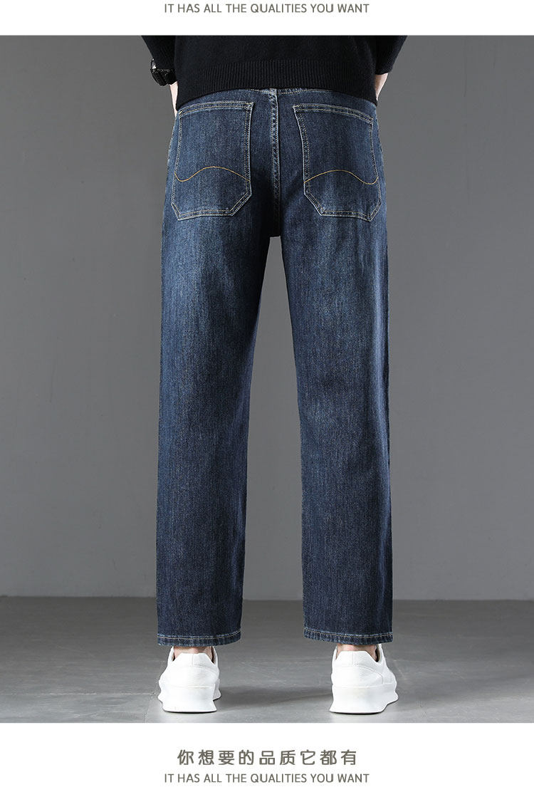 High-end retro velvet nine-point jeans for men 2025 new autumn and winter style loose straight wide-leg stretch pants