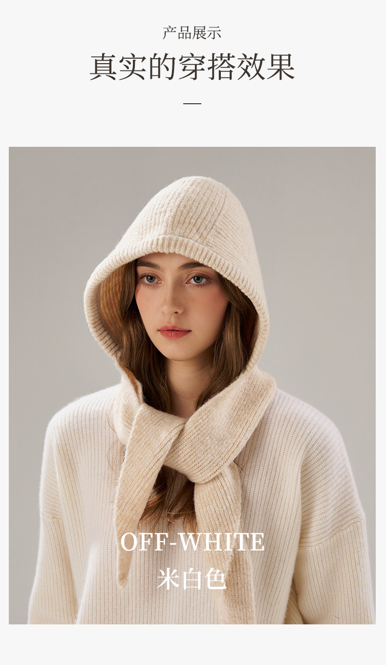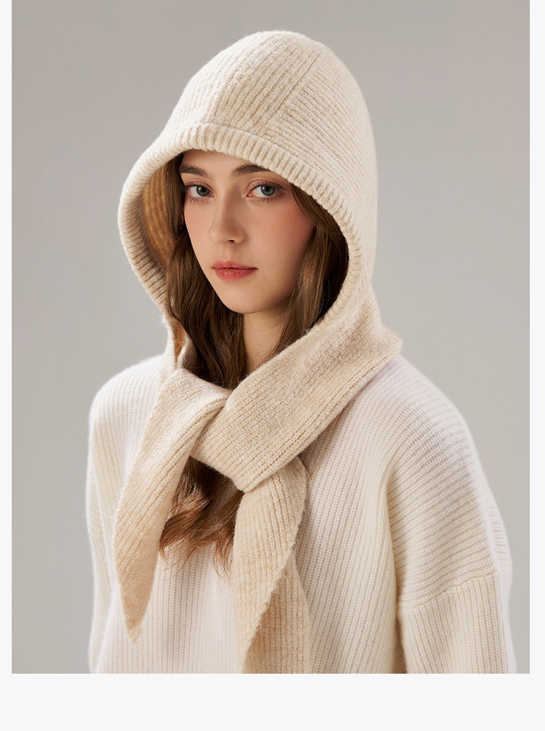 Fhi New Autumn and Winter Balaclava Hat for Women, Warm Scarf Integrated Woolen Knitted Hat, Ear Protection Lei Feng Hat