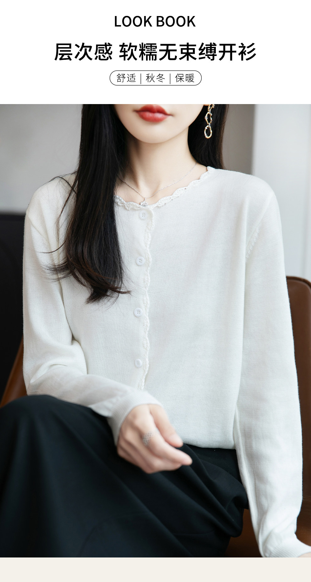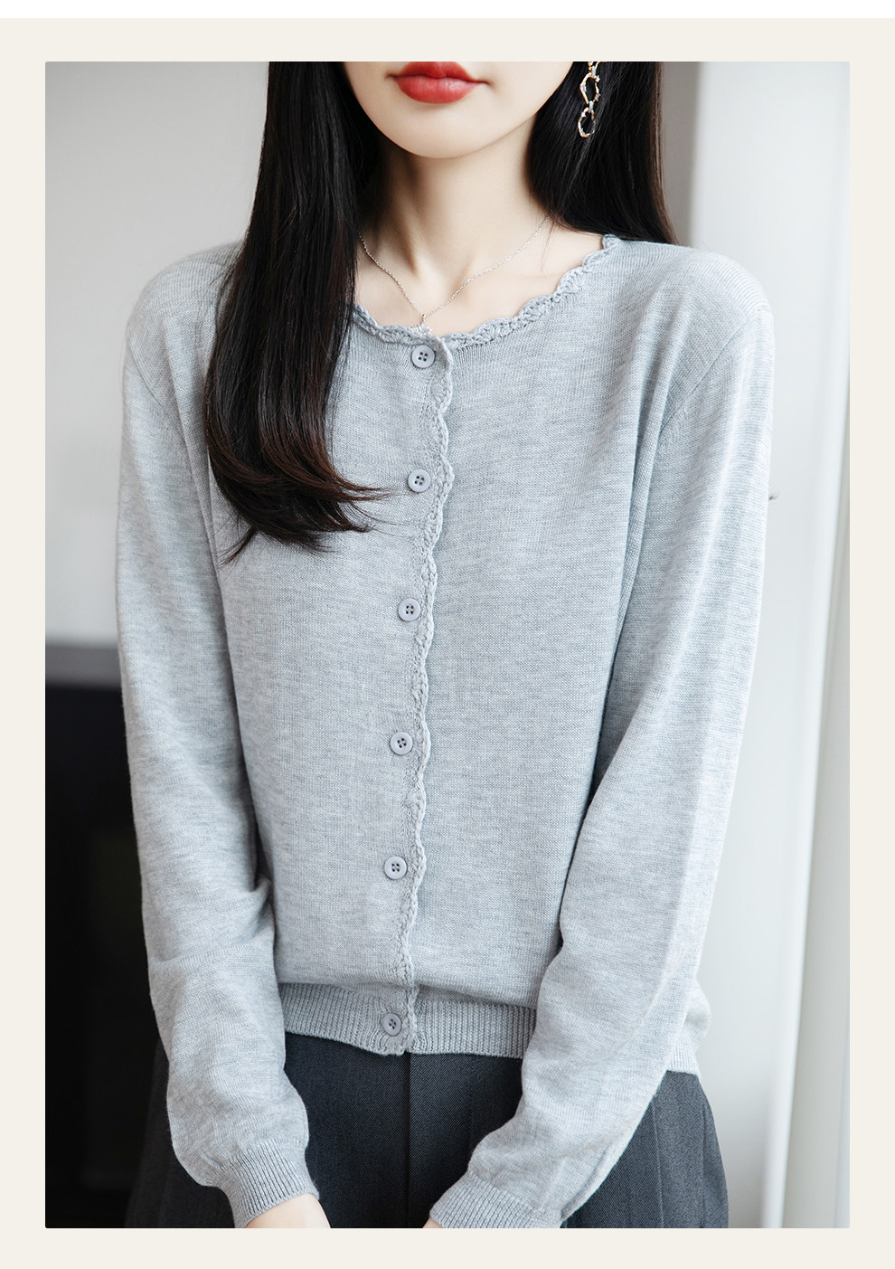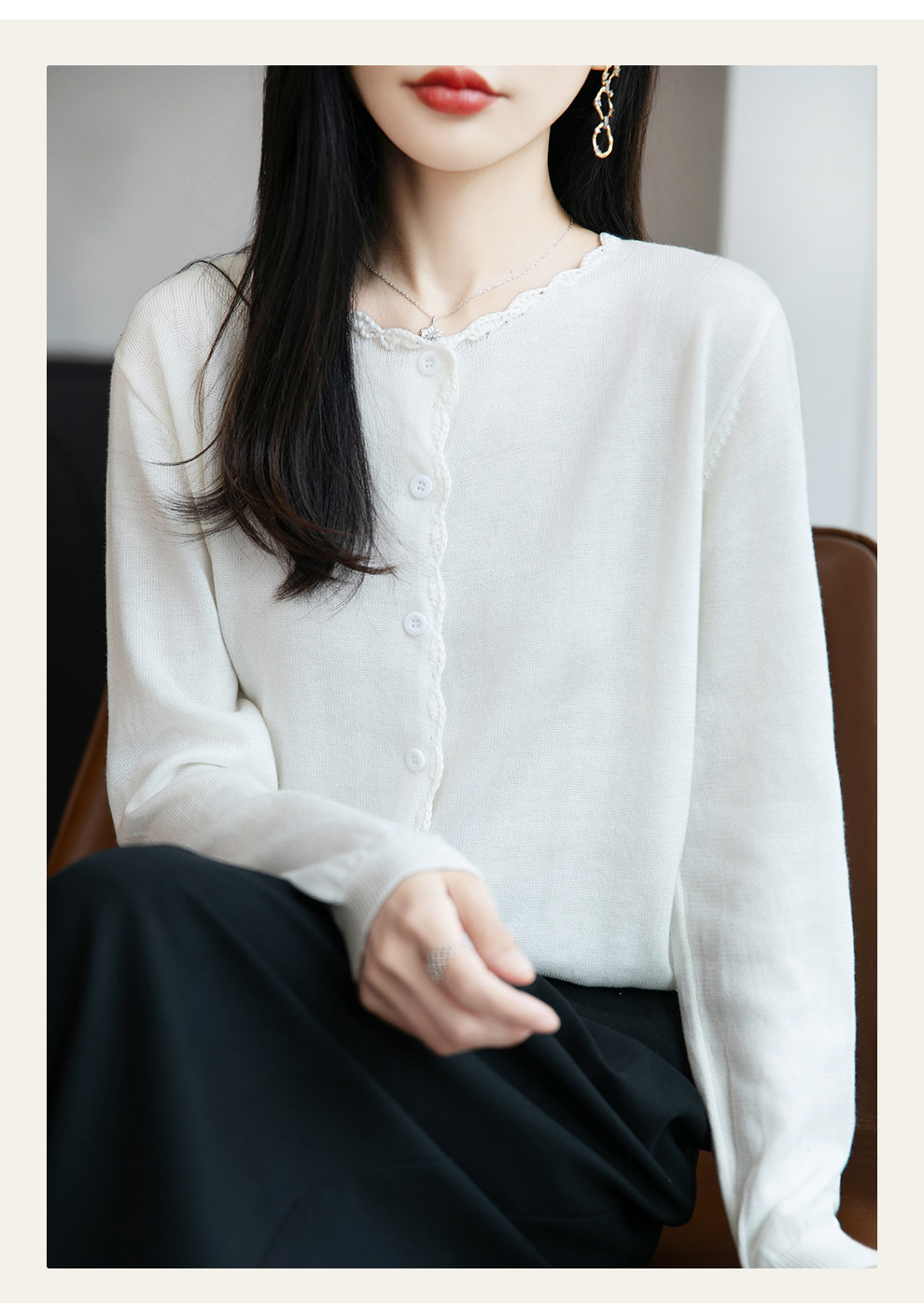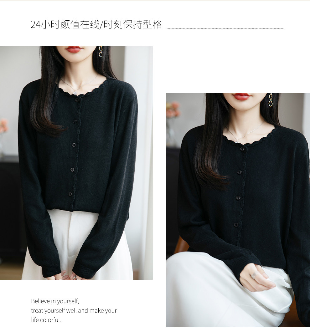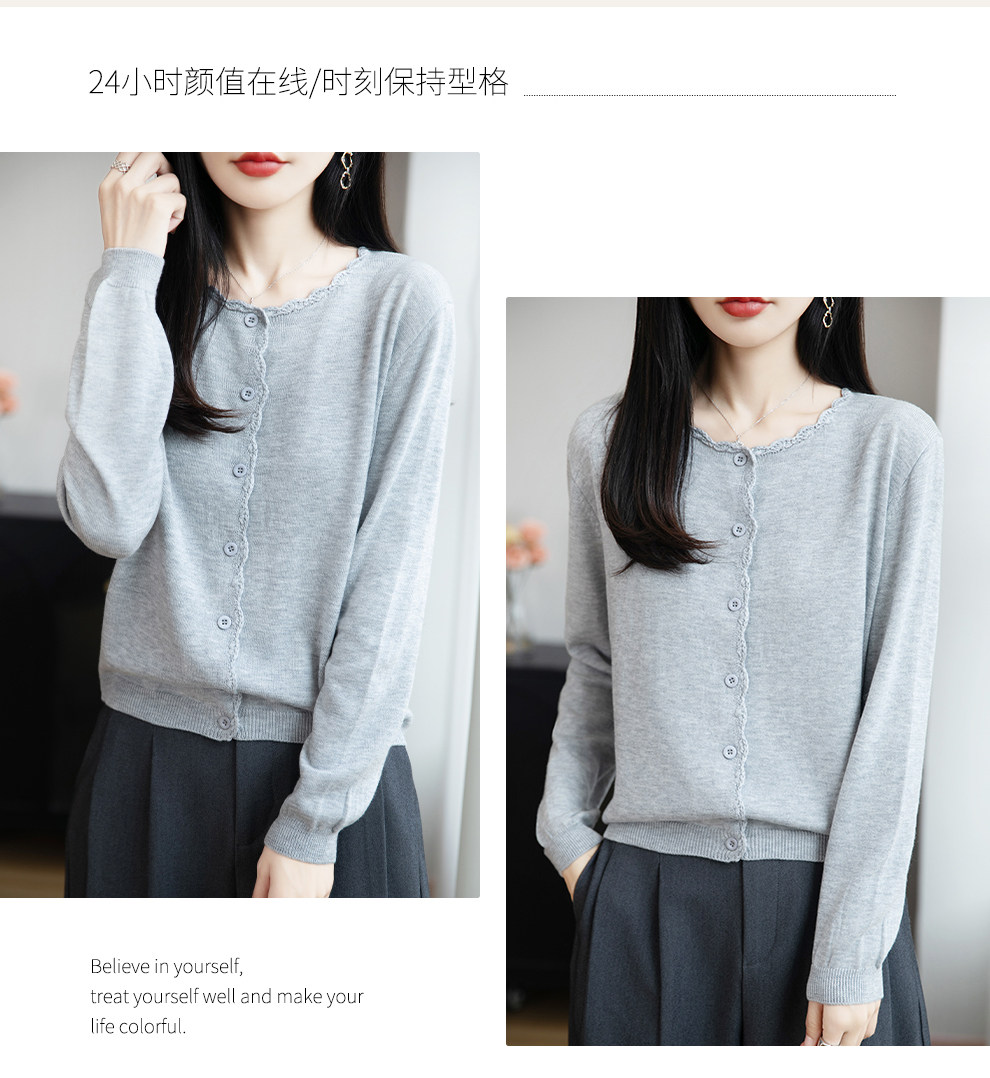 French-Style Lace-Trimmed Fine-Knit Cardigan for Women, Loose-Fitting Thin Sweater, 2026 New Model for Petite Figures