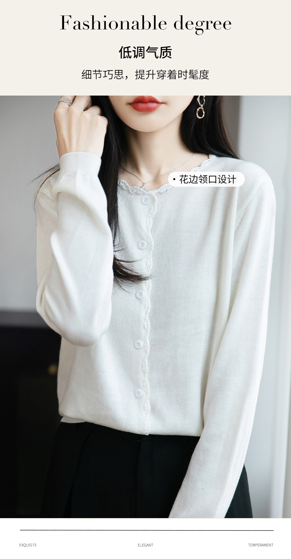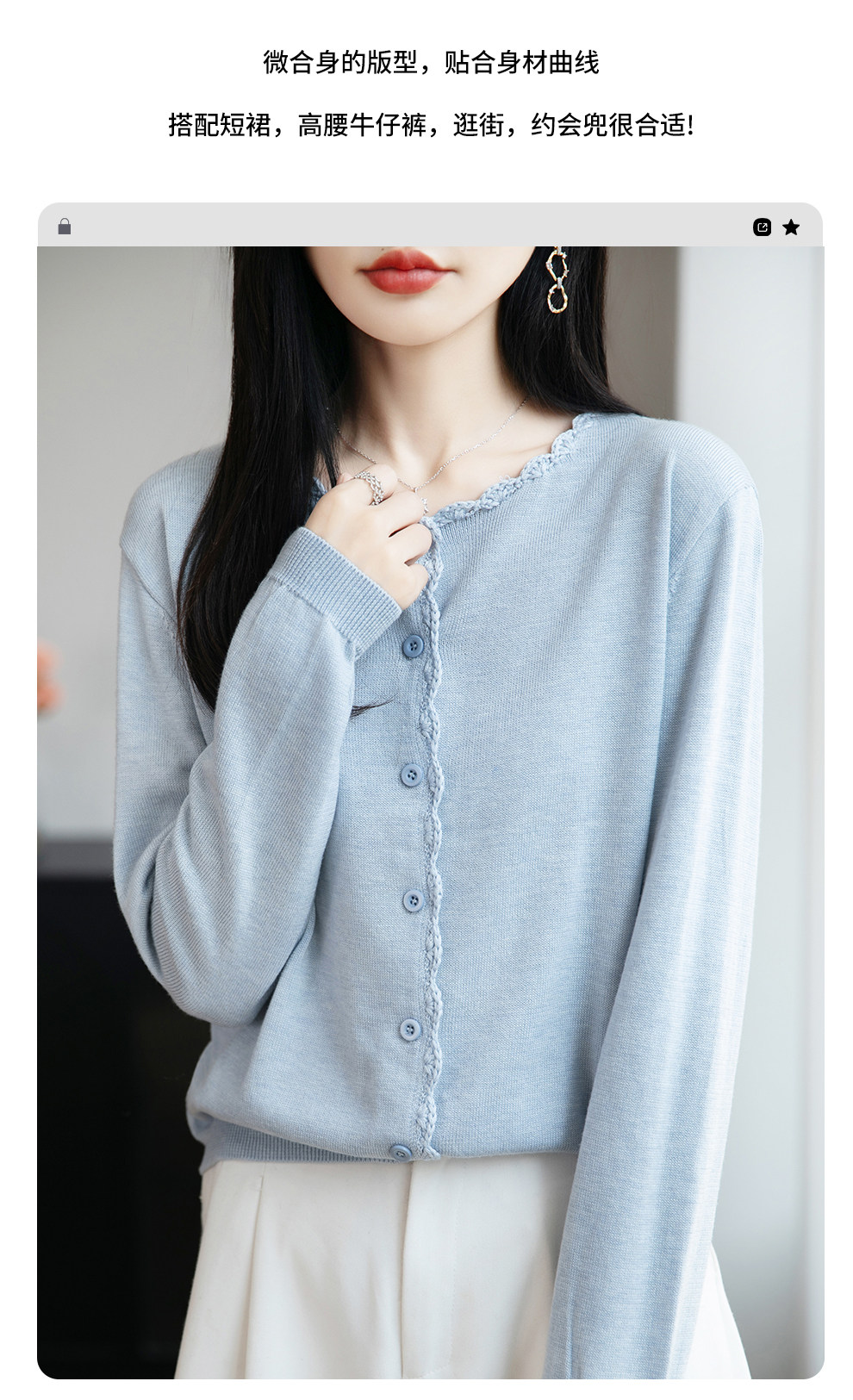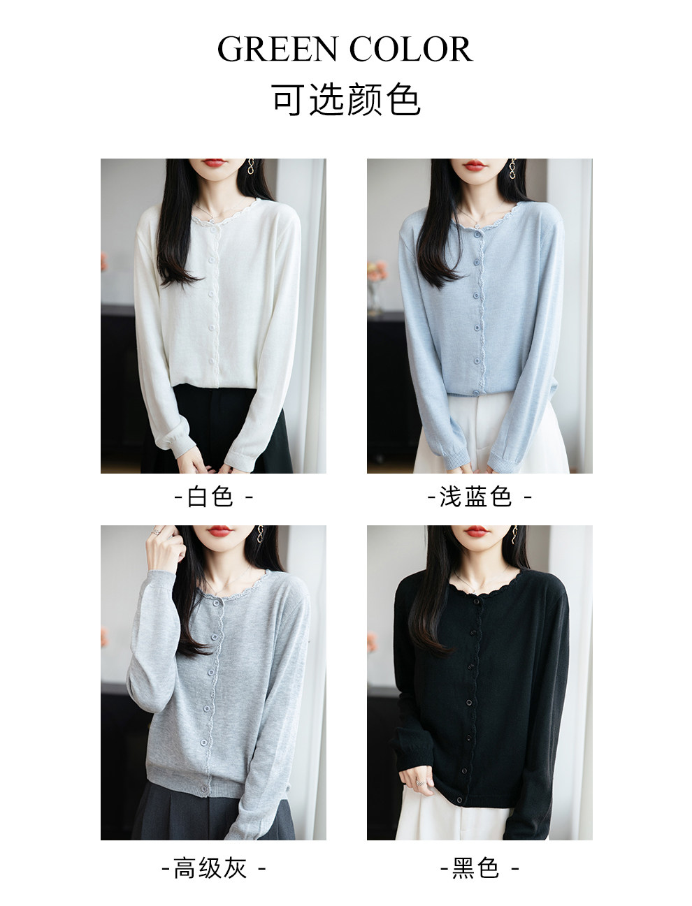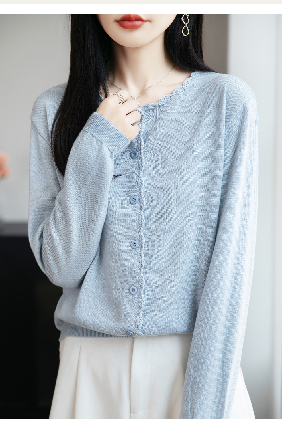 French-Style Lace-Trimmed Fine-Knit Cardigan for Women, Loose-Fitting Thin Sweater, 2026 New Model for Petite Figures