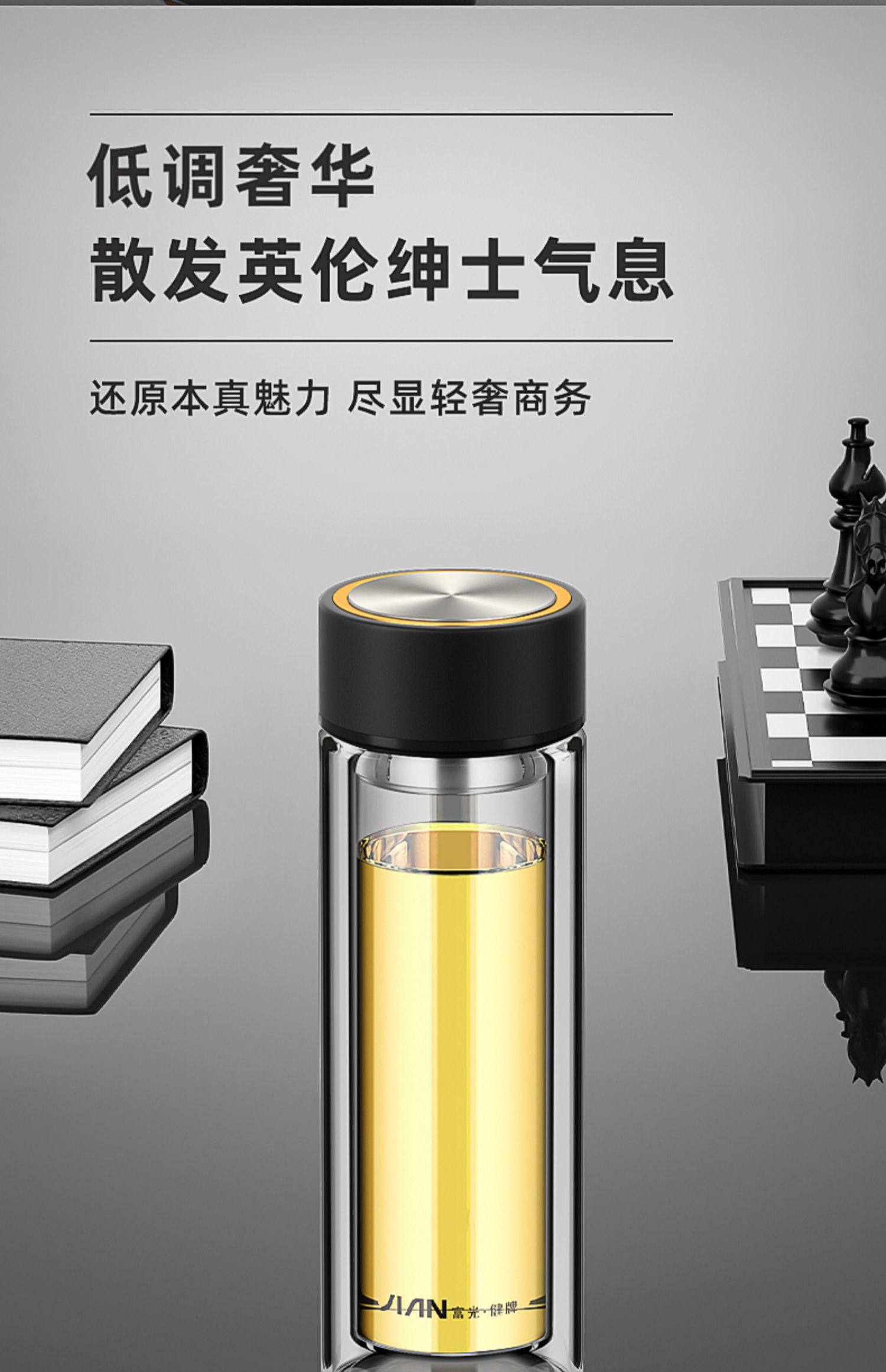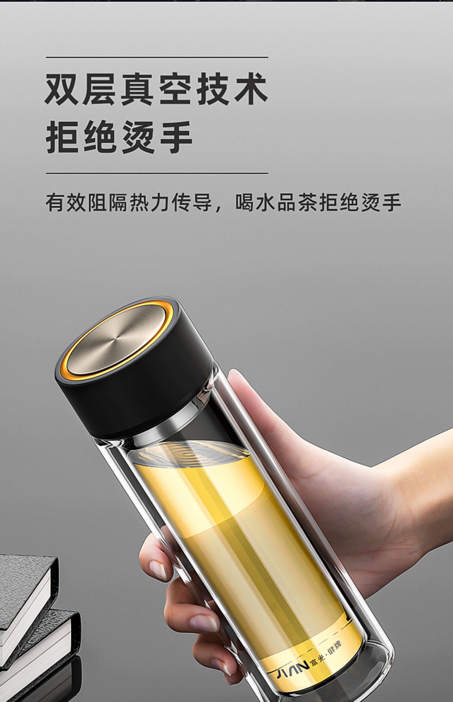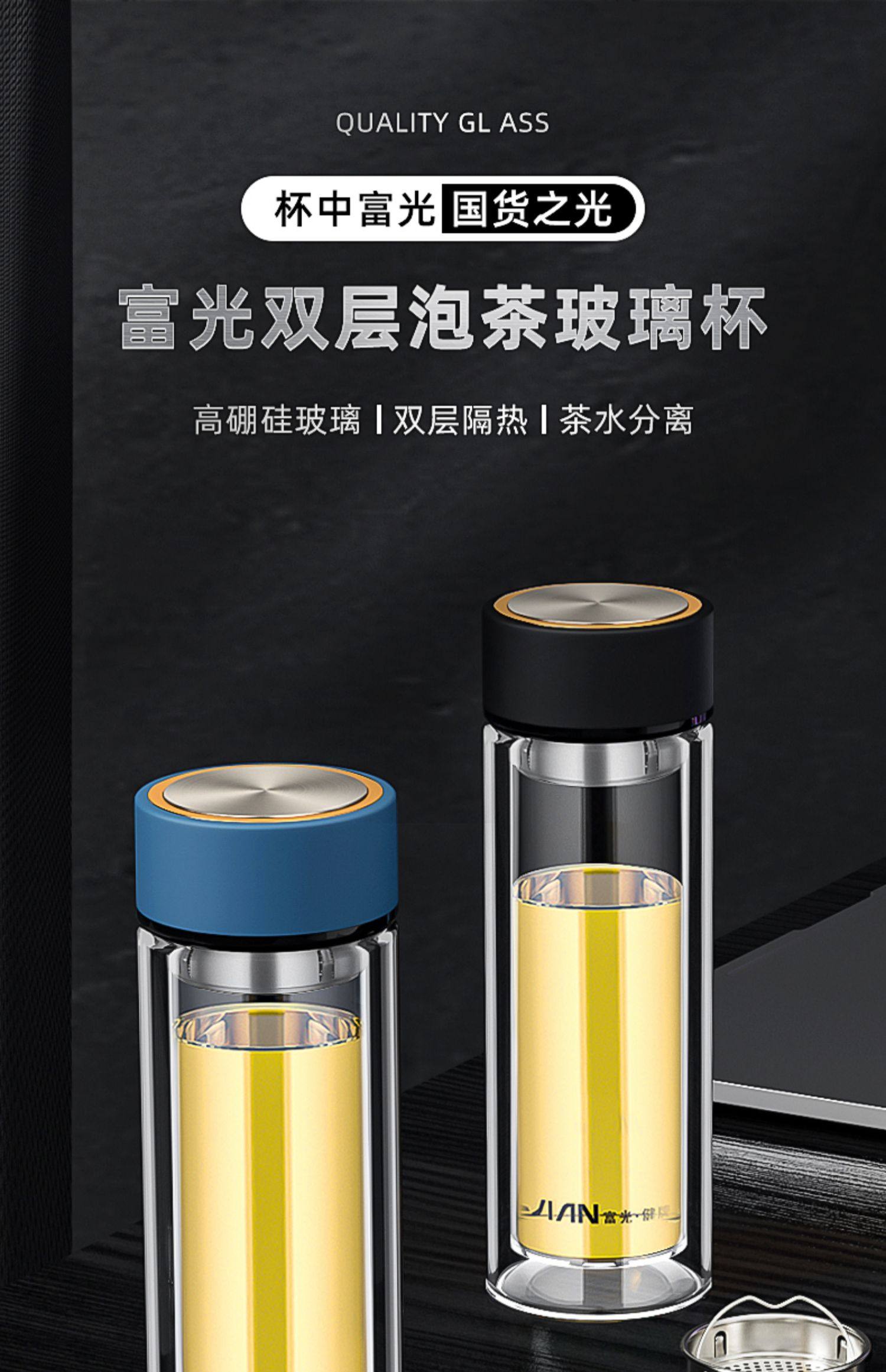 Fuguang Double-Layer Glass Cup for Home Use, Large Capacity, Tea and Water Separation, Portable Transparent Cup with Lid for Men and Women