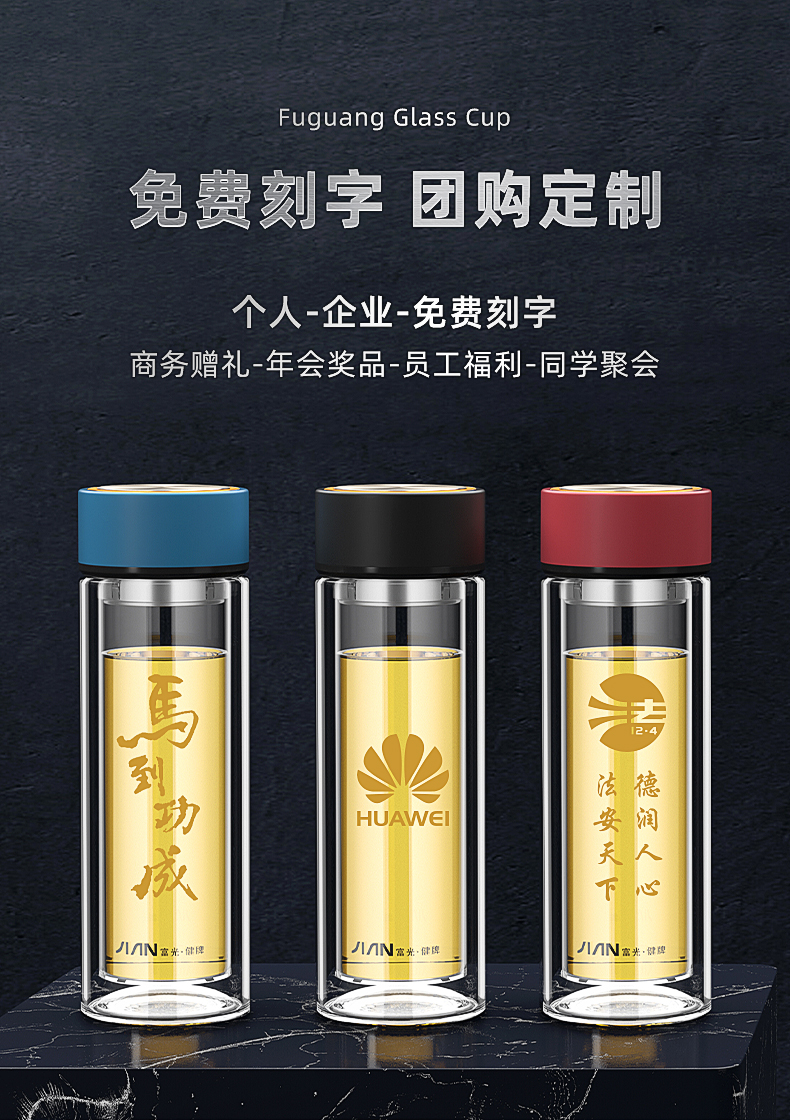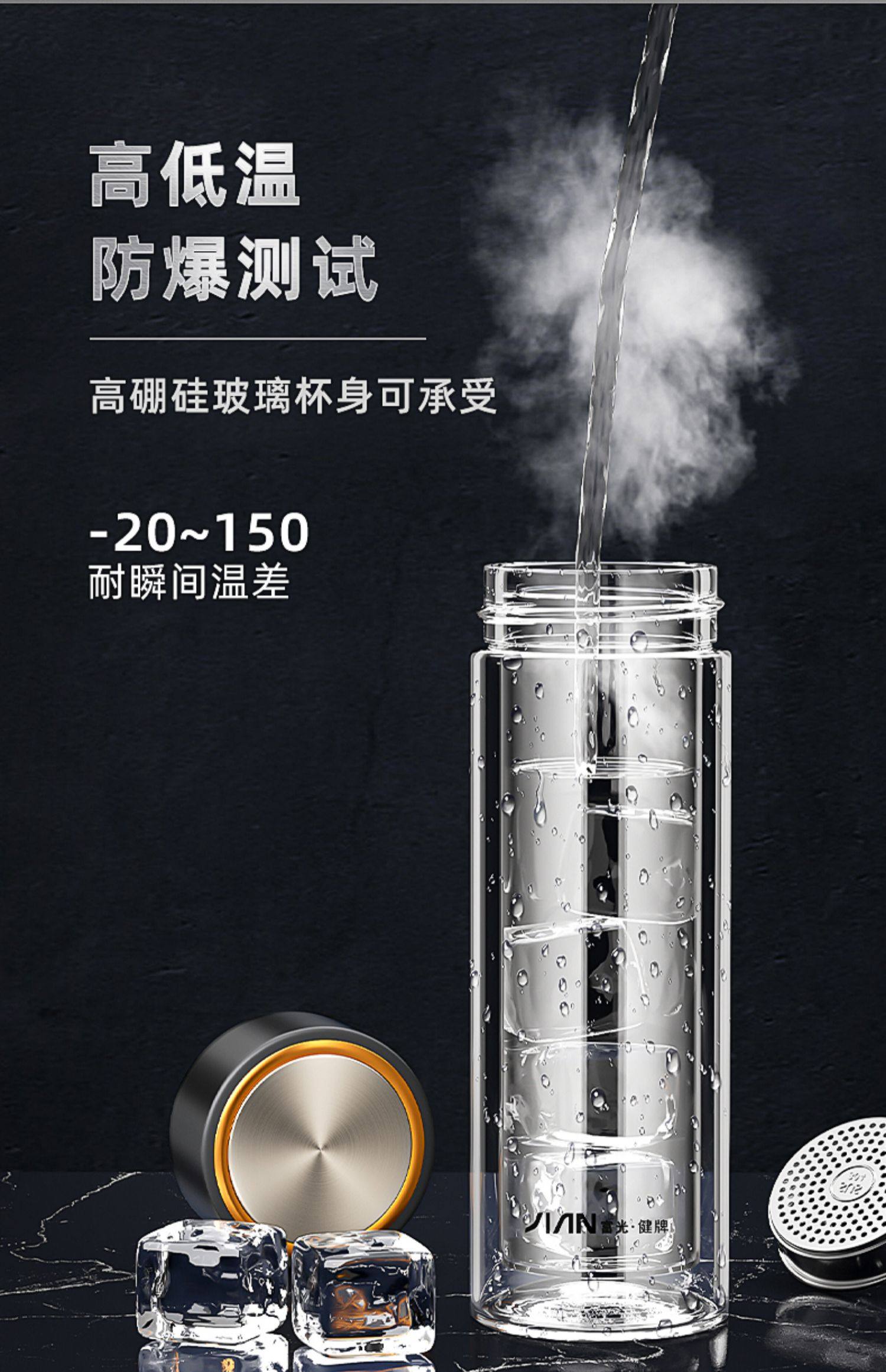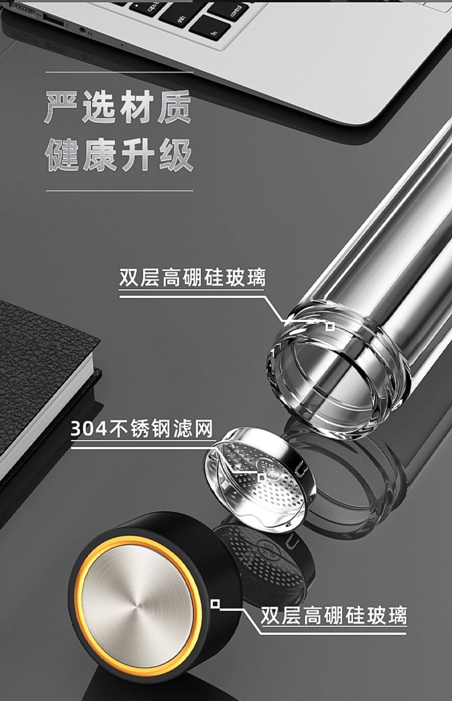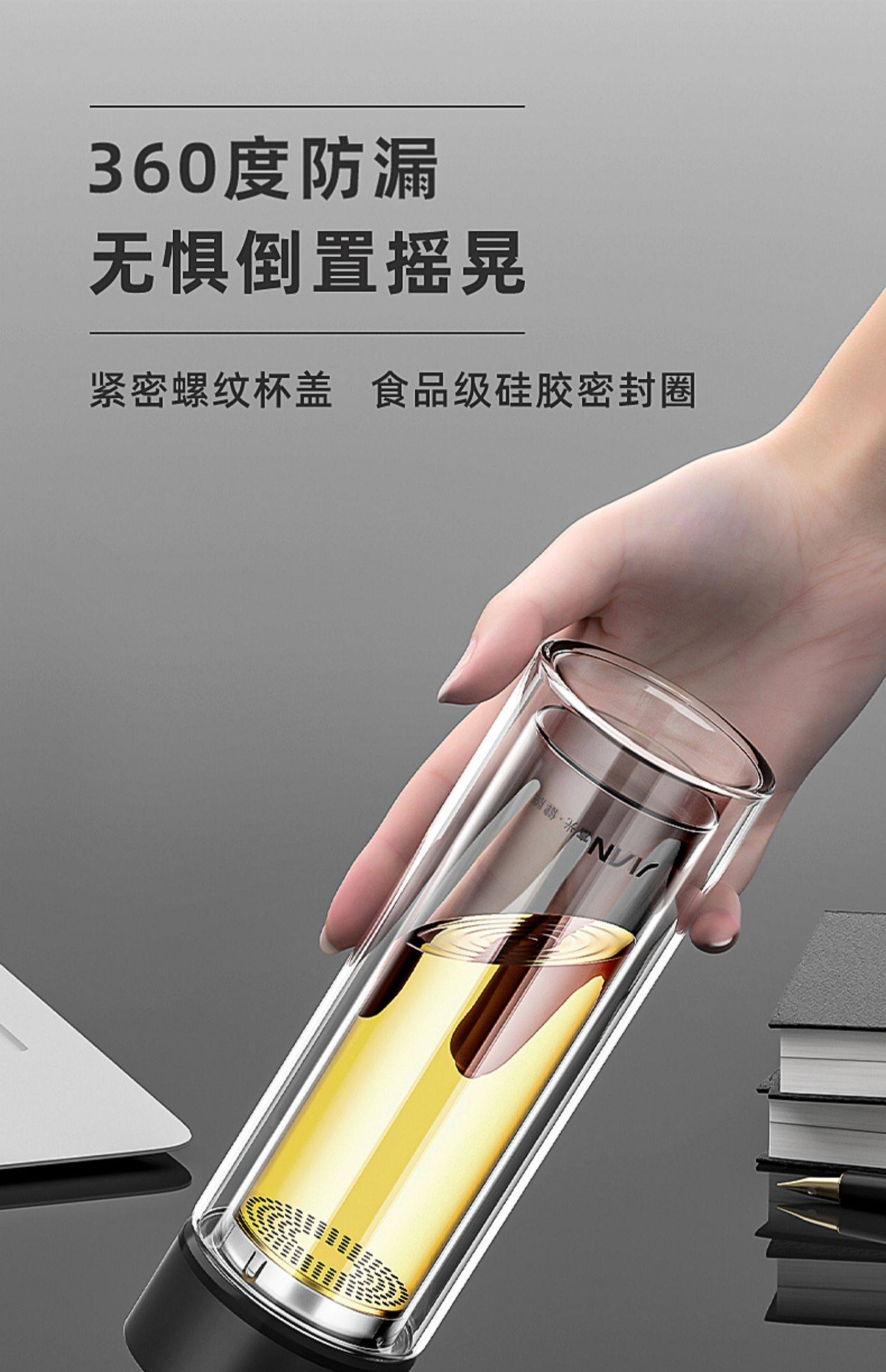 Fuguang Double-Layer Glass Cup for Home Use, Large Capacity, Tea and Water Separation, Portable Transparent Cup with Lid for Men and Women