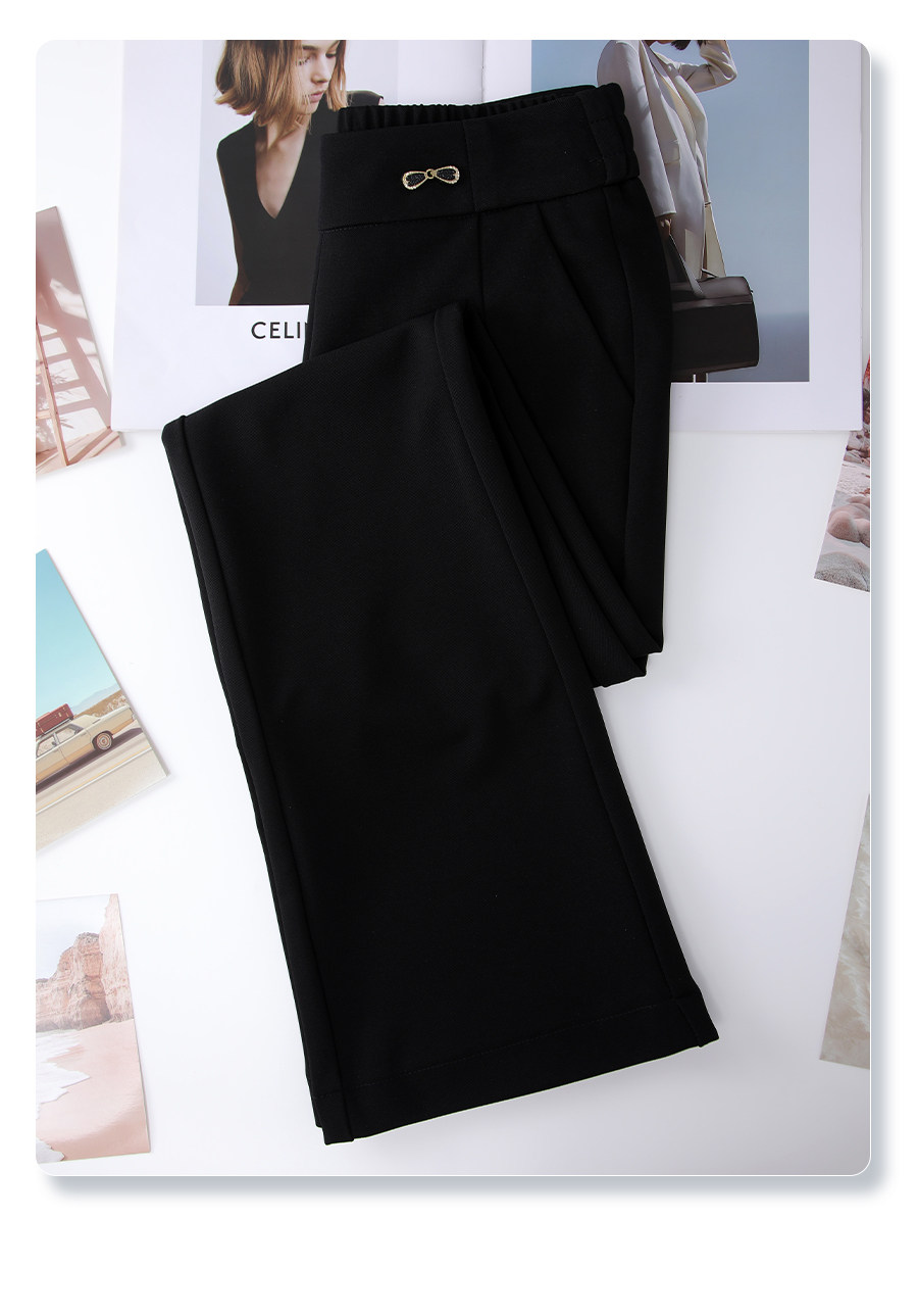 Black suit boot-cut trousers for women 2025 new autumn high-waisted, slim, slim, drapey, horseshoe-flared trousers for small people