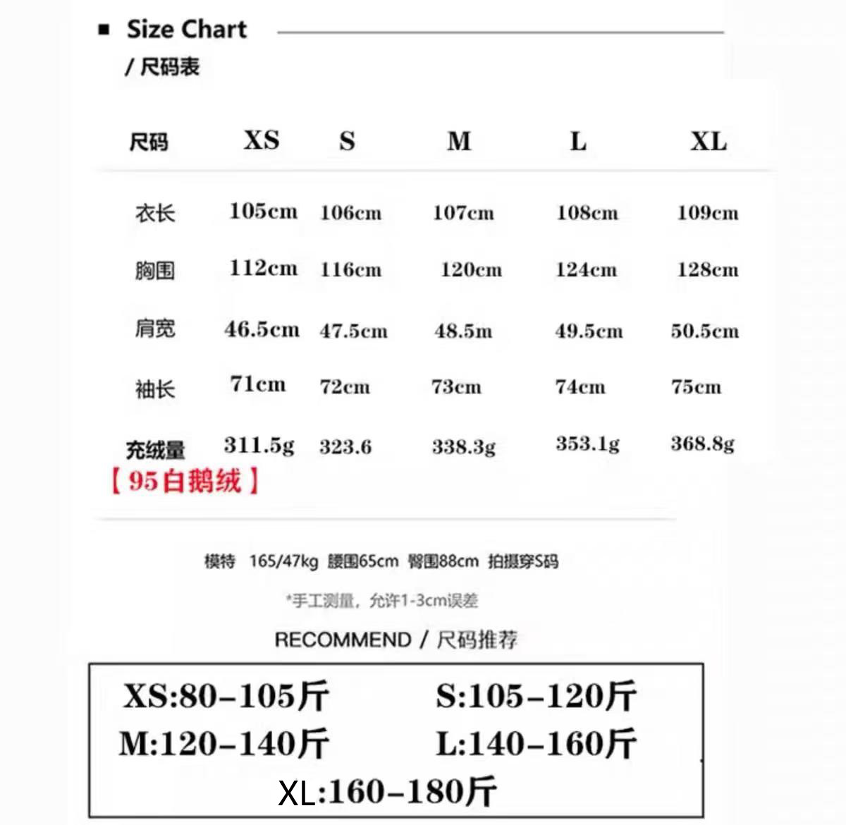 China (cm) 160-165/84-86 165-170 / 88-90 167-172 / 92-96 168-173 / 98-102 170-176 / 106-110