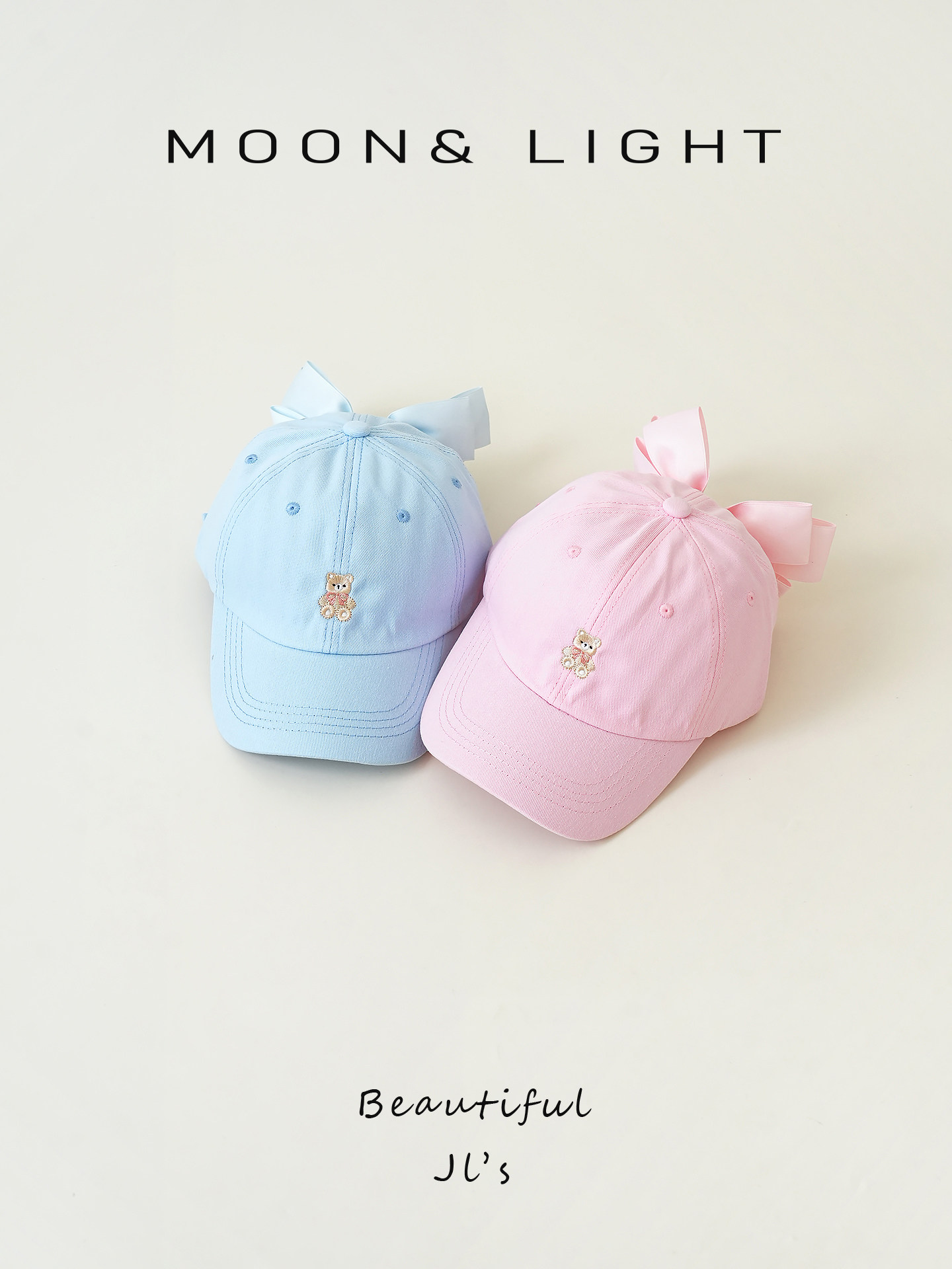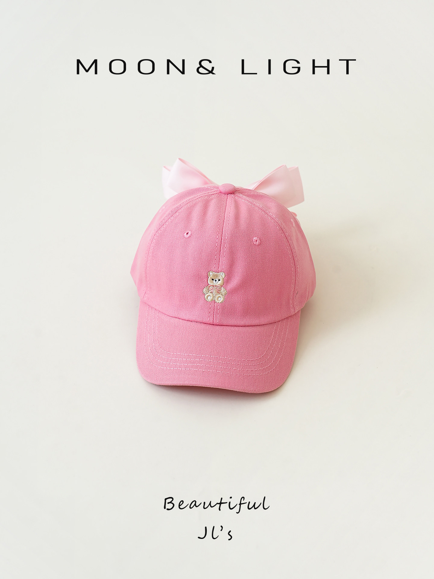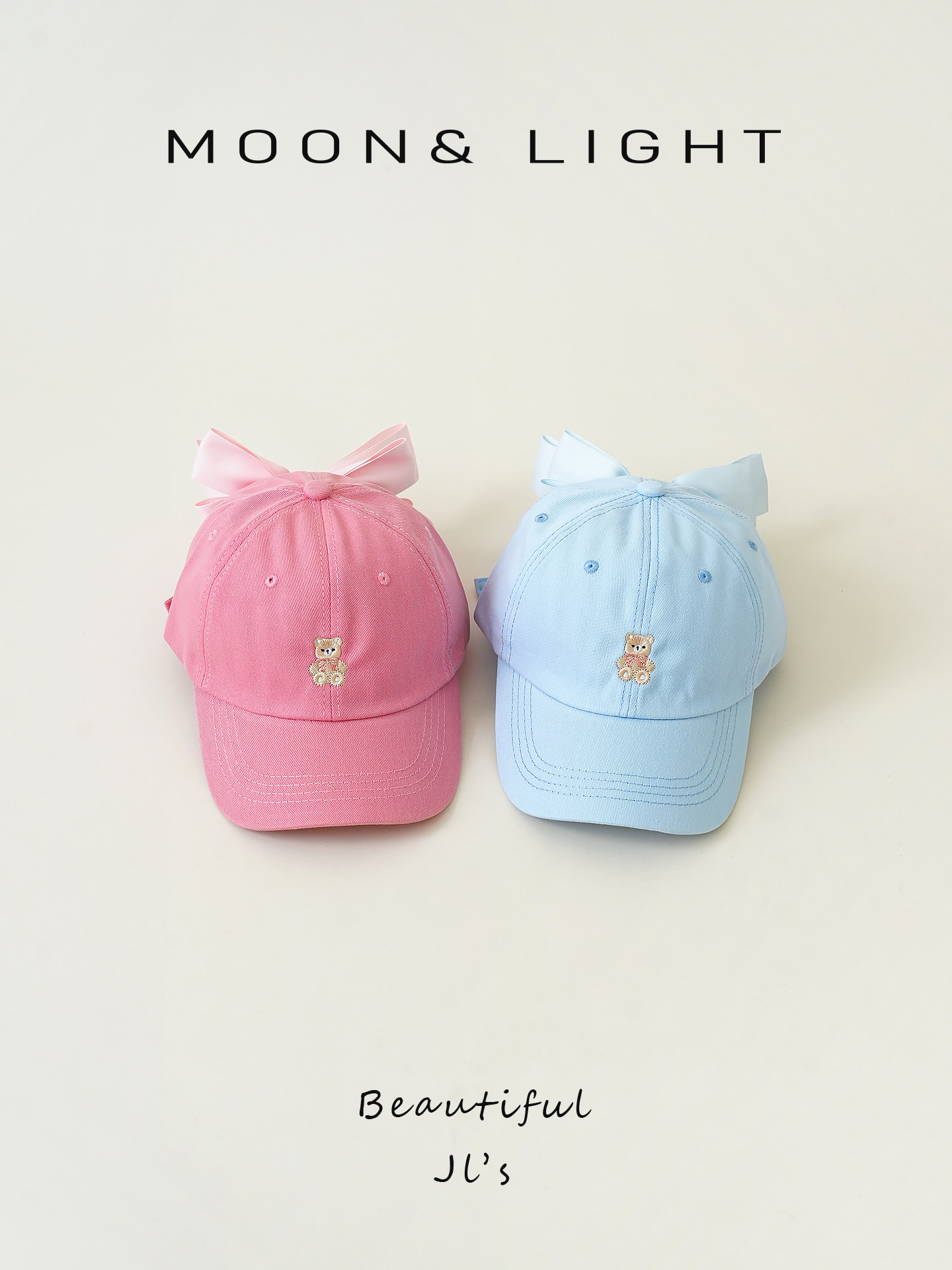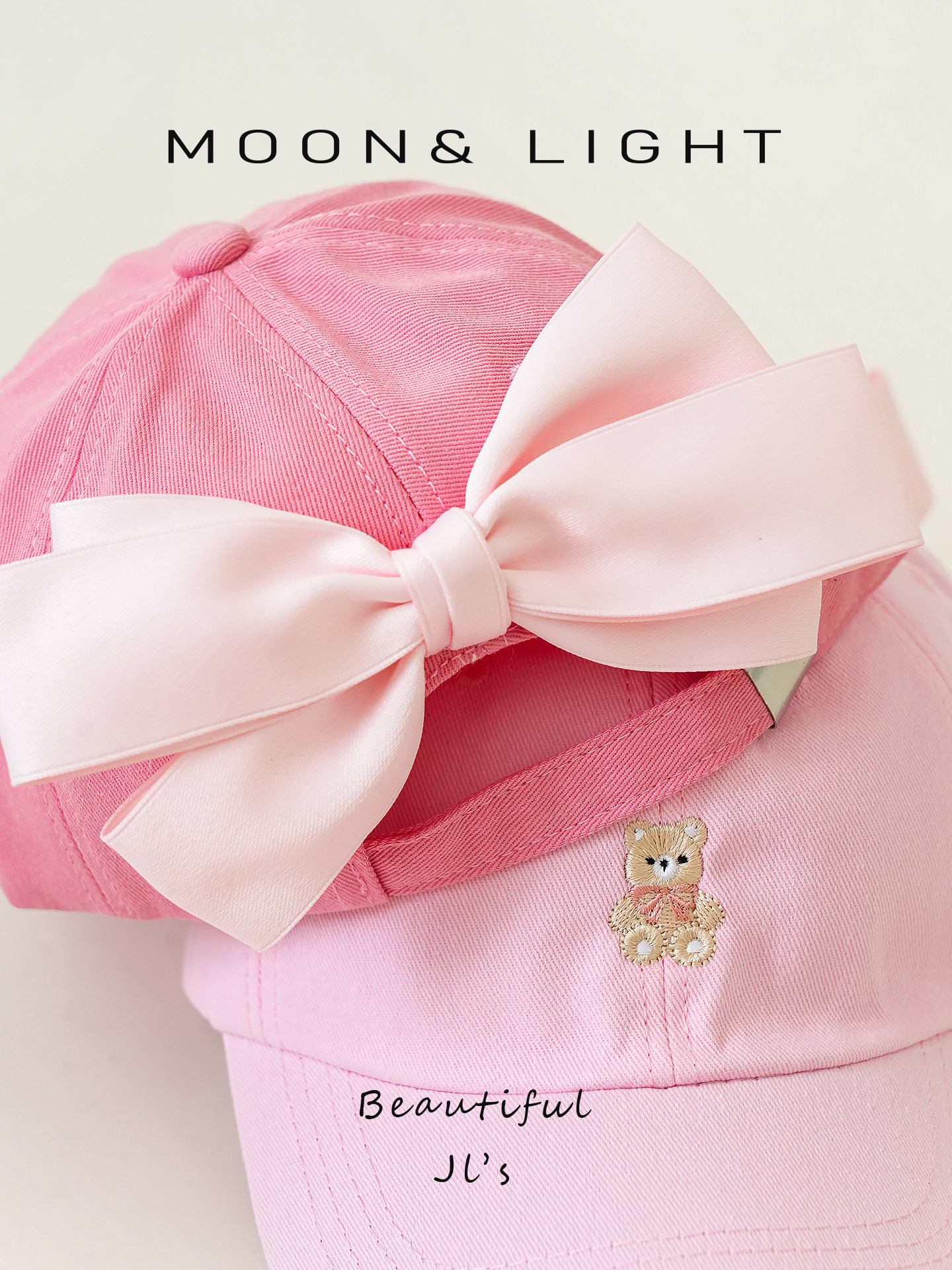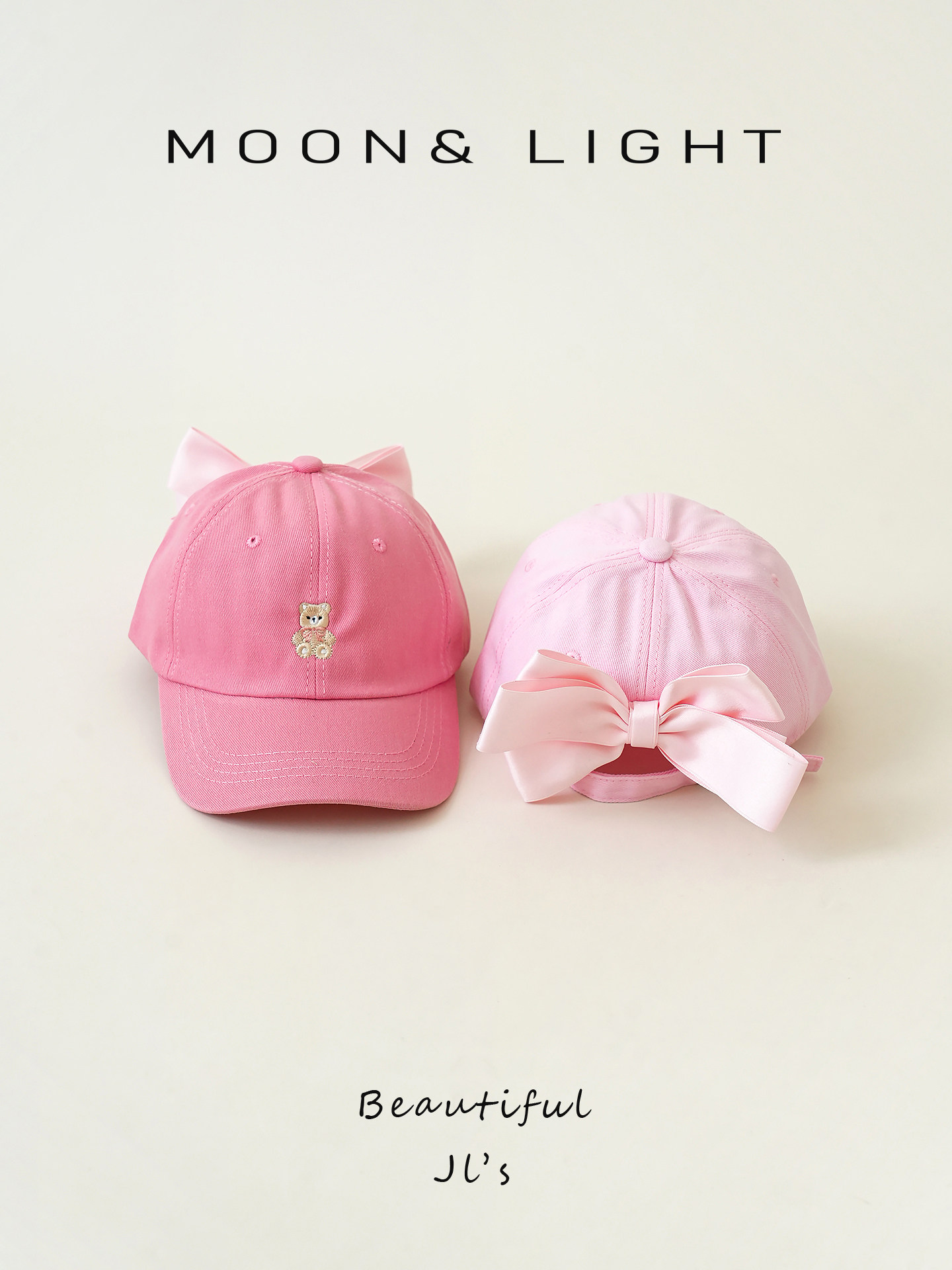 Children's baseball cap with big bow in spring and autumn sweet bear embroidery baby label girls hat peaked cap