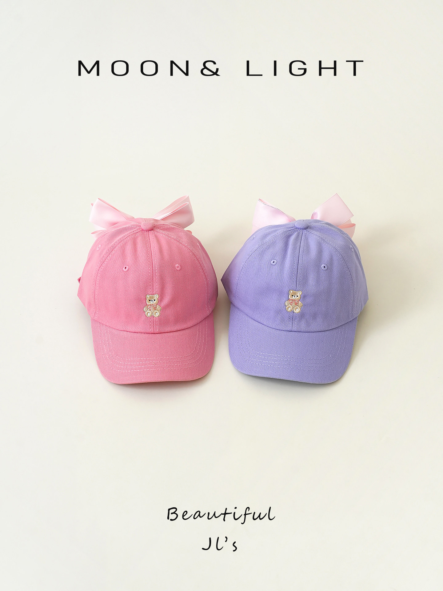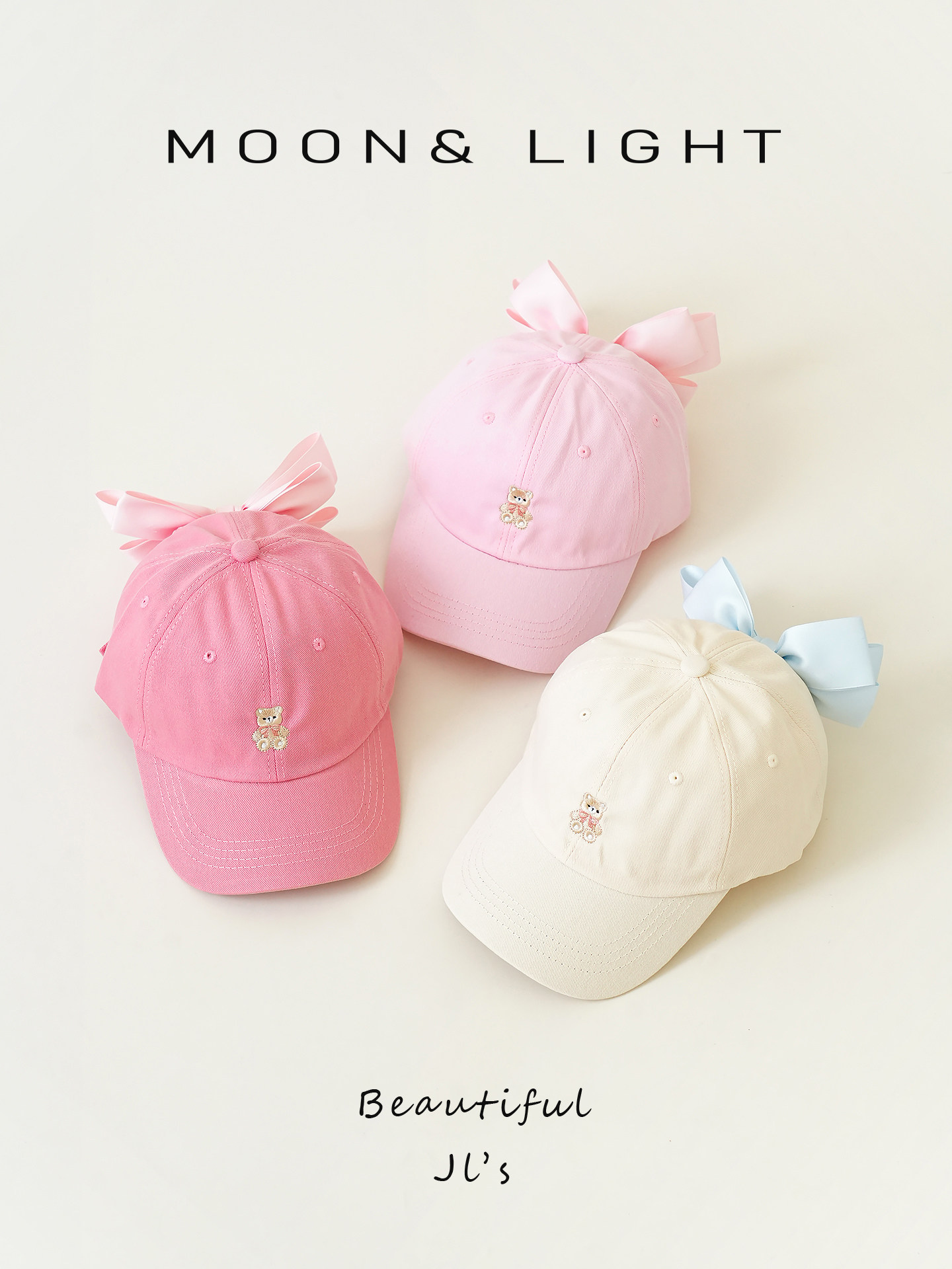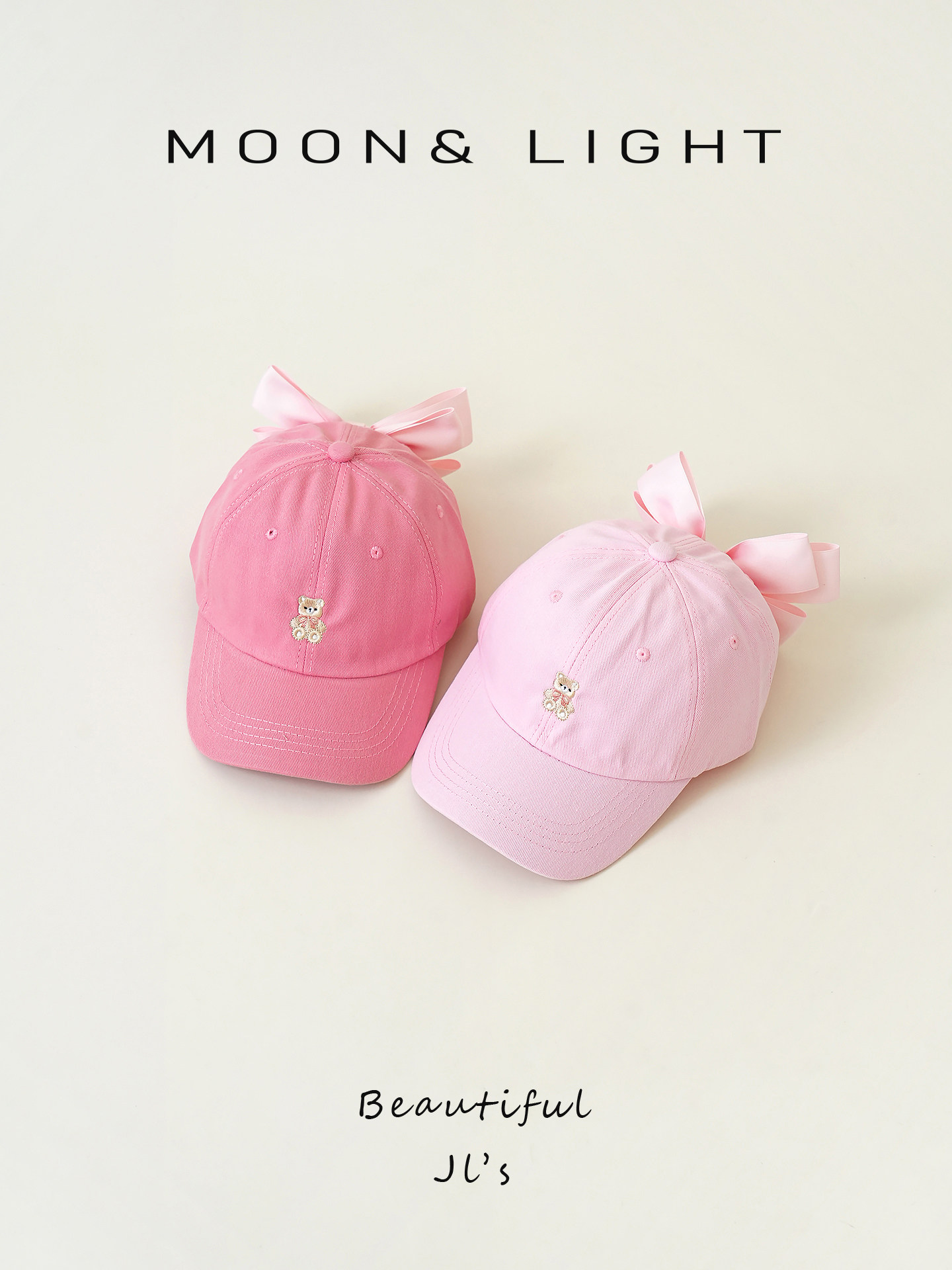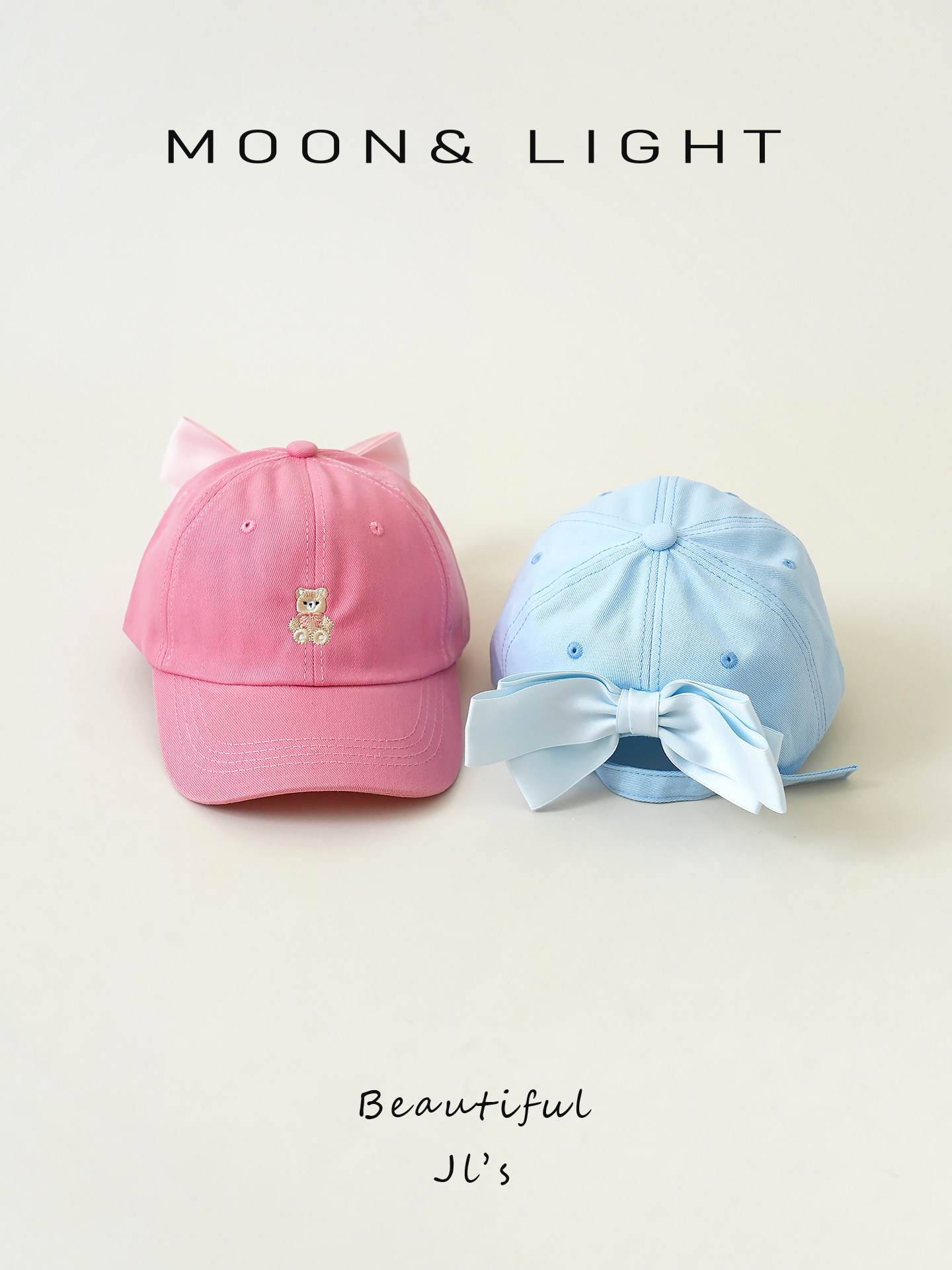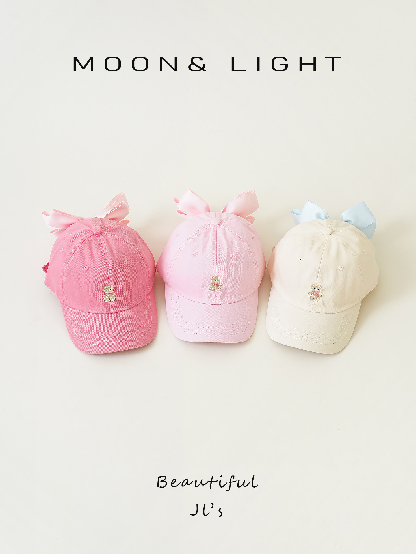 Children's baseball cap with big bow in spring and autumn sweet bear embroidery baby label girls hat peaked cap