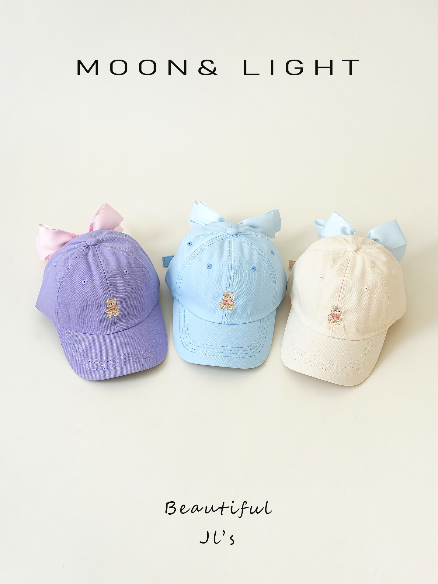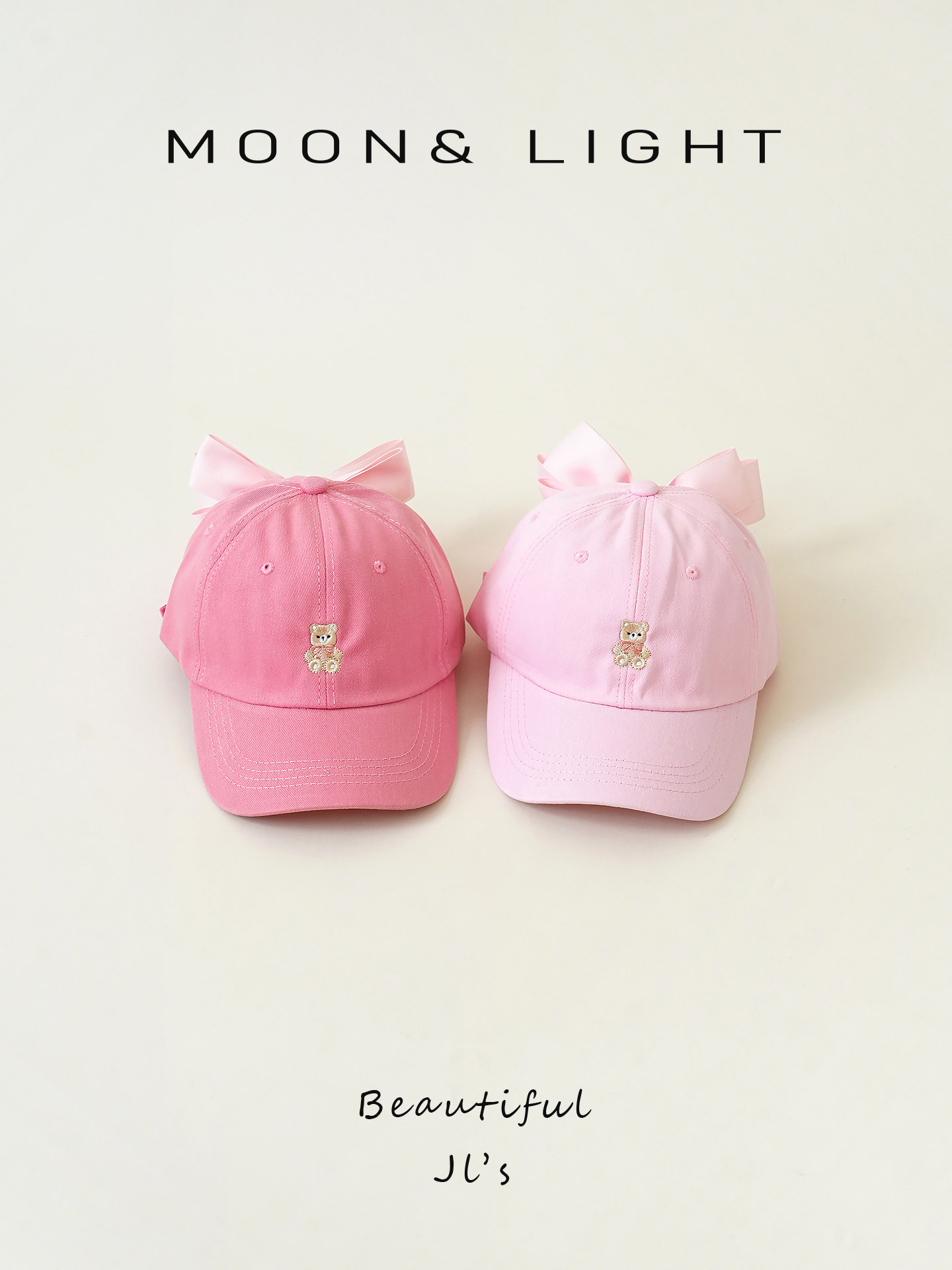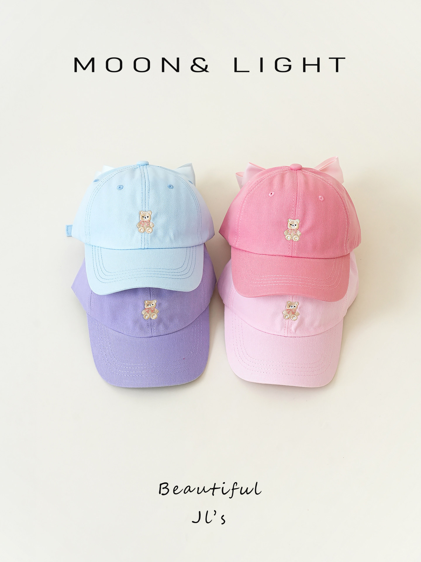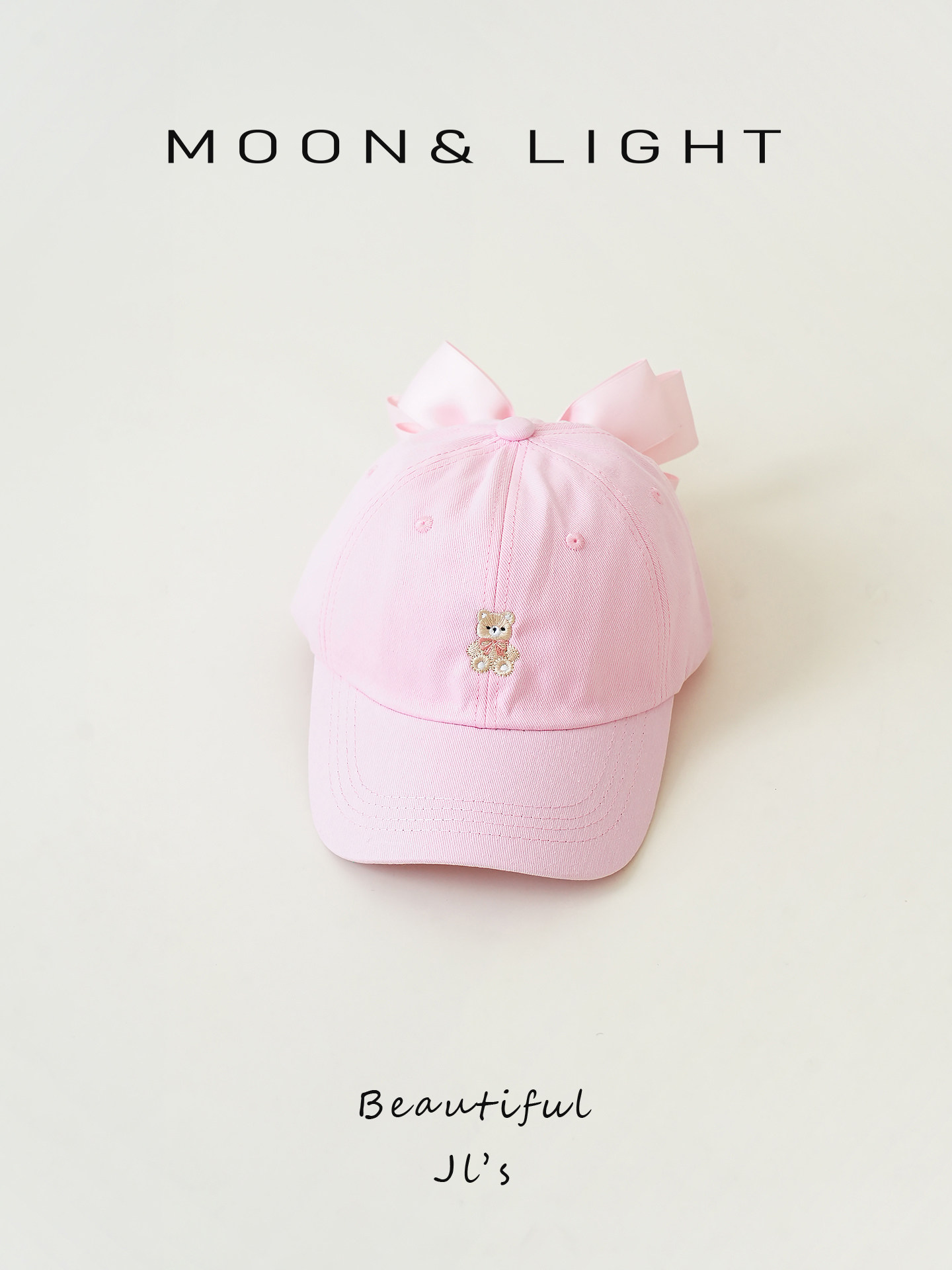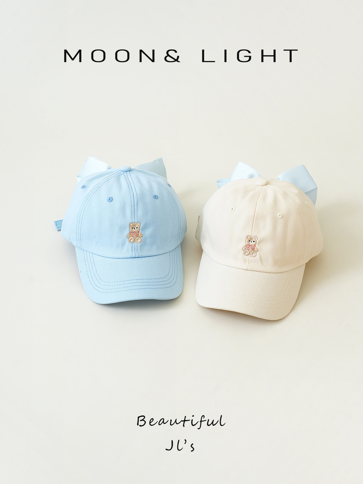 Children's baseball cap with big bow in spring and autumn sweet bear embroidery baby label girls hat peaked cap