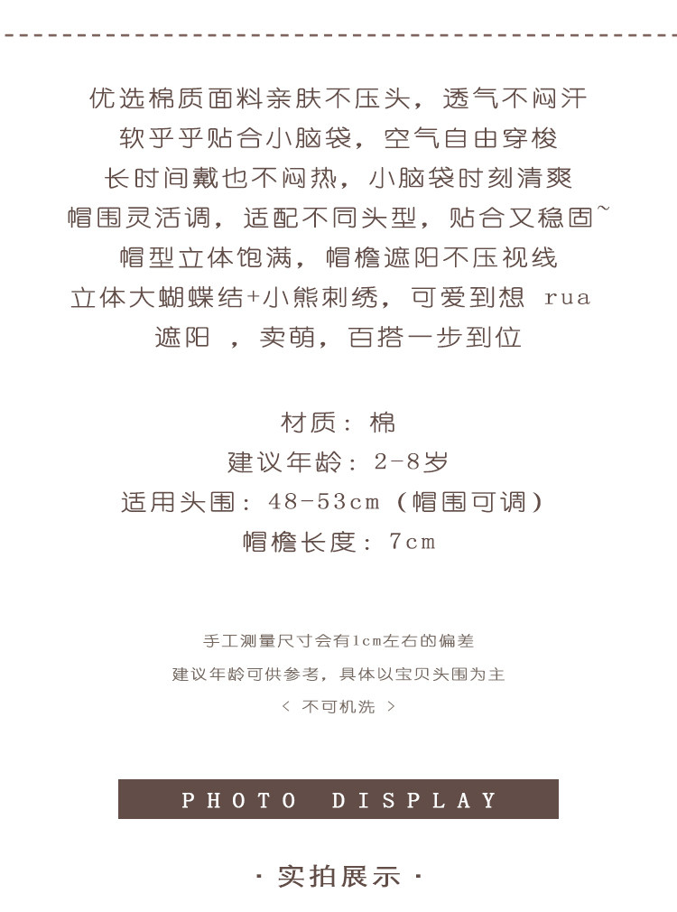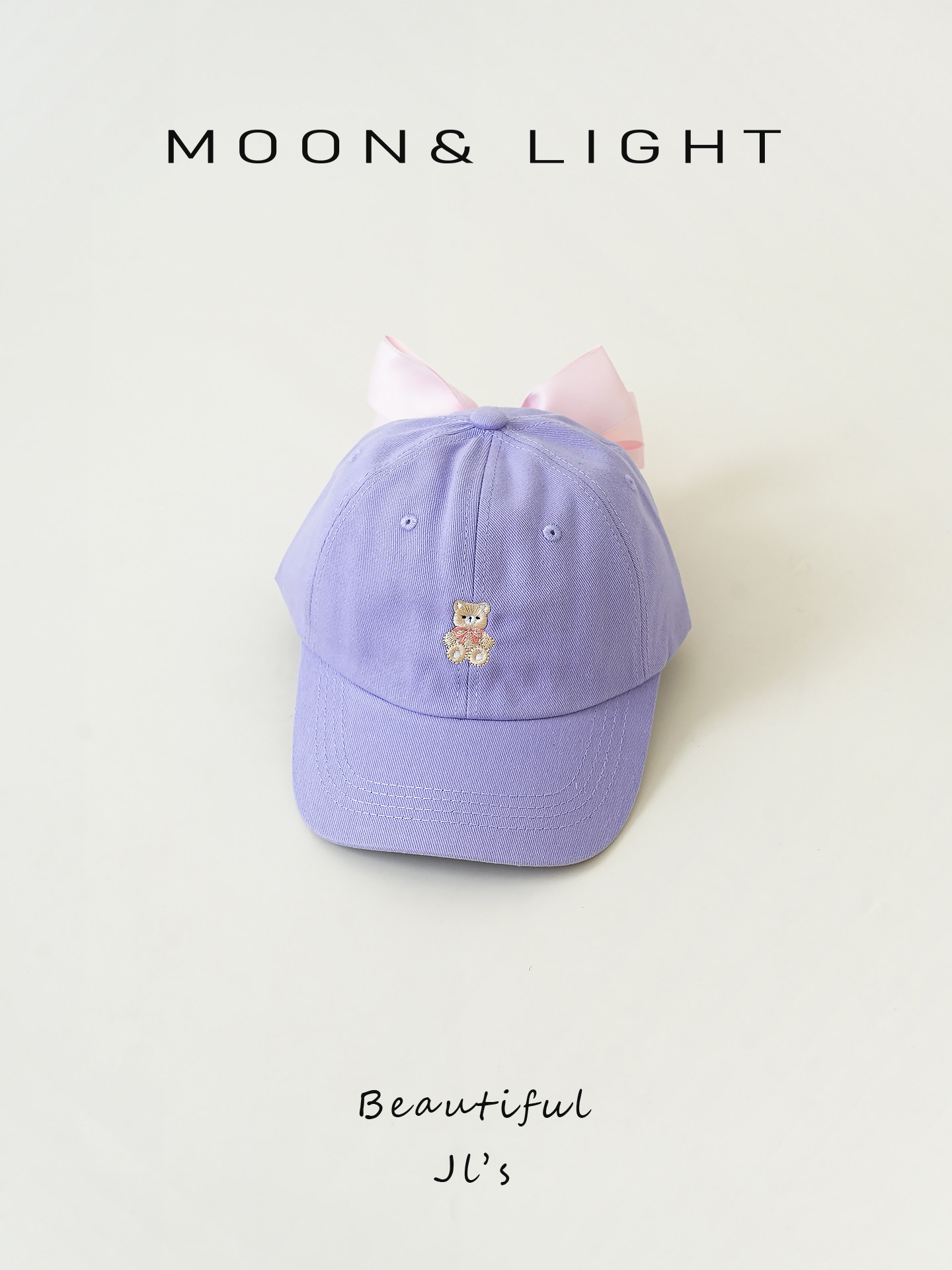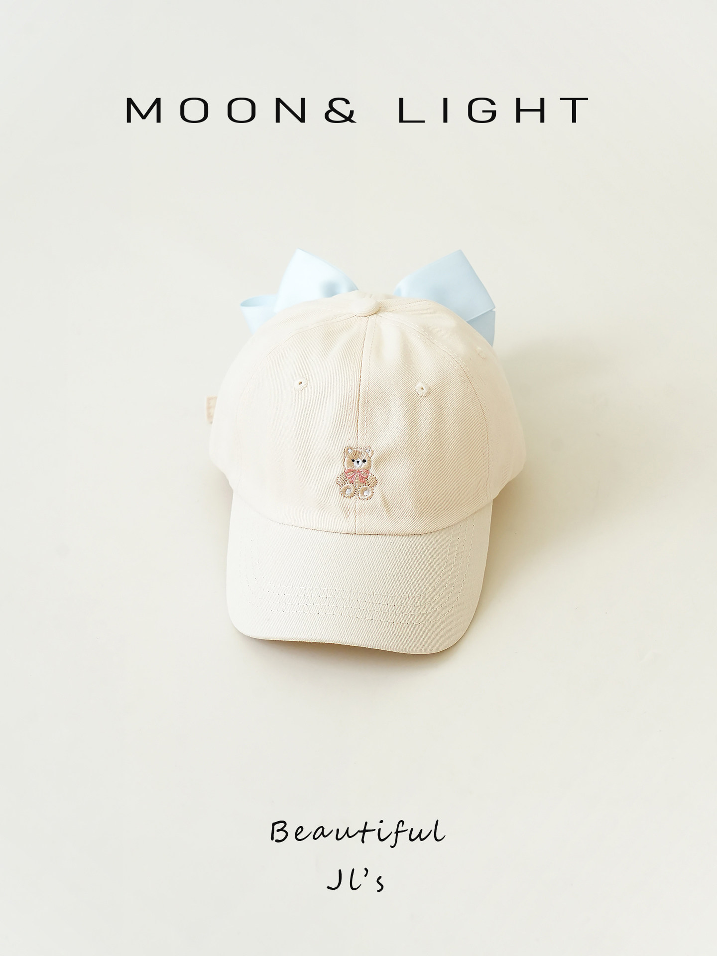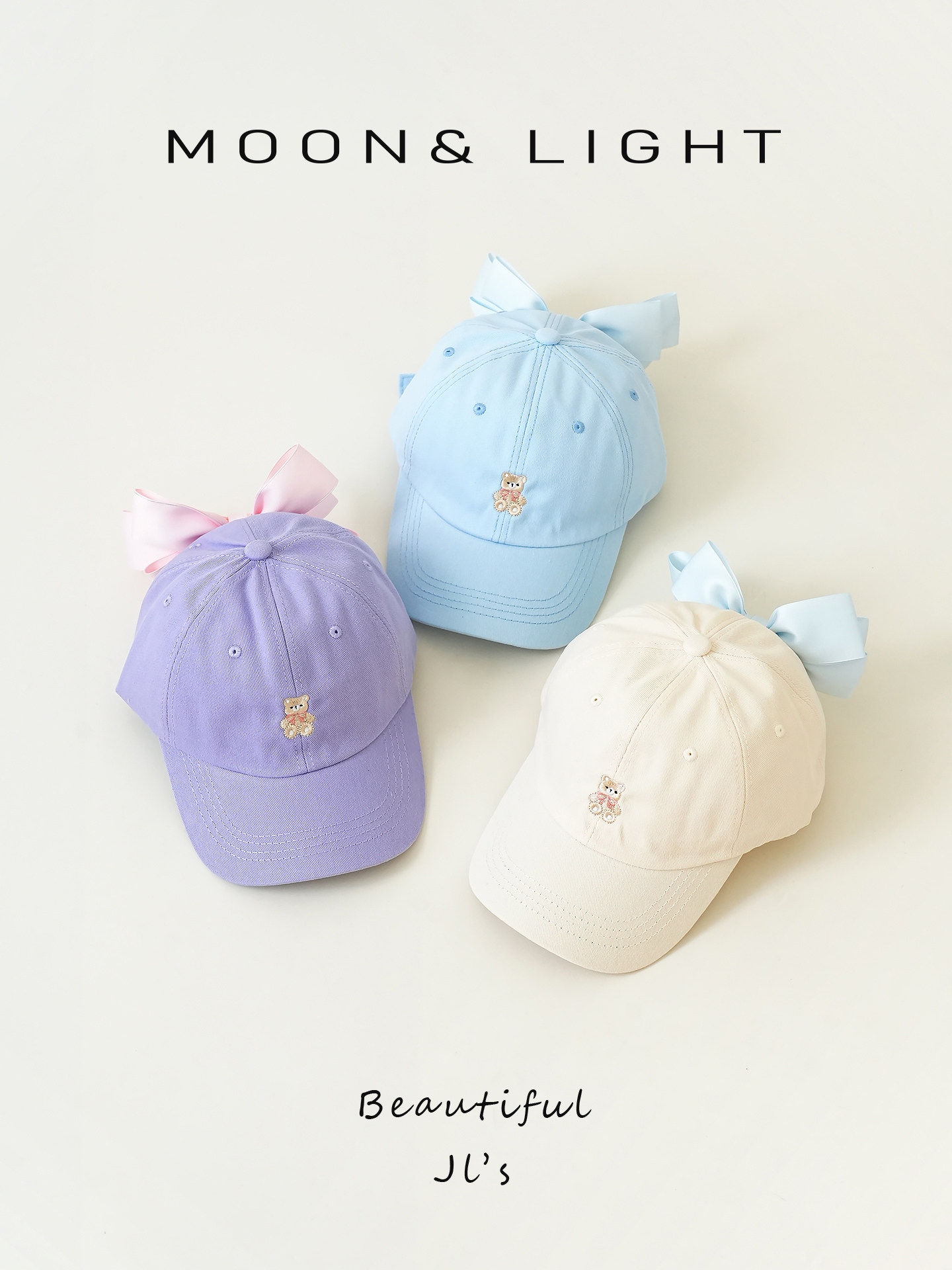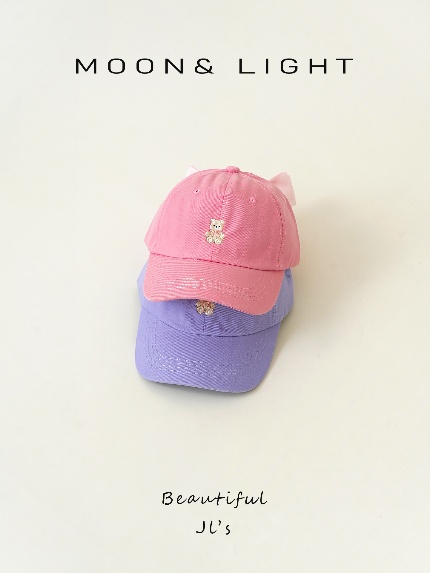 Children's baseball cap with big bow in spring and autumn sweet bear embroidery baby label girls hat peaked cap