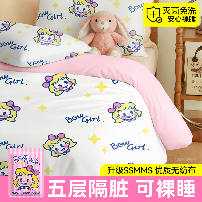 Hotel Disposable Four-Piece Bedding Set: Bed Sheet, Duvet Cover, Pillowcase, Quilt Cover, Travel Double Thickened Supplies, Bedding