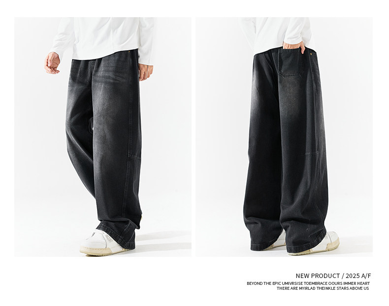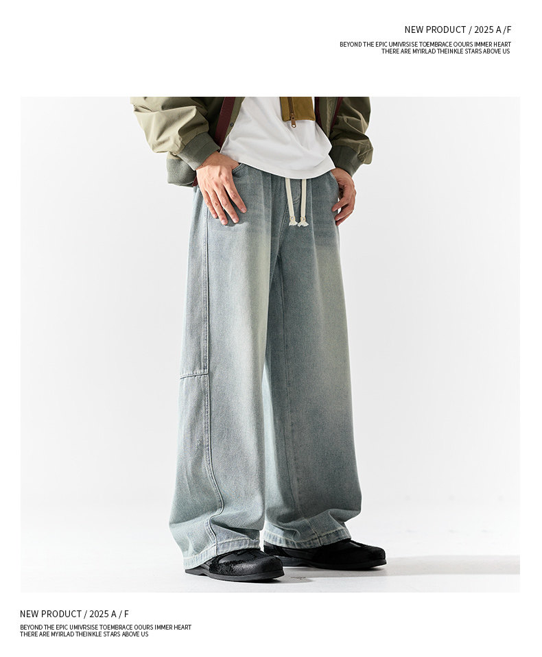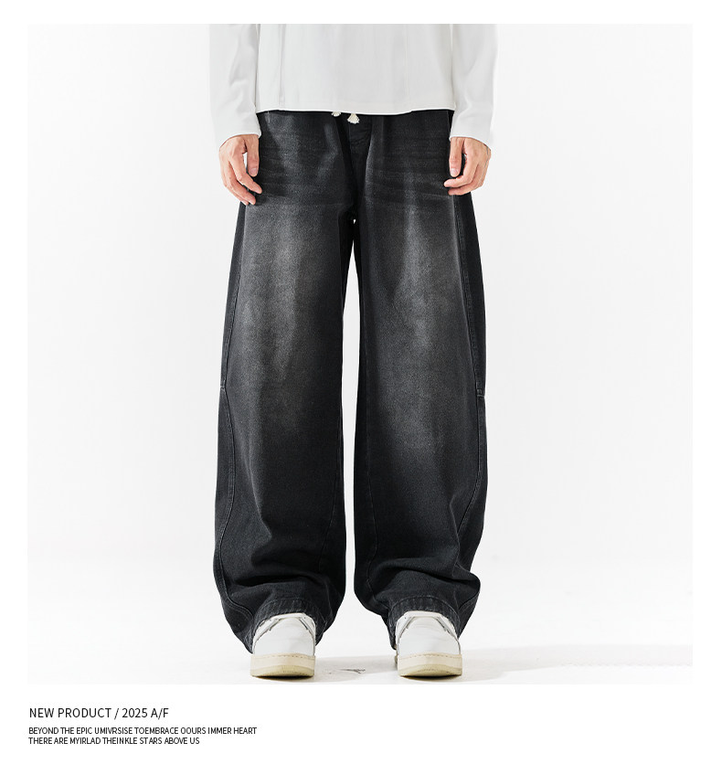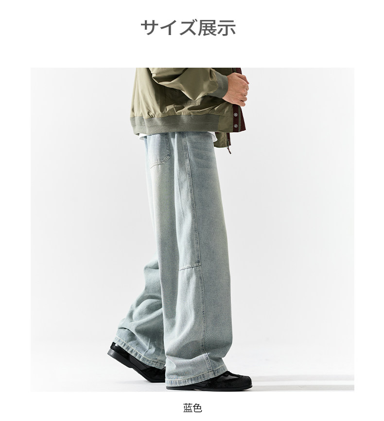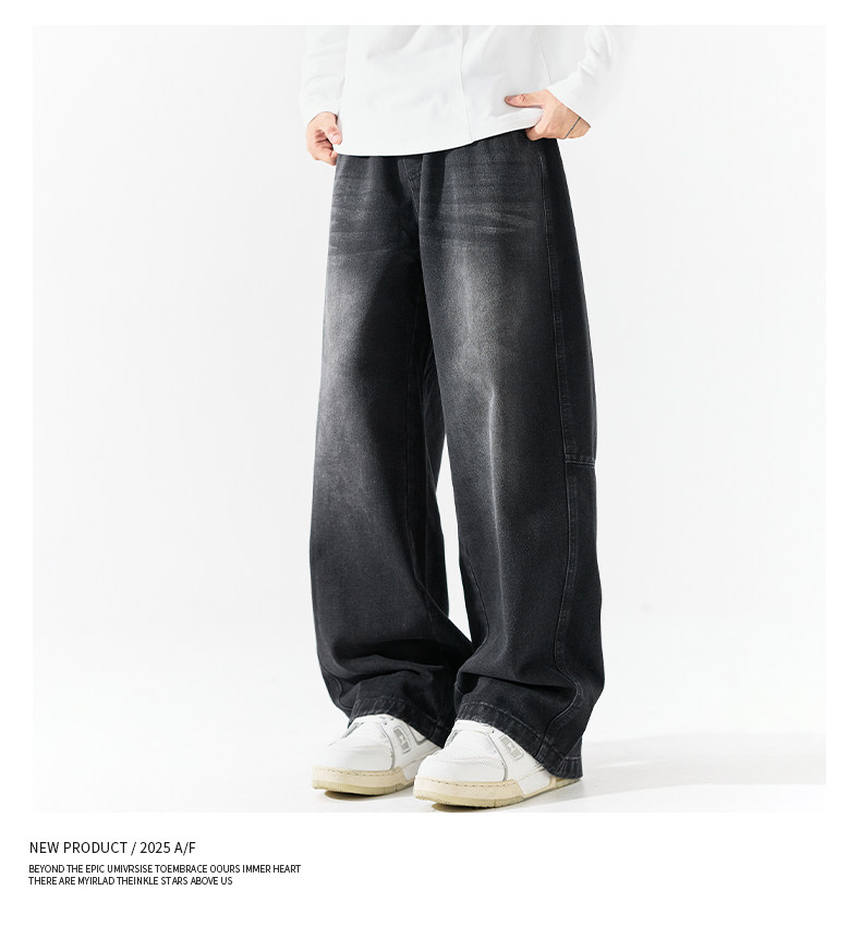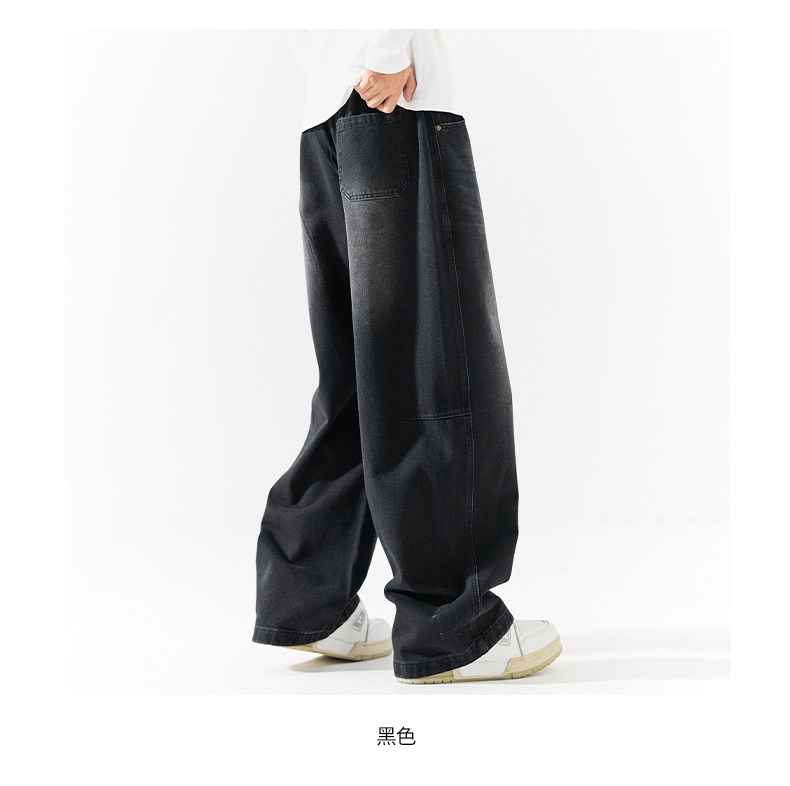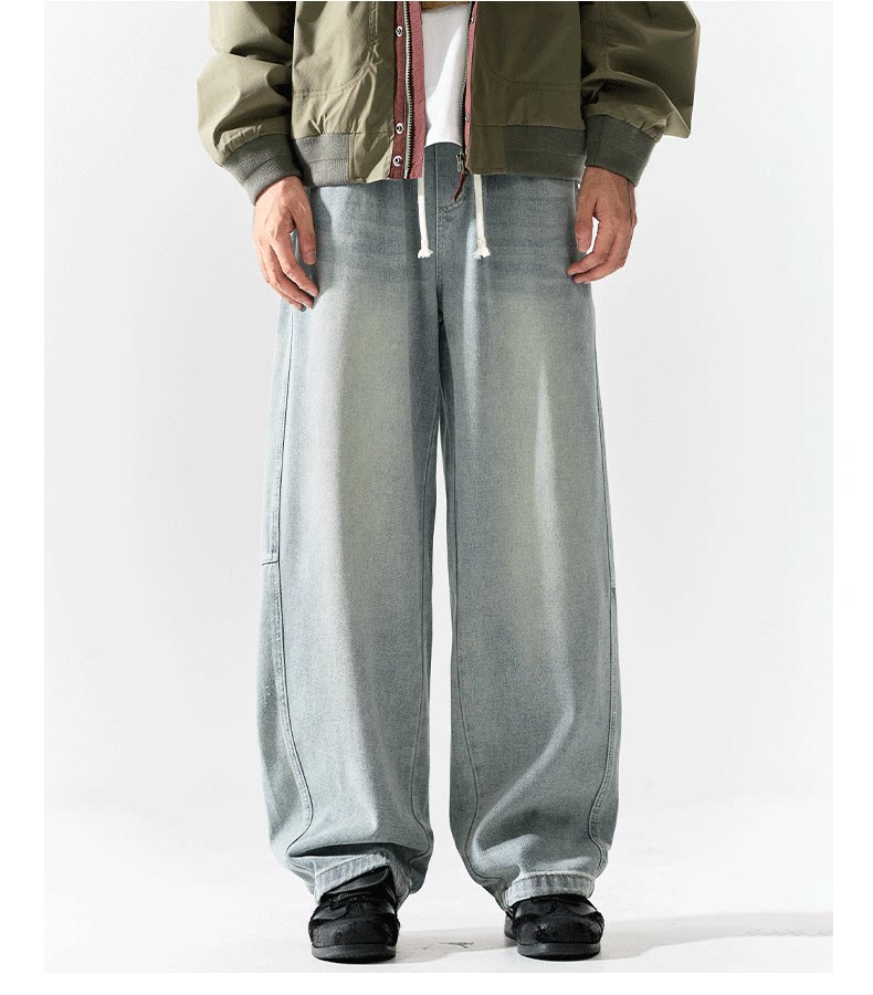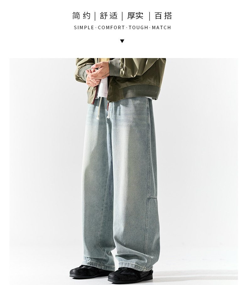 Pure group heavyweight jeans men's spring and autumn American style overalls loose washed straight wide leg light-colored casual pants
