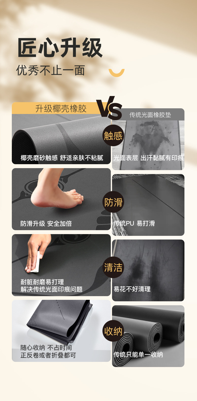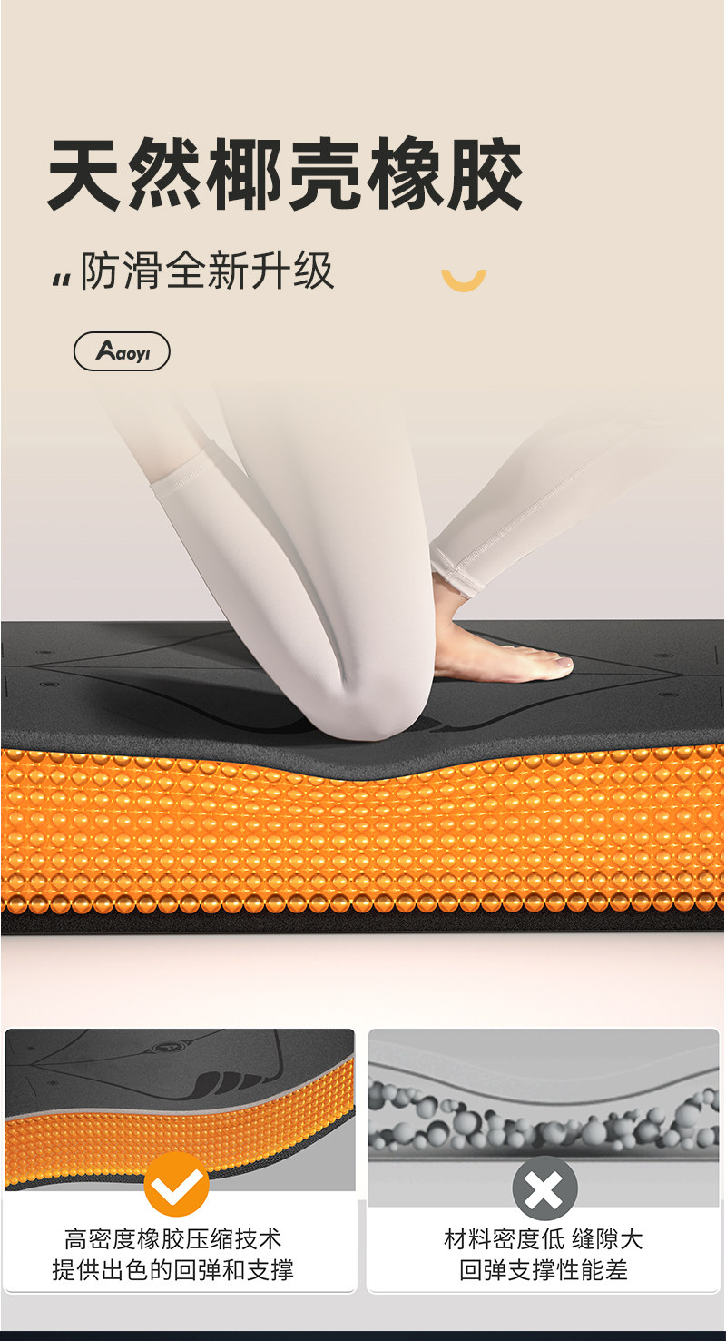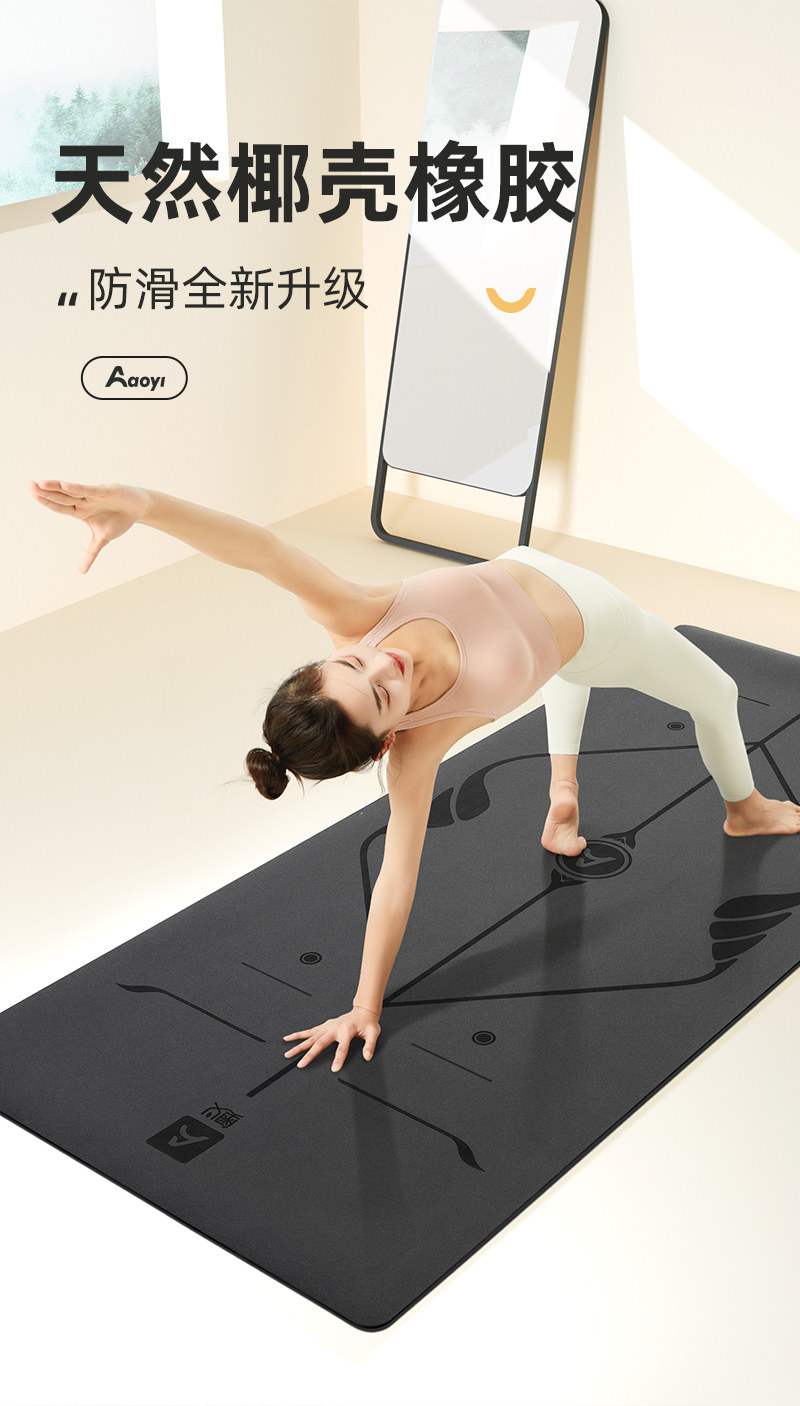 Coconut Shell Scrubbed Yoga Mat, Natural Rubber, Non-Slip, Professional Pu, Home Fitness Mat for Women, Shock-Absorbing and Silent Mat