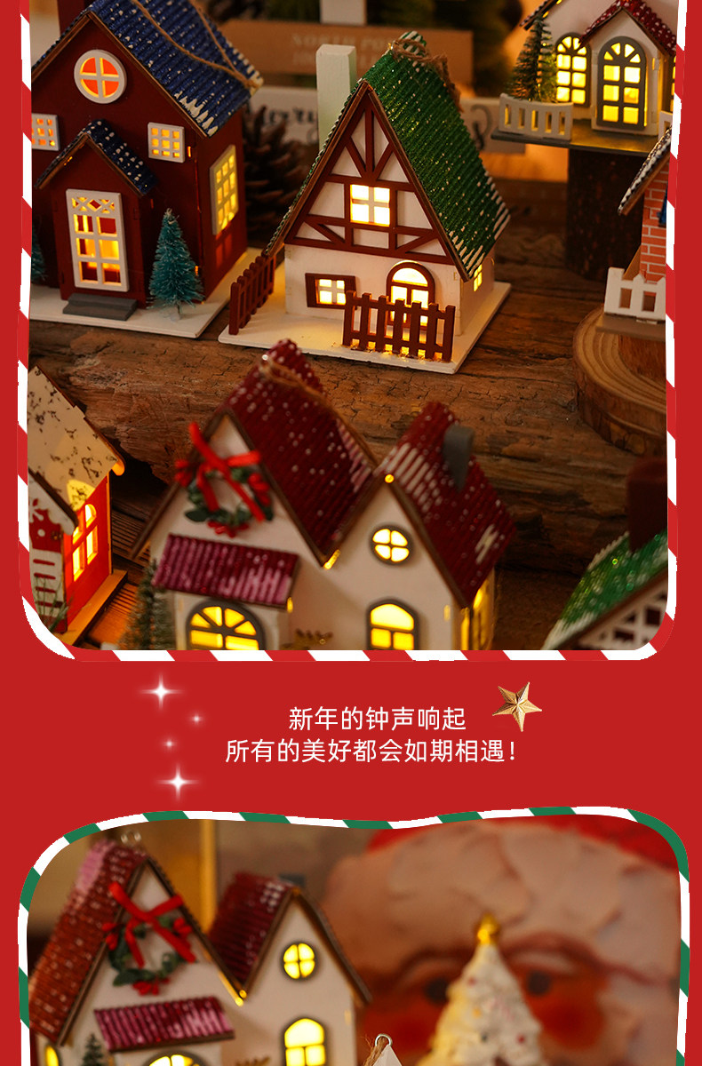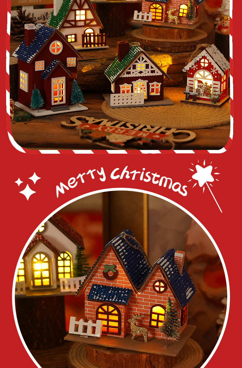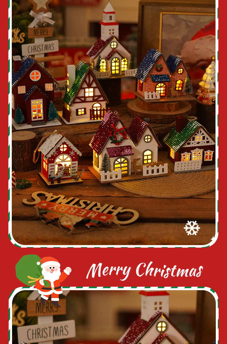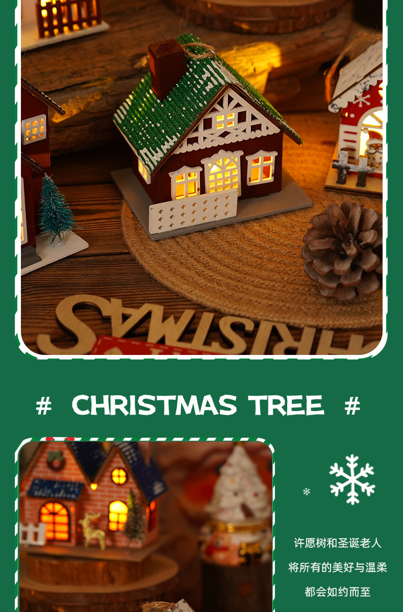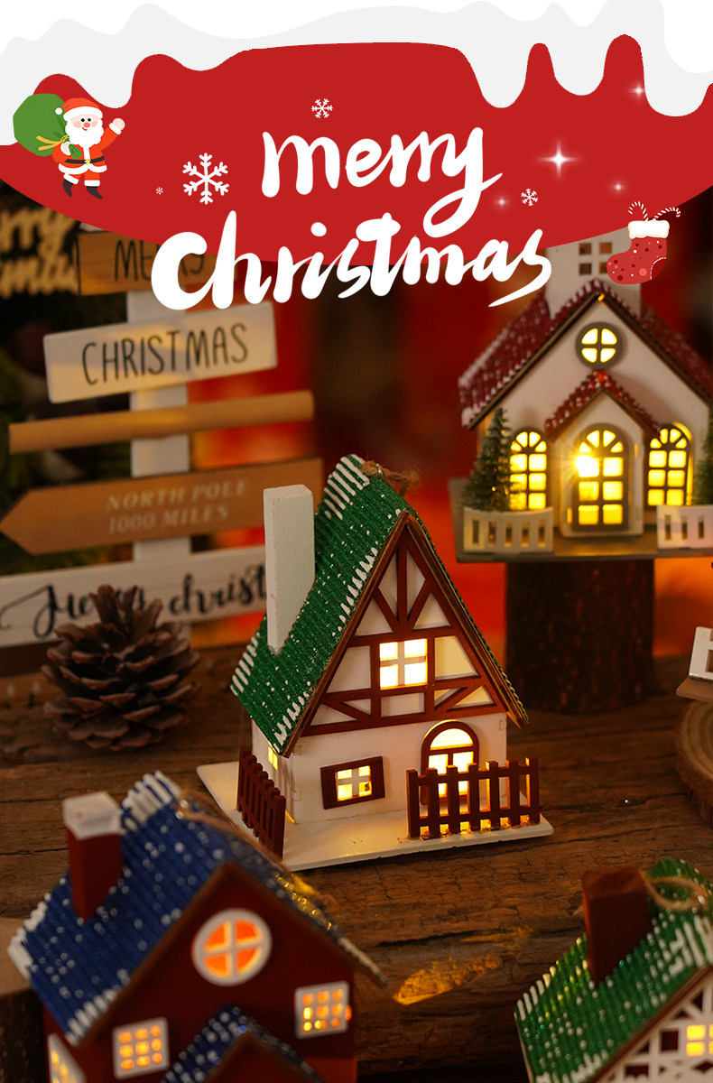 Glowing creative snow Christmas tabletop ornaments DIY Christmas decorations Christmas cabin pendants